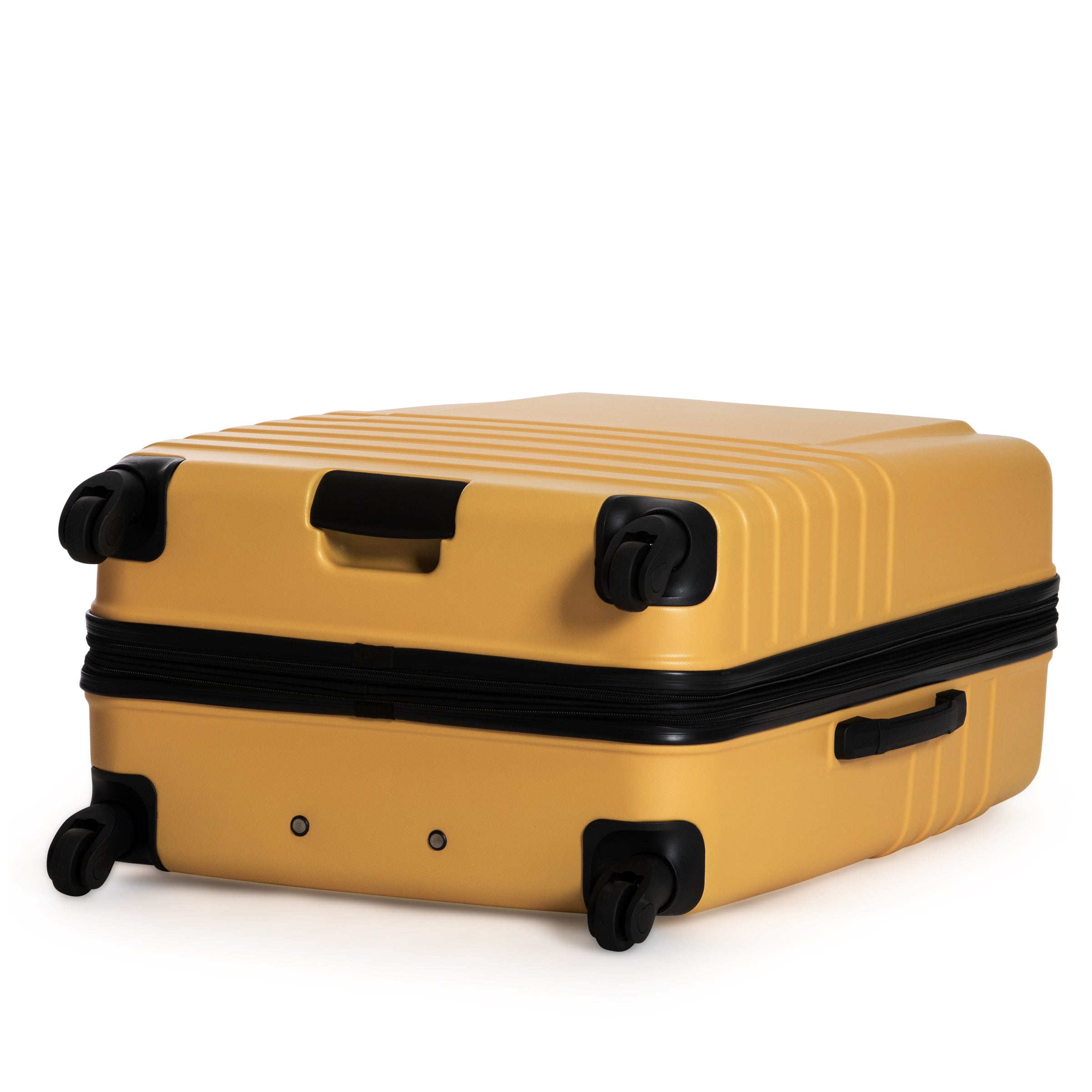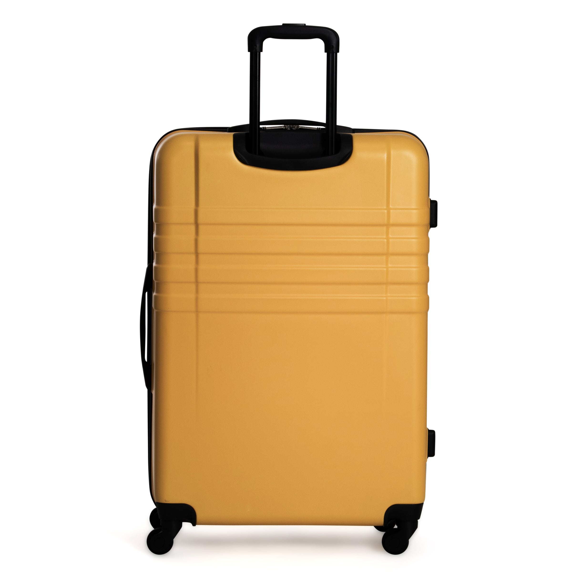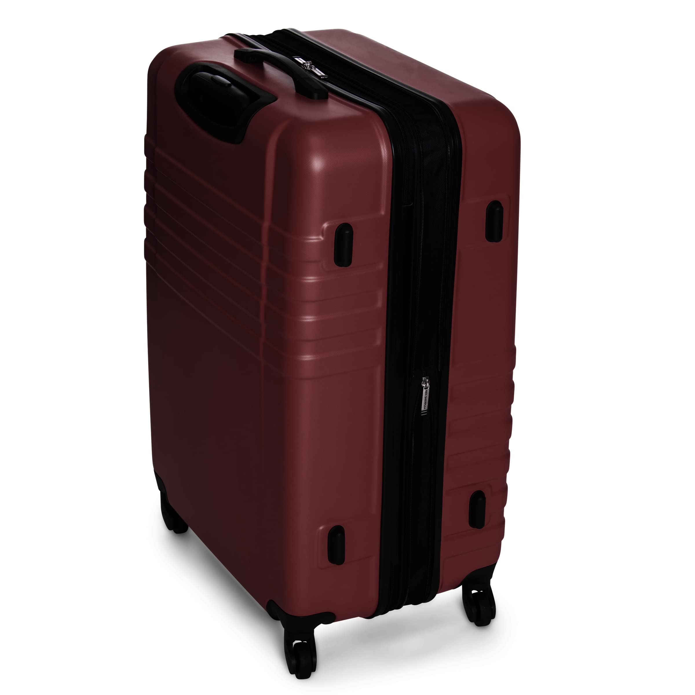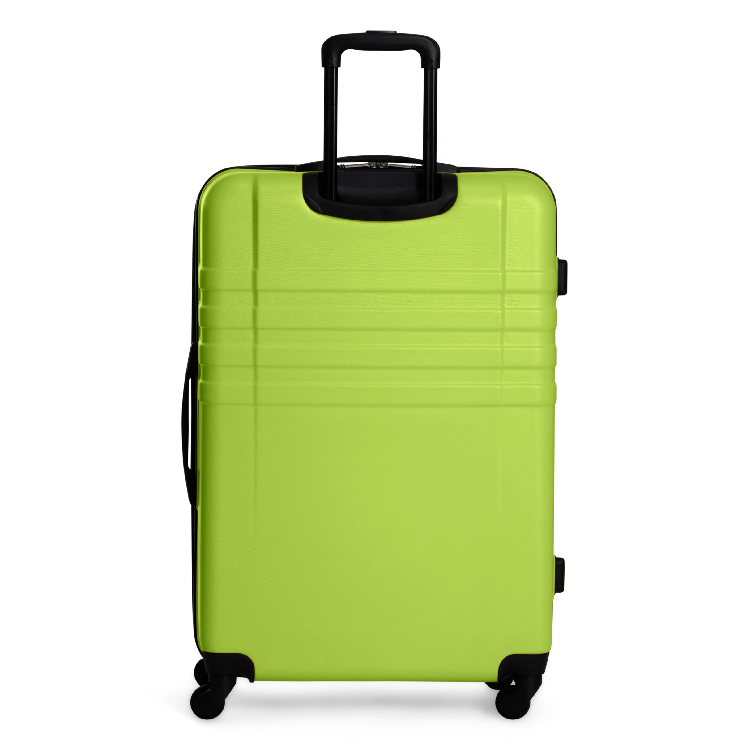 Nothing complements the fun excitement of travel quite like this Ben Sherman Hereford Luggage collection. The hard textured shell comes in a variety of colors to help your luggage stand out and compliment your style. The four-wheel spinners rotate 360 degrees for easy mobility, and the telescoping trolley handle puts you in control of it all. The fully lined rip-proof interior features garment restraint straps to keep your belongings from shifting during a trip, and the U-shaped zipper pocket in the lid allows for double-sided packing. In addition, a small hanging zipper pocket adds a bit of extra organization space for personal belongings. Two inches of built-in expansion Maximize your packing ability. Finally, the 28-inch luggage features side handles and side feet, adding another way to carry your luggage and protect the shell from wear and tear. 20" Dimensions: 22" H x 14" W x 10" D. 20" Weight: 6.35 lbs. 28" Dimensions: 30" H x 19.5" w X 13" D. 28" Weight: 9.7 lbs. Dimensions include wheels and handles. Backed by the manufacturer's lifetime limited warranty.
