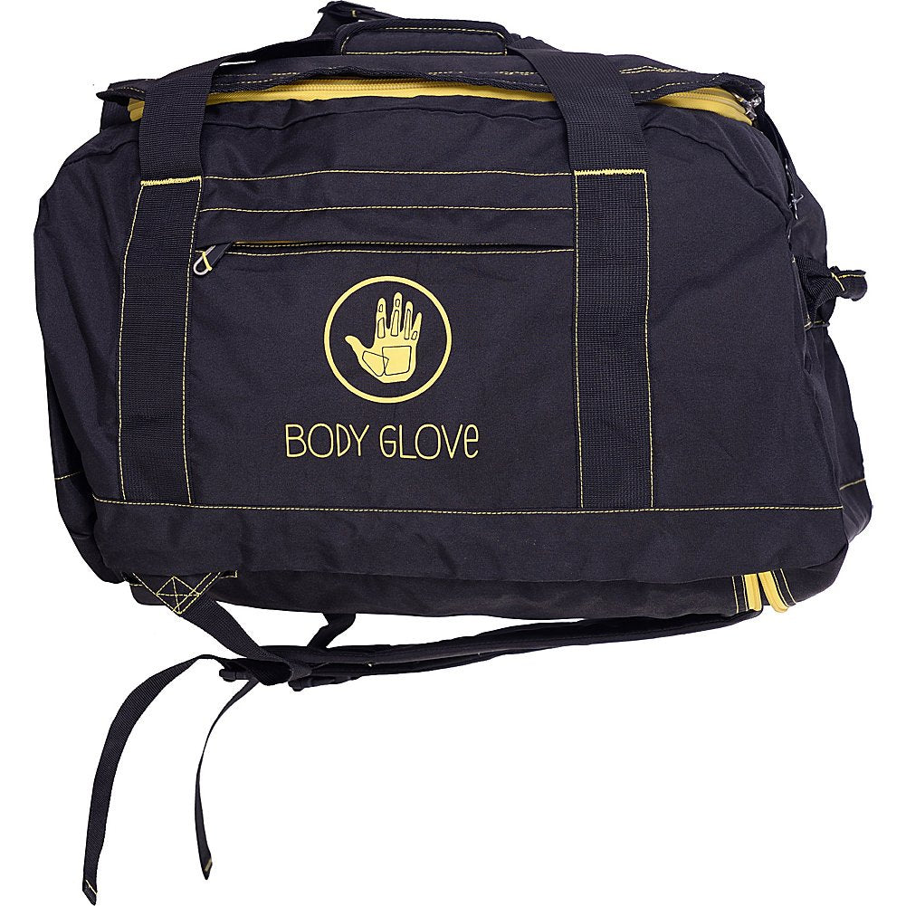 Body Glove exclusive design, Duffel with adjustable, padded backpack straps, Side & shoulder straps, 1 front pocket, Shoe & toiletry pocket, Fully lined interior, Water-resistant Duffel, , , , ,
