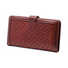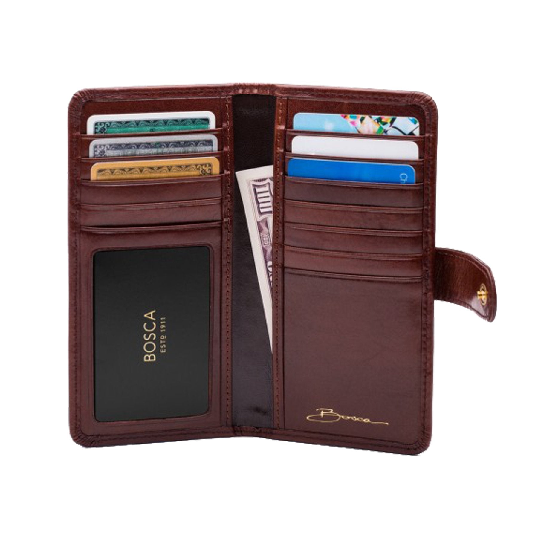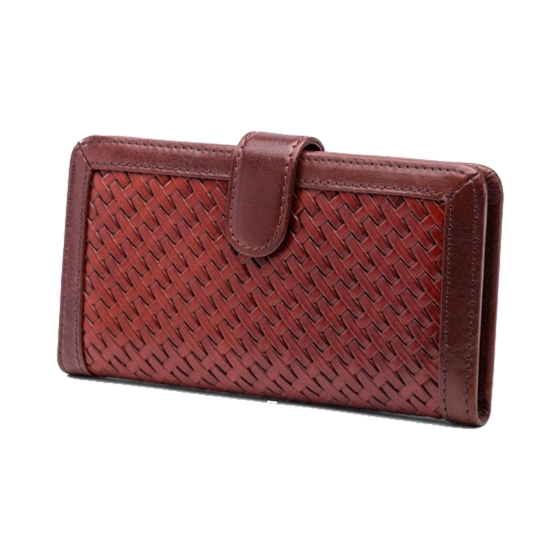 Our series of Basket Style Wallets pair fine leather with attractive woven styling. The Beautiful dark auburn leather is embossed with our woven design and crafted into a purse that will last a lifetime. The Basket Stamped Slim Credit Case is perfect for someone who needs to fit a lot in a small space. The bifold profile keeps the bulk away, but the storage options inside give you plenty of space. There is a total of 11 card pockets to organize all of your debit, credit, loyalty and membership cards as well as a clear ID window. There are two additional pockets perfect for storing receipts, cash, or anything else that needs sorting. With an elegant shape and classic look, this women's wallet is the perfect accessory.