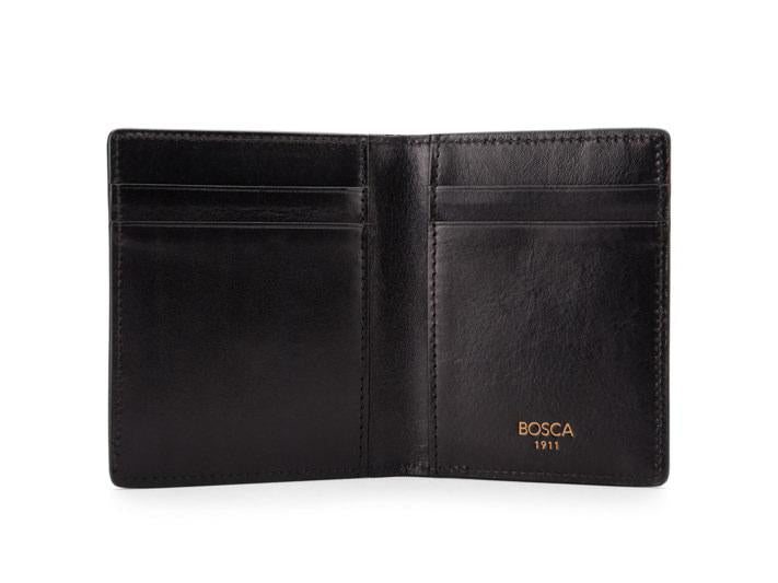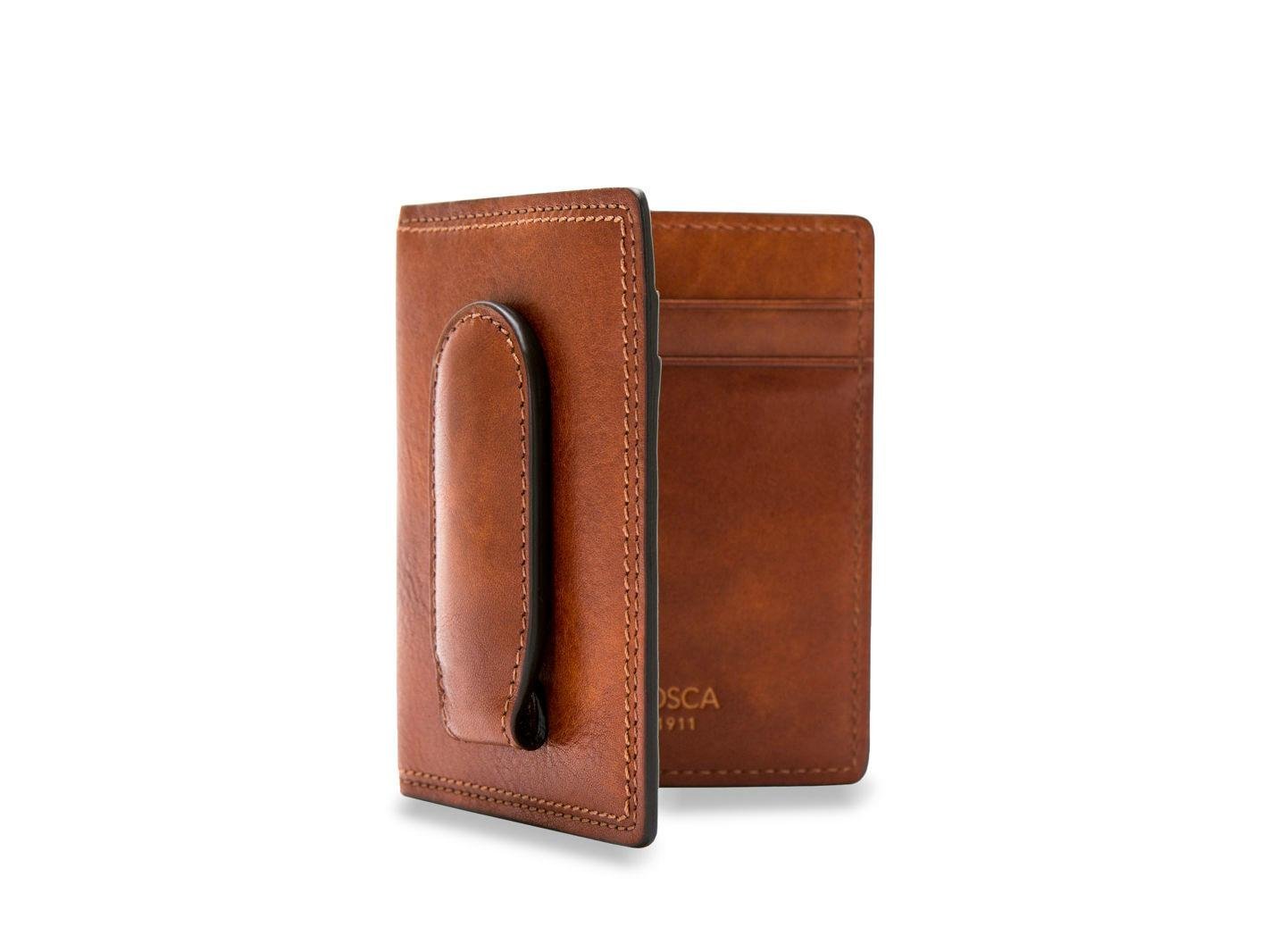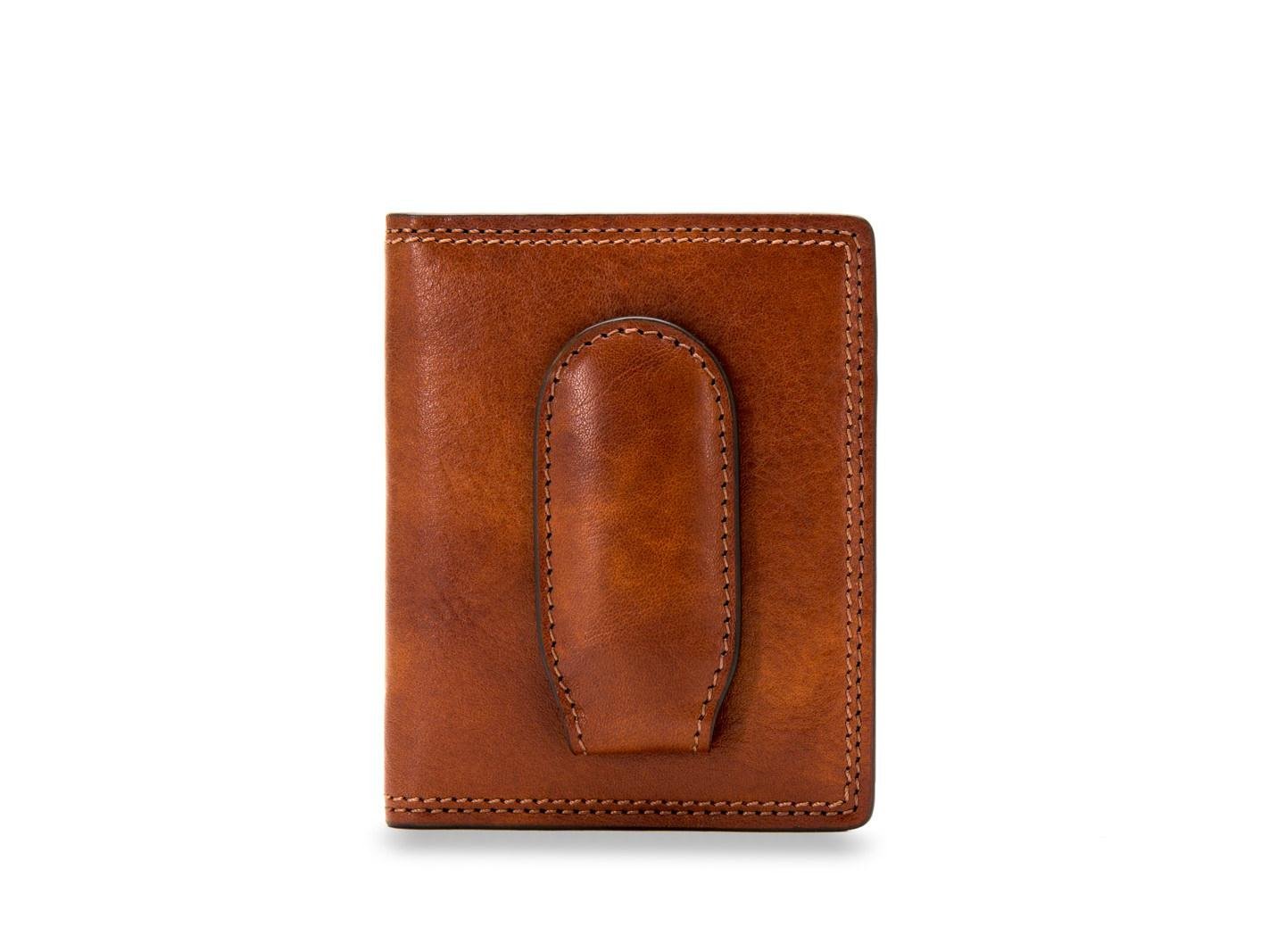 Our Old Leather Dolce Front Pocket Wallet w Magnetic Money Clip is small, but mighty. Its bifold design features 3 credit card pockets and an interior stash flap for folded bills, receipts, and cards. The handsome exterior safely holds bills with a strong