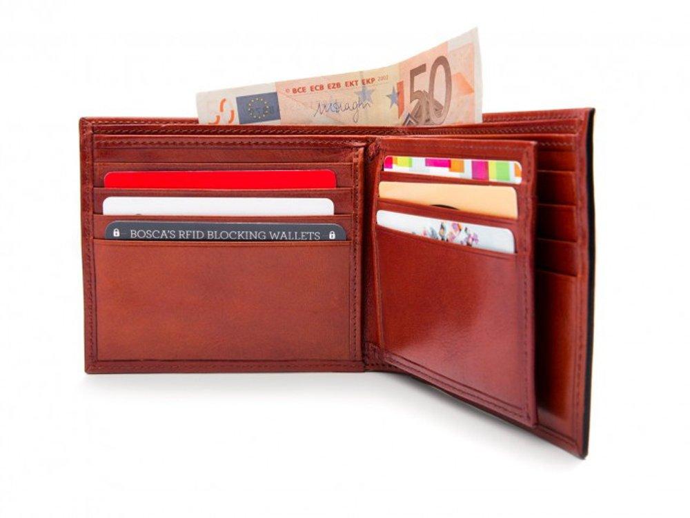 The Euro 8 Pocket Deluxe Executive Wallet with Passcase is as versatile as itis beautiful. This feature-rich wallet is perfect for the globe trotter. Thetaller design allows Euro notes and most other currencies to fit in the centerwell which we've divided in two for better organization. If you're concernedabout your credit cards security, fear not, we've embedded RFID technology inthe liner to protect your information. There are eight horizontal pockets andtwo hidden pockets. There is also a center hinged Id window with three morehorizontal pockets and two additional hidden pockets. That is a total of 15pockets, I think you'll be hard pressed to fill them all! We constructed thiswallet from our famous Old Leather. Old Leather is Italian veg-tanned, hand-stained leather. We regularly see wallets that are well over 15years old andhave only grown more beautiful over the years. The functional features alonebreed desirability but add the clean, stylish design, and you have a walletthat will handle anything and look good doing it. RFID security liningAccommodates Euro Pounds 8 horizontal card pockets 2 hidden pockets DividedCurrency Well (3 1/2"" tall) Center hinged ID window with three card pocketsand two hidden pockets Hand-Stained Vegetable Tanned Italian Leather Nylonthreads resistant to humidity, wear, UV and chemical deterioration Nylon andPolyester lining with moire design