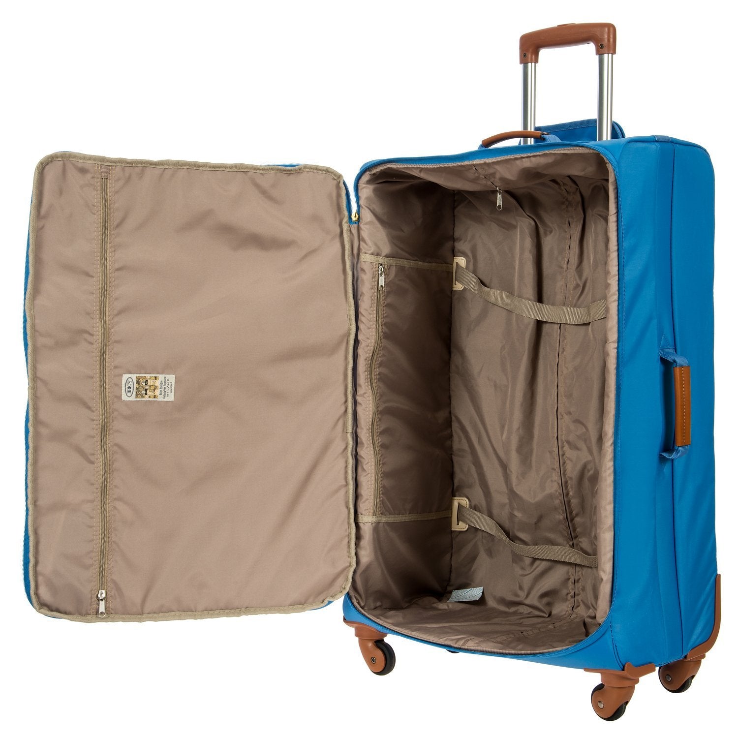 Ultra-light check in spinner with easy glide wheels and a frameless soft construction. Flexible outer fabric and structure allows for maximum space when packing bulky items