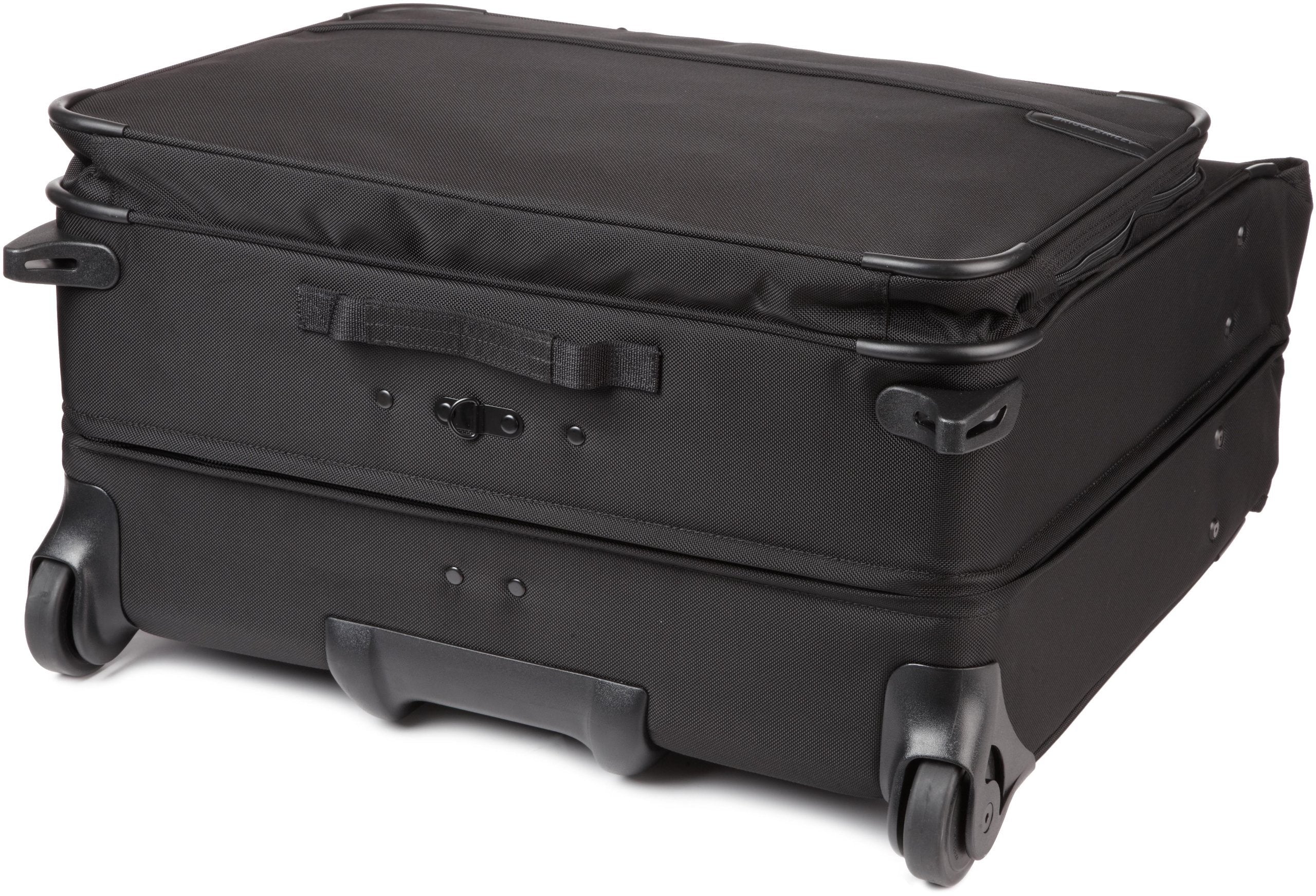 • Ballistic nylon outer fabric resists wear, moisture, dirt and abrasion, lightweight honeycomb frame provides flexibility, durability and shape retention, outsider handle provides greater interior capacity and a flat interior surface for packing so clothing arrives wrinkle-free, aircraft-grade aluminum handle system with 4 stop heights