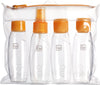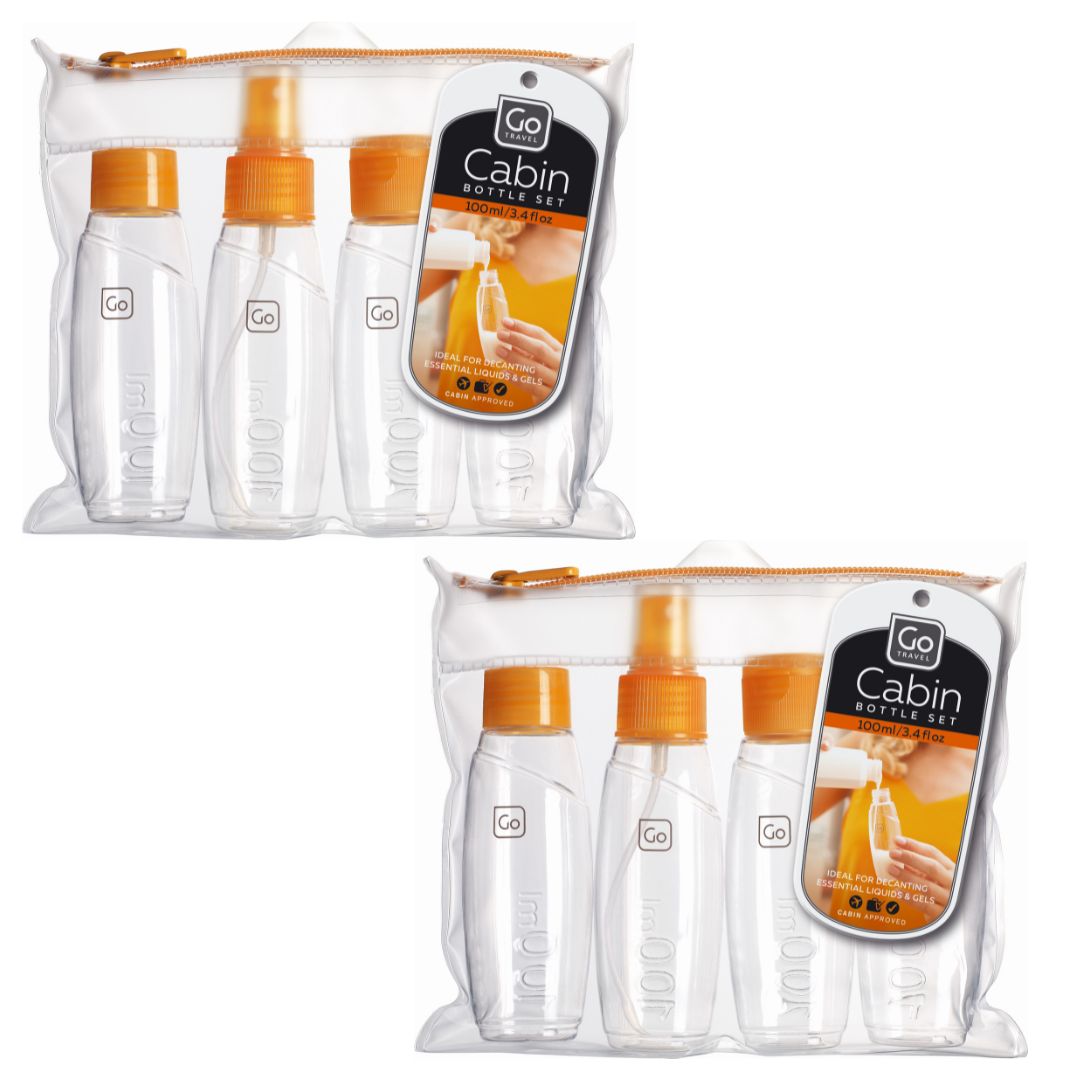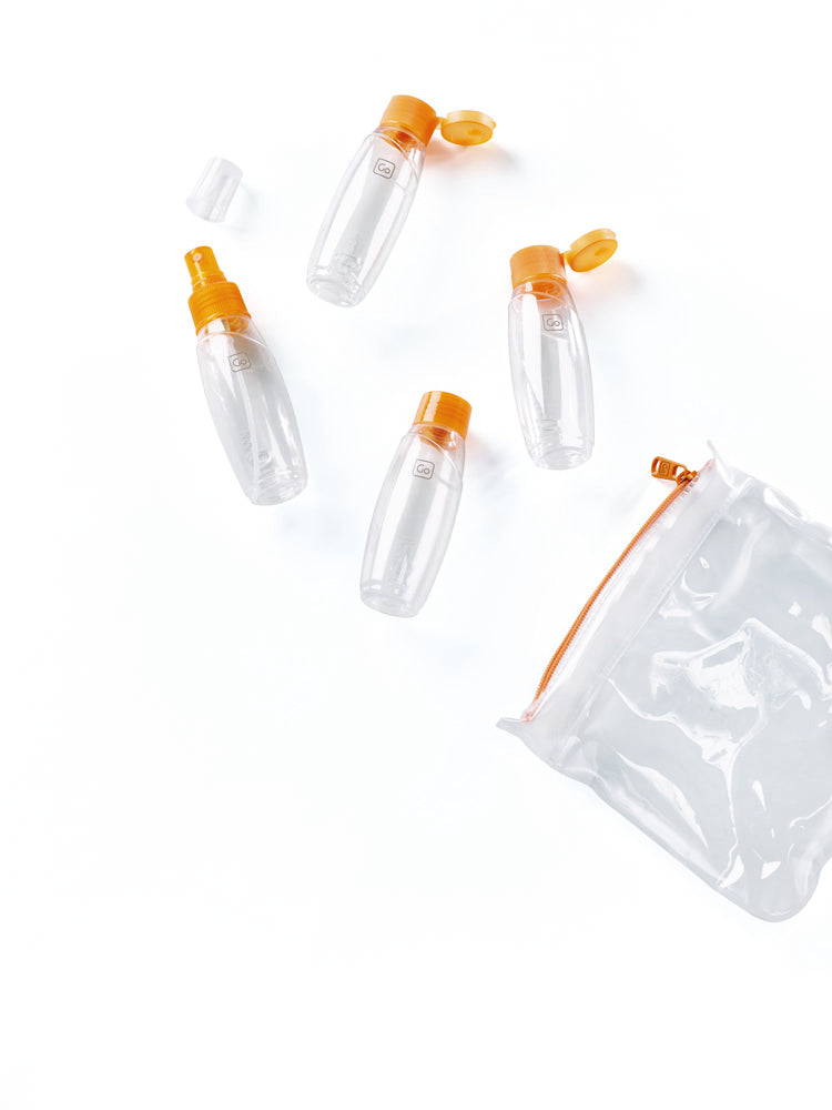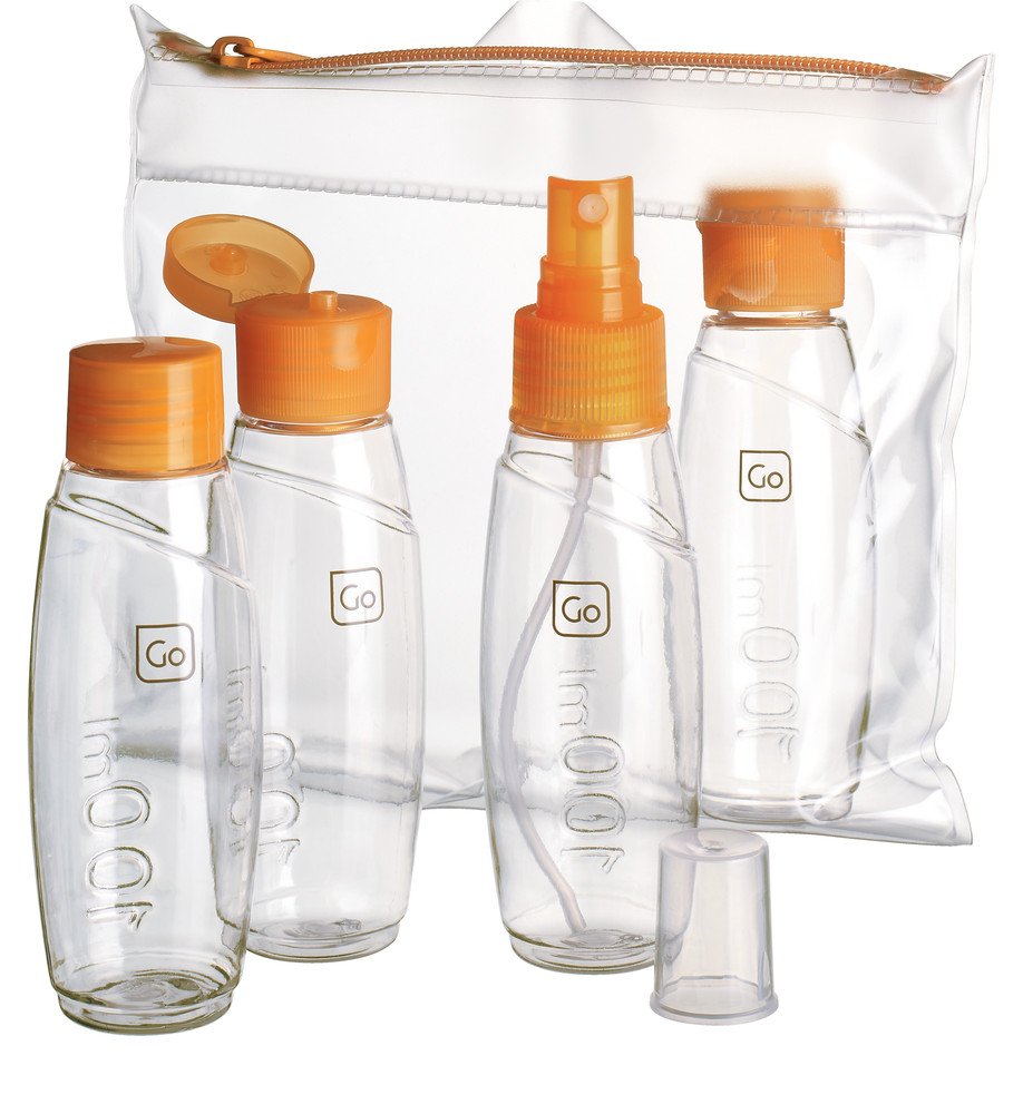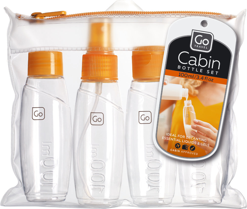 bottle set. Ideal for most liquids, these clear 100ml bottles and transparent