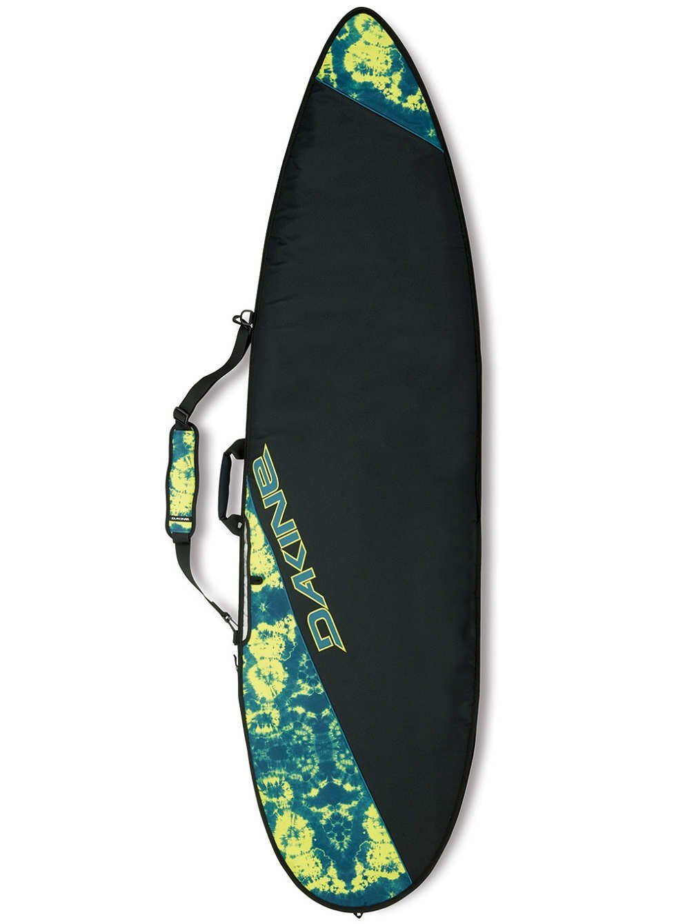 Dakine 6 foot 2 inch Daylight Deluxe Thruster. 6 foot 2 inch x 23 inchThruster. Durable 600D polyester top with heat reflective tarpaulin bottom.Heavy duty 10 molded zipper. Fitted tail with venting. Padded removableshoulder strap with stash pocket. Wax/fin pocket. Style : 6015001.