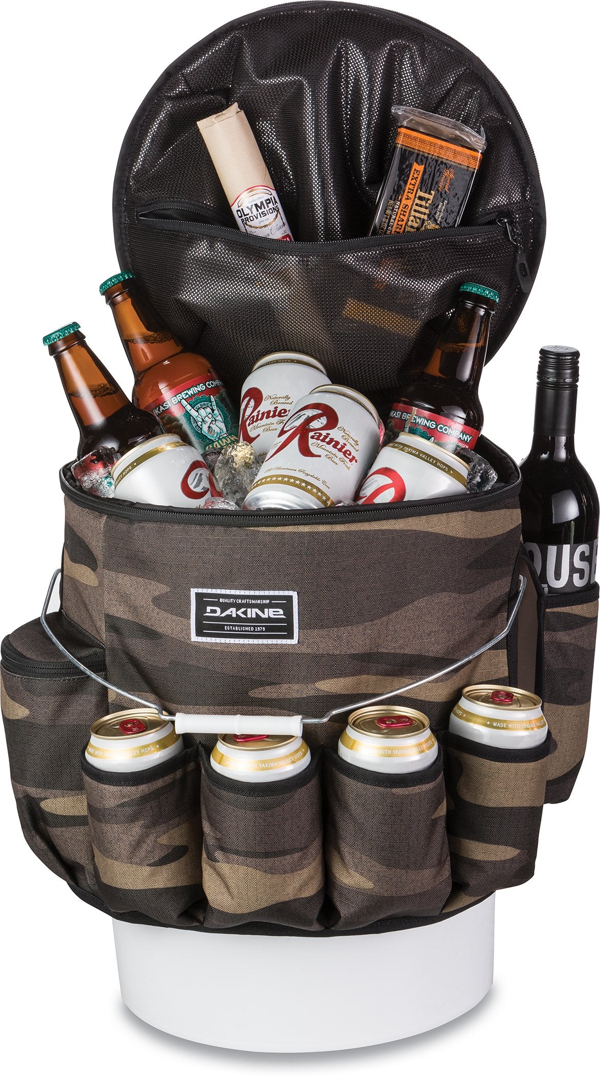 - Fits into a five gallon bucket (bucket not included) and features eight built in insulated Koozies.
