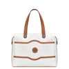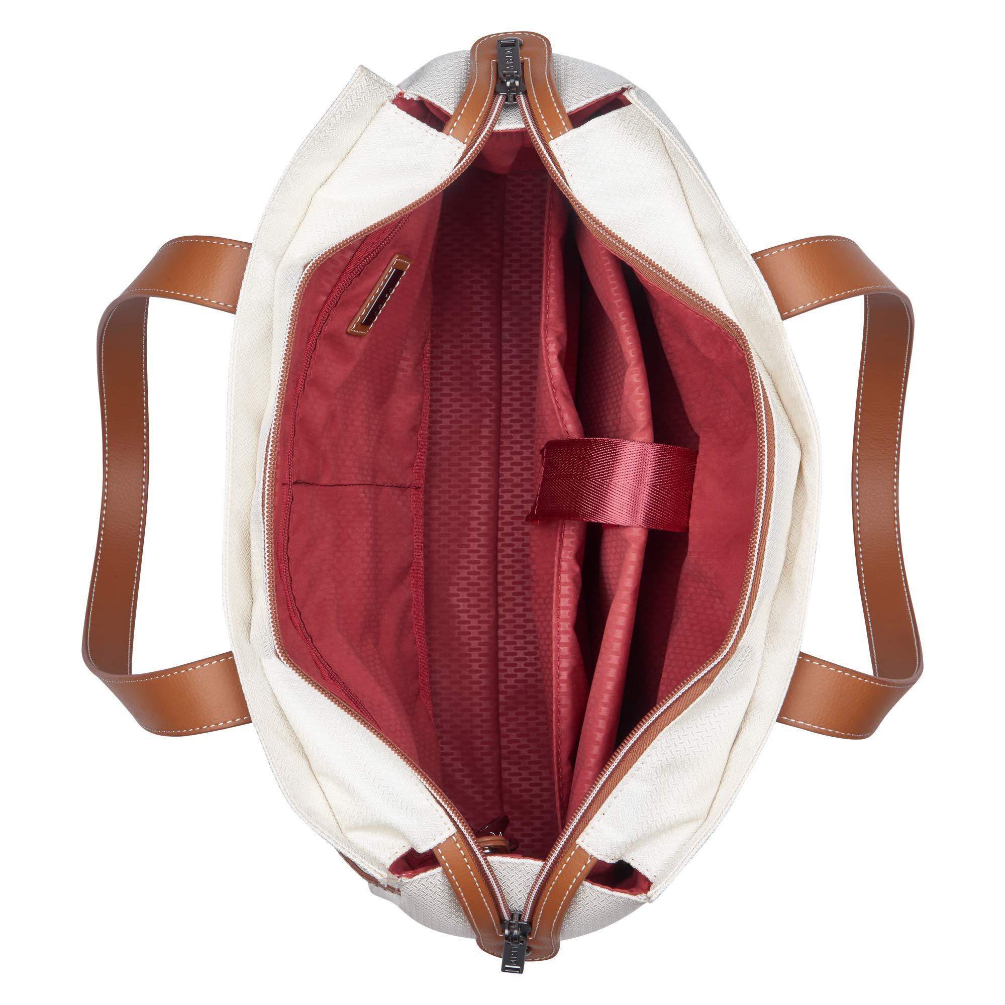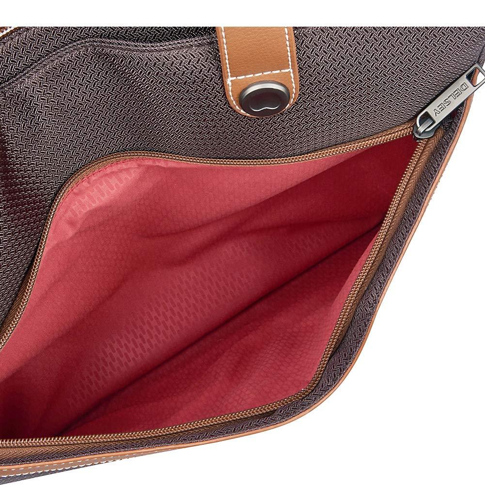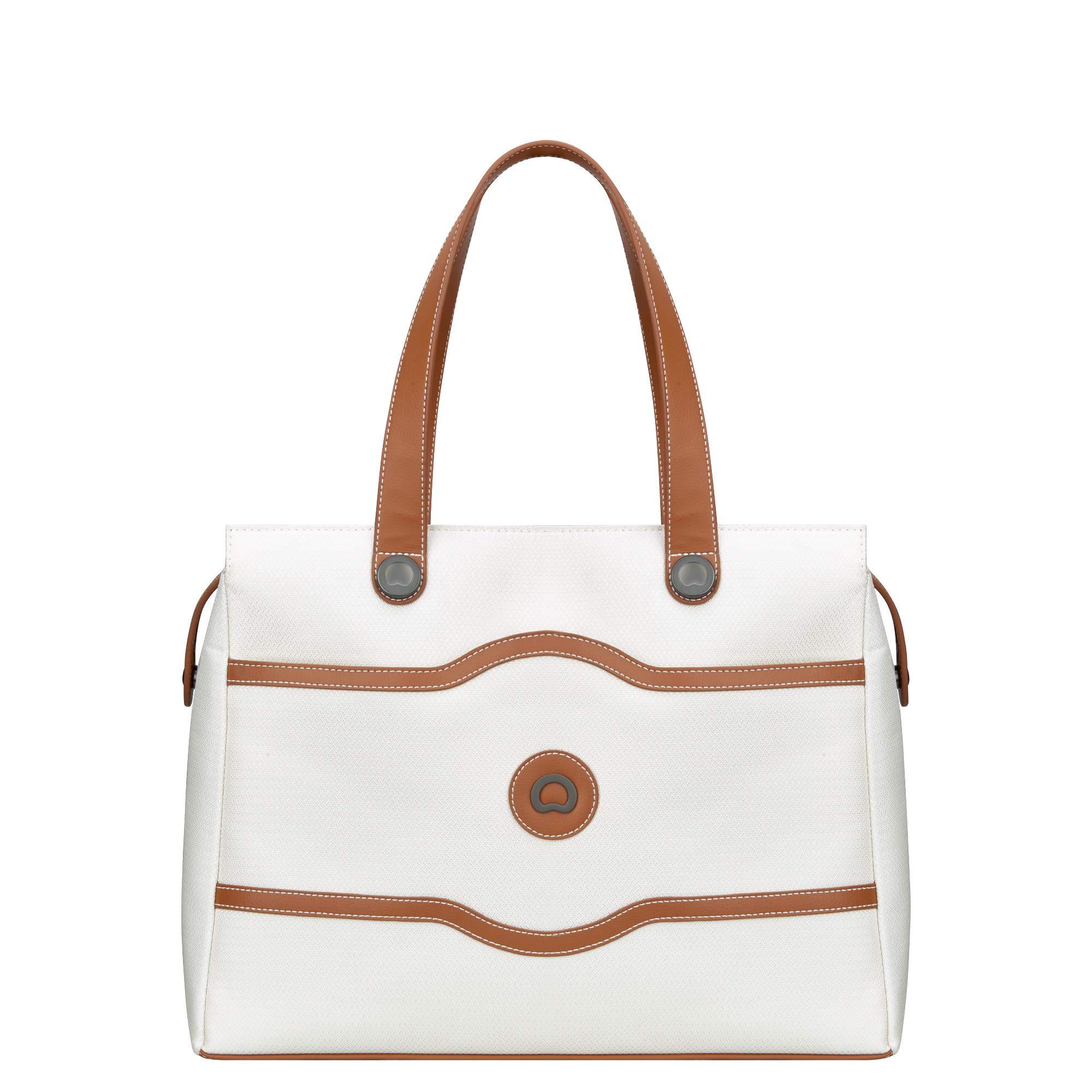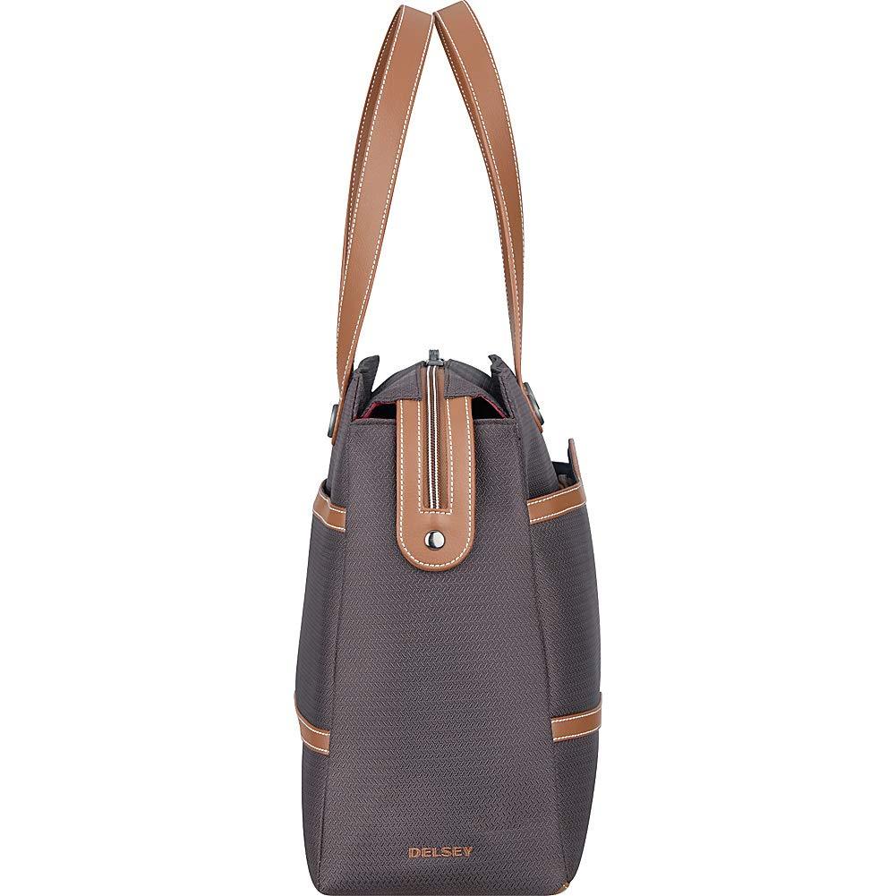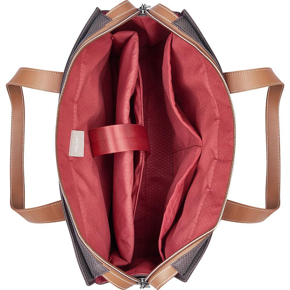 Offering a timeless and elegant look for the Luxe traveler, the chatelet softair collection, an extension to delsey's iconic, vintage-chic chatelethardside collection allows travelers to coordinate and complete their look onthe go. The shoulder tote can easily be carried over the shoulder as apersonal bag. Vegan-leather trims and the deluxe soft-touch interior are theperfect accents to this stylish tote. A zippered exterior pocket is perfectfor stowing last minute items; the interior comes equipped with 2 pockets aswell as 2 padded sleeves for a laptop and a tablet, and a removable pouch forsmall accessories. A smart band on the back slides over the tubes of a rollingluggage for maximum convenience.