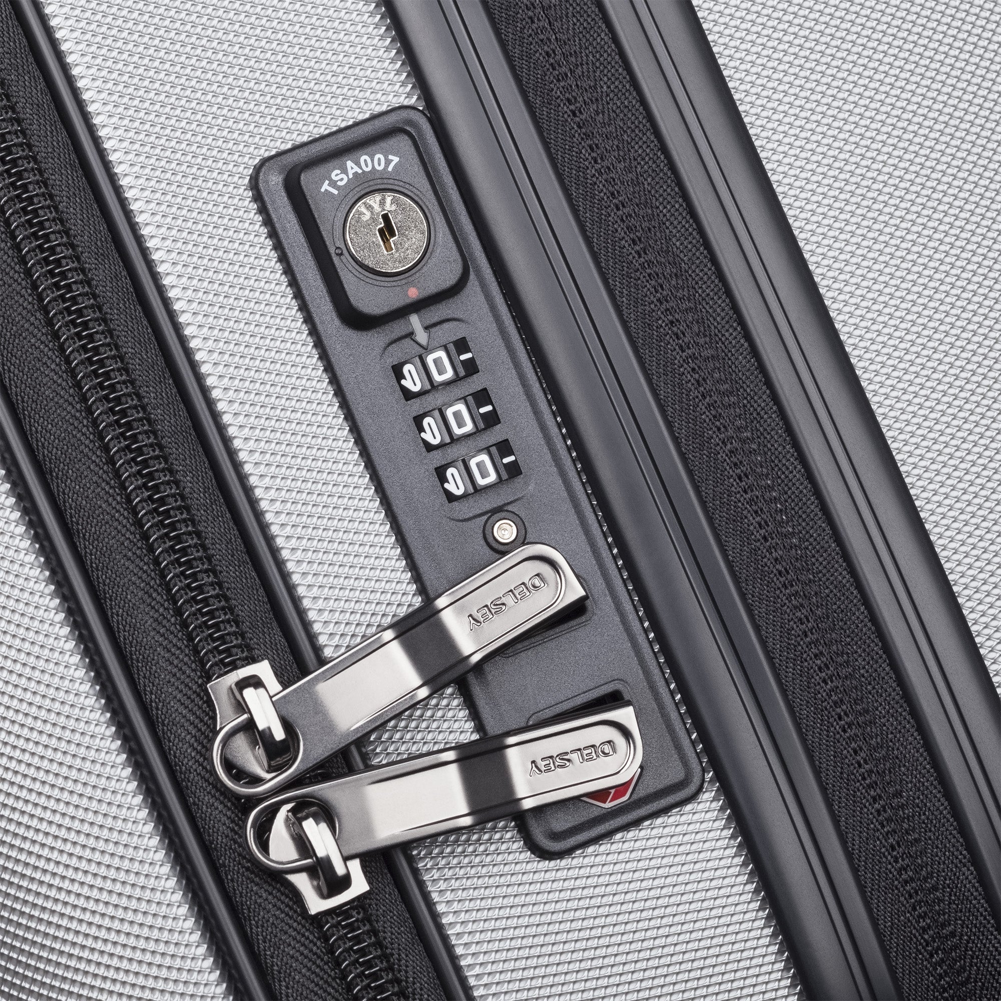 • Recessed TSA accepted lock. Dual position trolley system to 2 or 4 wheel use.