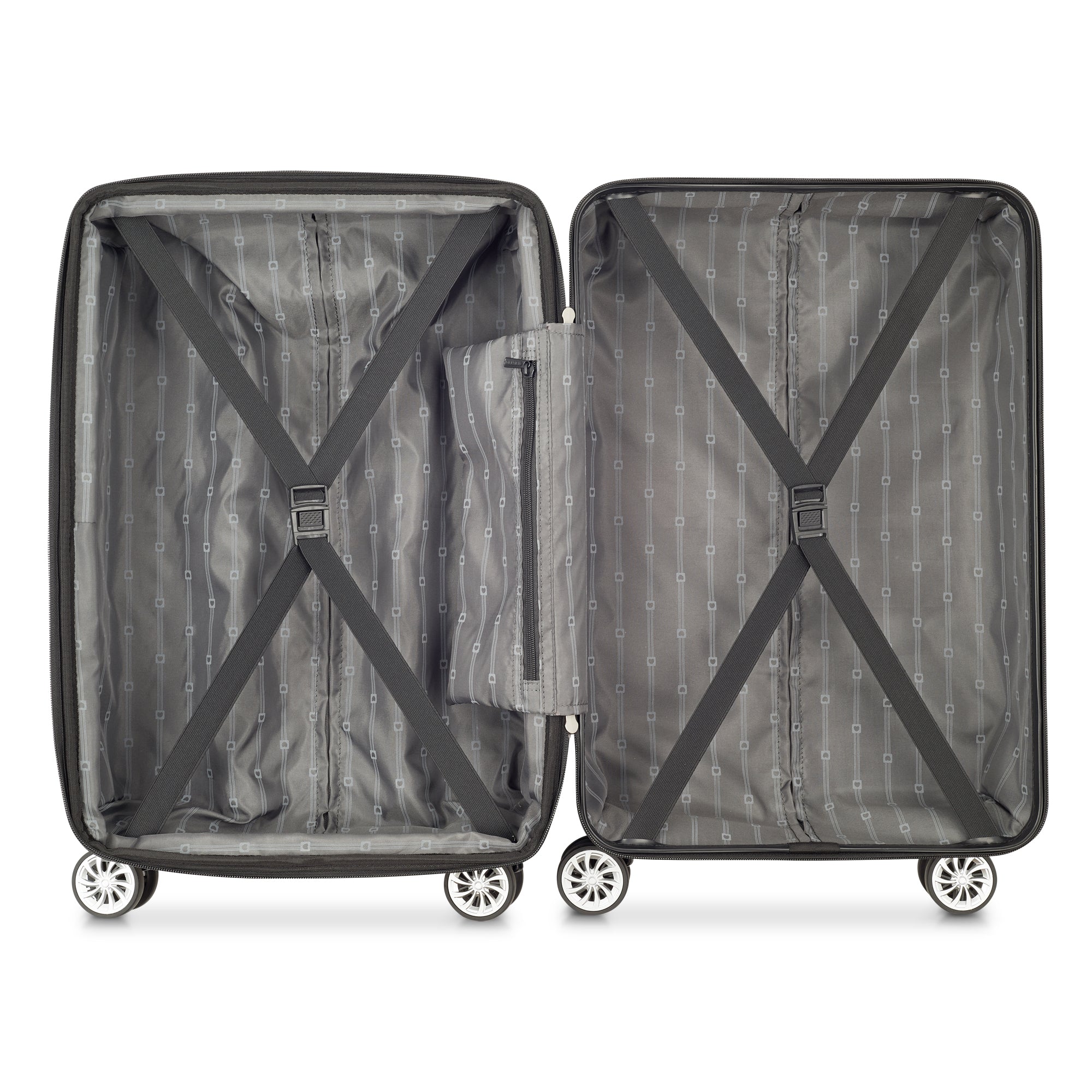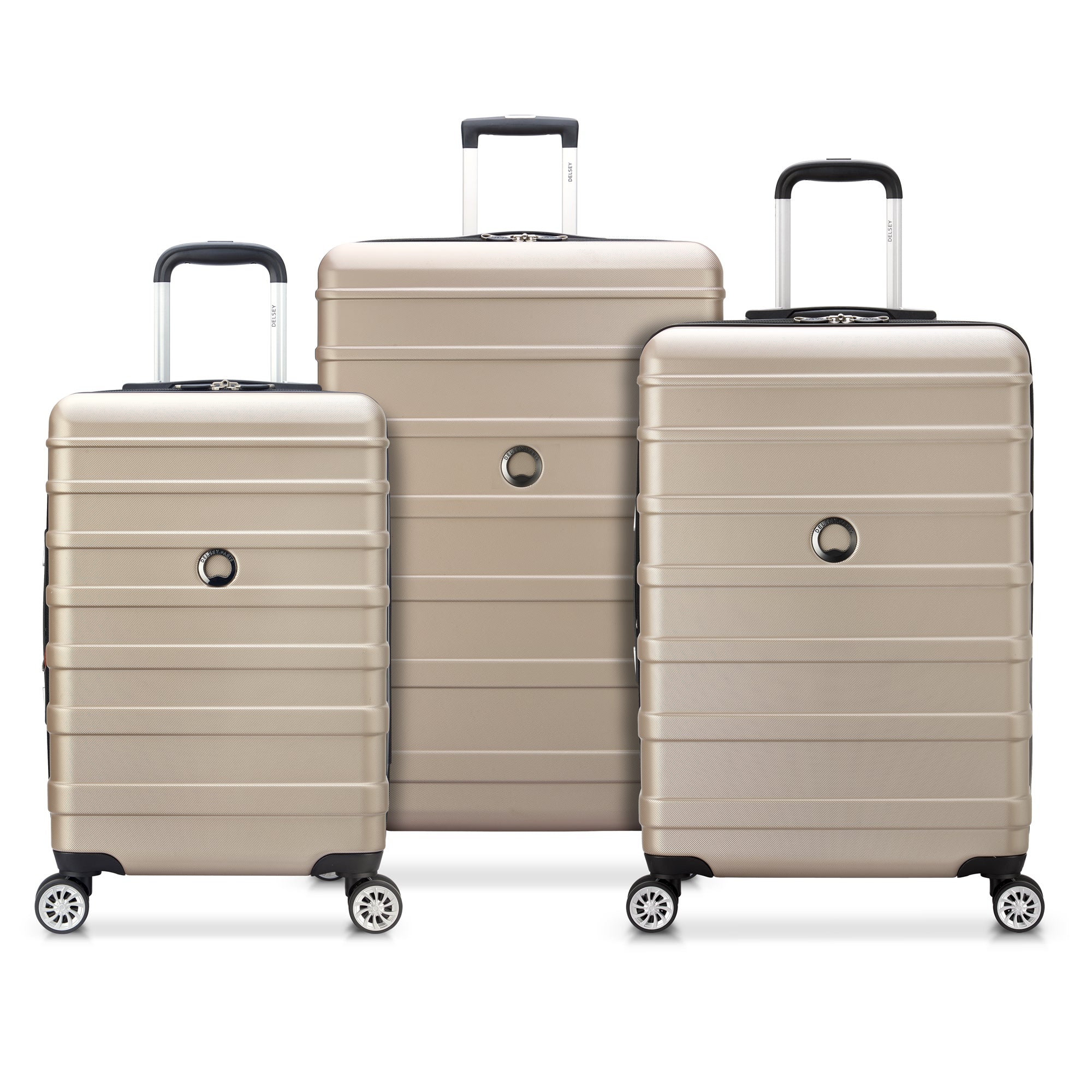 The Margot Set includes all three sizes of luggage in this collection: The expandable Carry-on, the 24" spinner, and the 28" spinner. This chic shell is offered in two sophisticated colors sure to partner well with any tote or small piece you choose to bring on your travels. Each size includes 2 carry handles, a lined divider wih two mesh pockets, and a trolley system. The special texture on the shell even helps with scratch resistance!