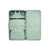 This rolling book-opening garment bag features a multitude of pockets, a divider panel for folding your garments, and a clamp to secure hangers.It has been designed to keep your clothing wrinkle-free and in tip-top shape during your travels.