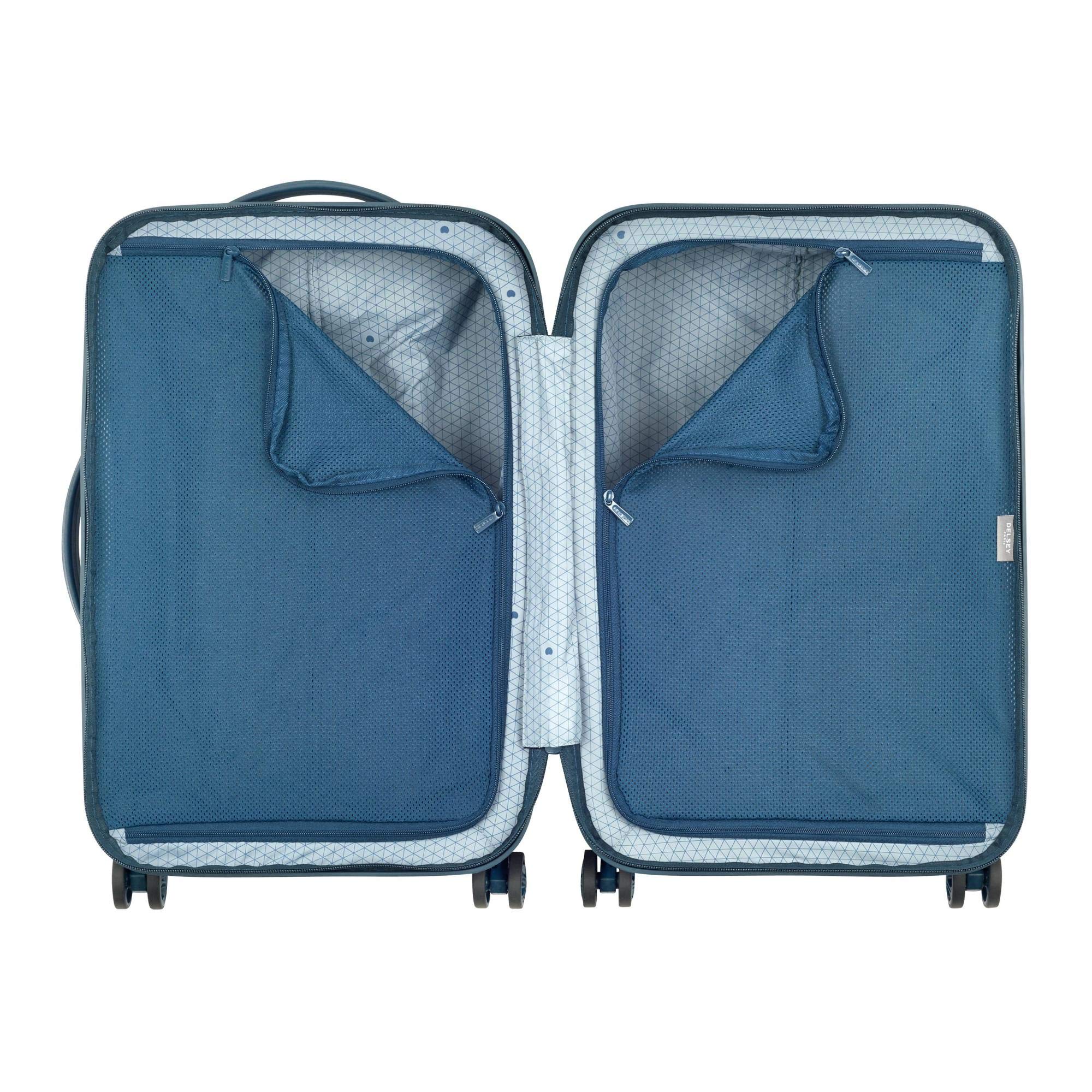 Elegant and timeless, this collection offers extreme lightness while maintaining durability and feature. Made of 100% virgin polycarbonate, Delsey's lightest hardside collection ever features recessed double spinner wheels for effortless mobility, a deluxe interior including shoe and laundry bags, and patented Zip SECURITECH 2 for maximum security.