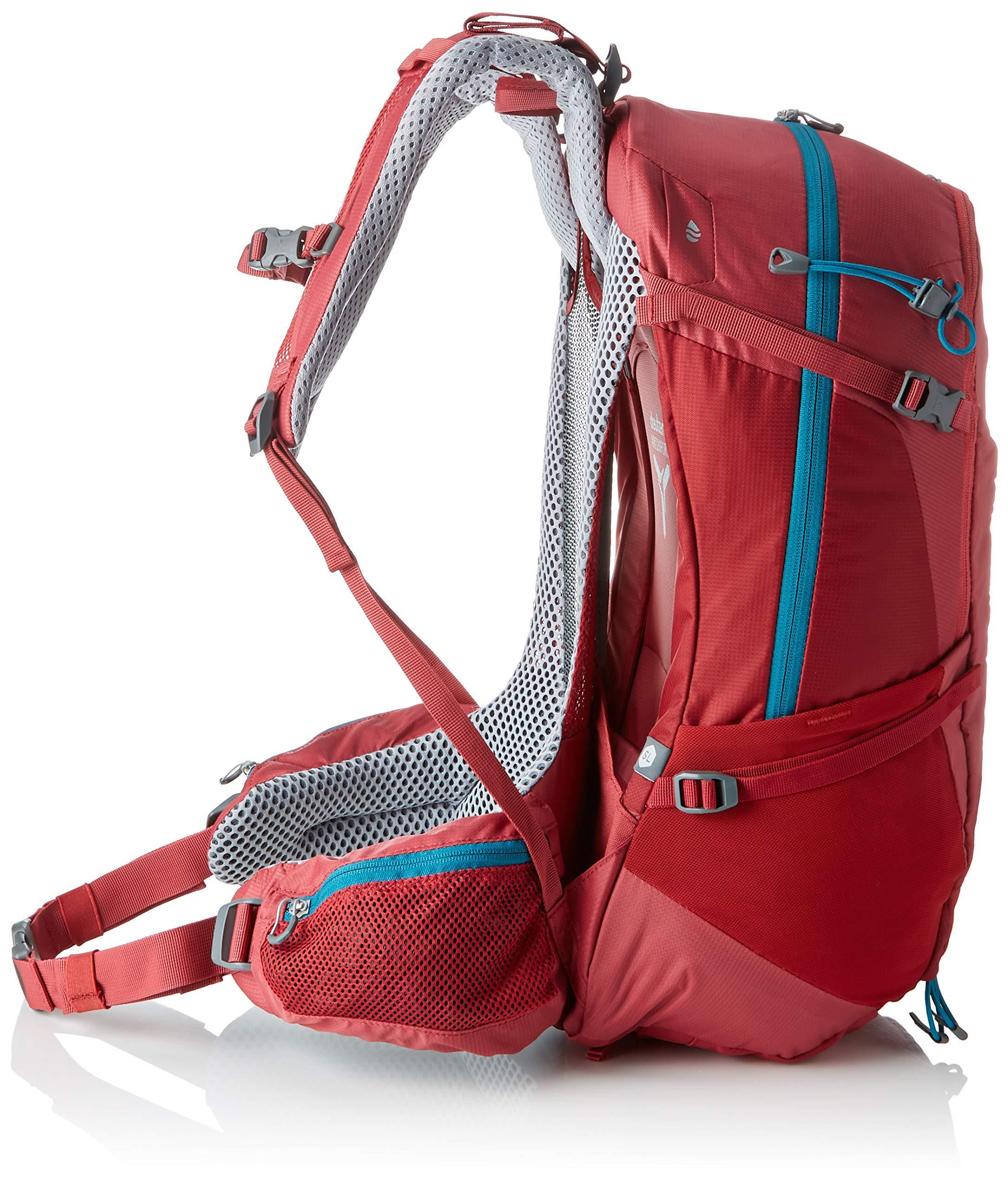 An athletic daypack for easy hikes, city trips, or viaferratas, the Futura 22 SL offers sophisticated solutions for all kinds ofdemands. Its accommodating 22-liter capacity, ultralight weight of 2 lbs. 9oz., and abundant ergonomic features make it one of the most functional packsfor on the market for advanced-level hiking and climbing excursions, no matterthe season or weather. Read more The Aircomfort Sensic Backsystem On small tomedium backpacks that are at home with nimble loads in all types of terrainDeuter strives for maximum ventilation with the Aircomfort Sensic system. It'sflexible spring steel frame is extremely durable, providing stable tension forthe airy back mesh and creating a space between the pack and the wearer's backfor moist warm air to dissipate. Having invented the first mesh back system in1984 Deuter has over 30 years of innovation and design into the active fitshoulder harness and air mesh padded hip belt that effectively adjust to eachwearer and achieve fantastic carry comfort through stable construction andeffective load transfer. Read more Engineered For Women Deuters womensspecific fit packs were designed for women by women. Featuring a slightlyshorter back length (14-18inches), narrower shoulder harness, and conicalshaped hip belt the SL design will move with you and adjust to each wearerthrough the active fit pivoting shoulder harness and dual density foam hipbelt. Read more Pack Features Hiking pole attachment loops Sidecompression straps for regulating pack volume Stretch side water bottlepockets Large front stretch pocket Height and width adjustable chest strap Integrated detachable rain cover with reflector logo Hydration systemcompatible Read more