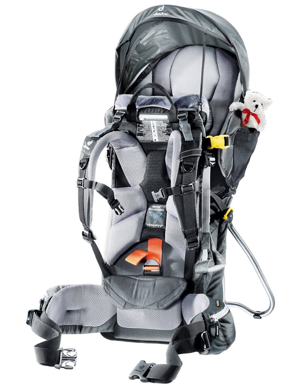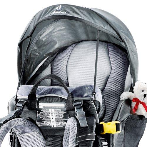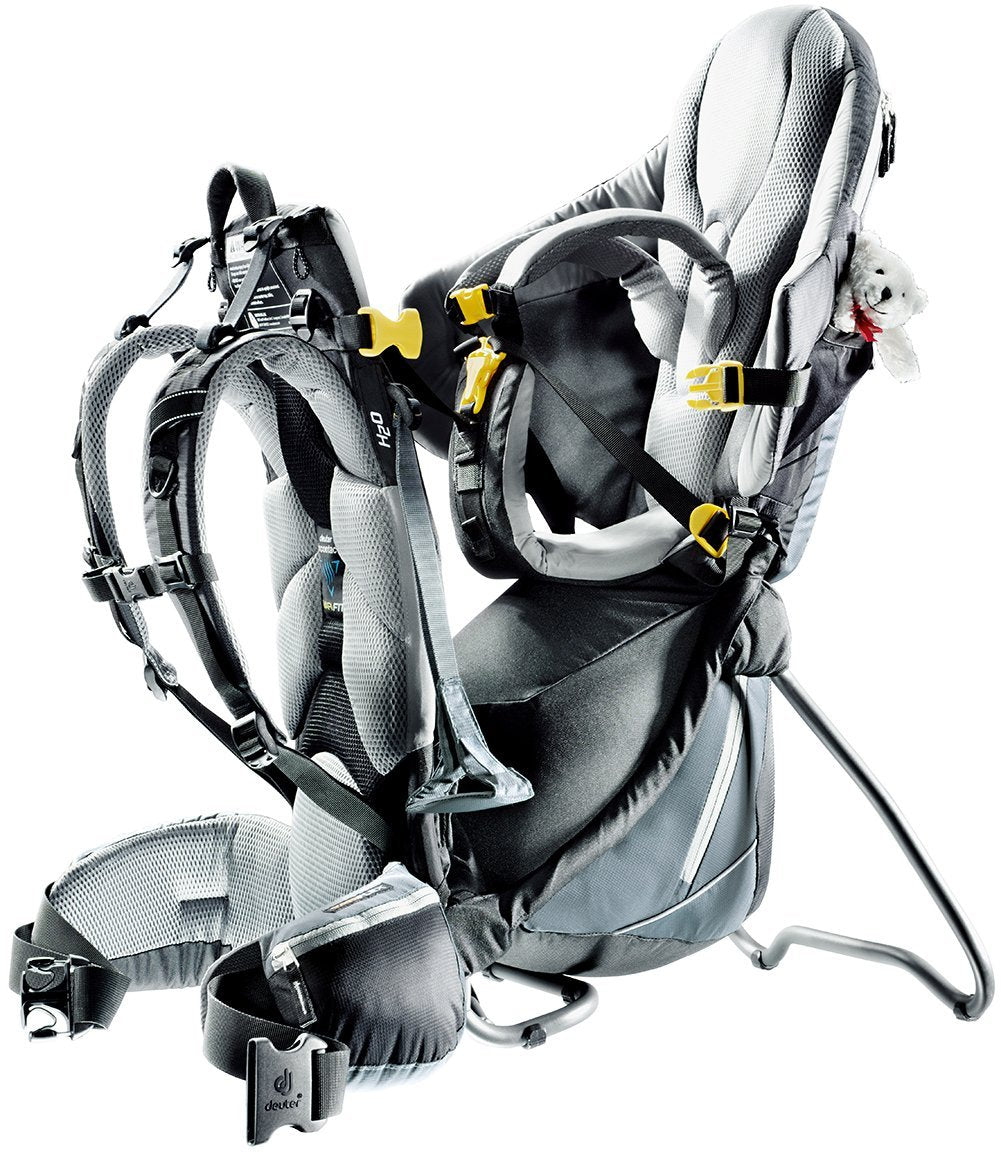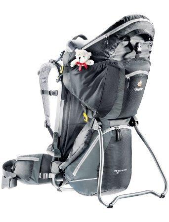 Redesigned with a new kickstand hinge and improved child seat height adjustment, the Deuter Kid Comfort III Child Carrier is one of the most advanced and adjustable child carriers available today. Deuter optimized the Kid Comfort III for ergonomic support and ventilation--that's essential for any parent who enjoys extended walks and outdoor outings with their toddler. The Deuter Kid Comfort III Child Carrier has an adjustable five-point safety harness that comfortably keeps children secure inside the backpack. Other top-of-the-line refinements include a child headrest with integrated zip-out sun roof/rain cover, detachable dribble pillow and breathable child seat cushions. The Deuter Kid Comfort III Child Carrier also hydration-system compatible, which is important for adults on sunny summer strolls. Deuter reminds parents that the maximum weight of child and gear for the Kid Comfort III Child Carrier should never exceed 48.5 lbs or 22 kg.