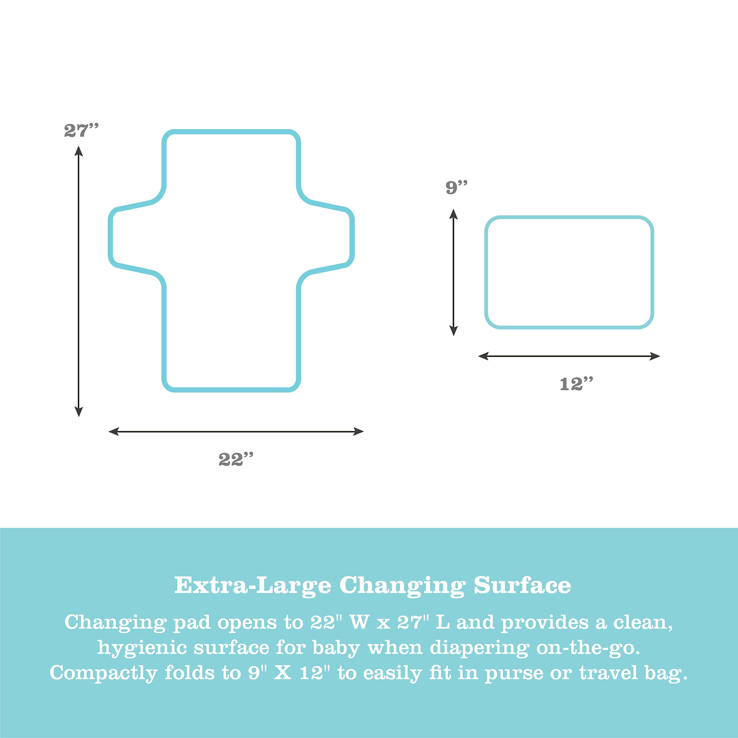 Stay organized and protect your baby during on-the-go diaper changes with the Disney Baby by J.L. Childress Portable Changing Station. A large mesh pocket holds up to four diapers, creams and other essentials, while the large elastic pocket is great for toys, wipes and more. The exterior zippered pocket fits personal items such as keys and phone. The extra large changing pad protects baby's entire body and full padding offers a comfortable surface. PLUS - this convenient Changing Station INCLUDES a reusable, coordinating wipes case! The Changing Station also features an adjustable wrist-strap with buckle, making it easy to carry for grab-and-go diaper changes or attach to your stroller. The wipe-clean changing pad can also be zipped-off from station and used on its own. Officially licensed Disney product.