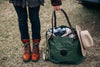 Four snaps on all sides to secure the bag if desired Interior hanging zippered pocket to hold small items. Premium leather handles can be adjusted with roller buckles for multiple length options. Tough 15 ounce cotton canvas construction. Guaranteed for life. Made in the USA.
