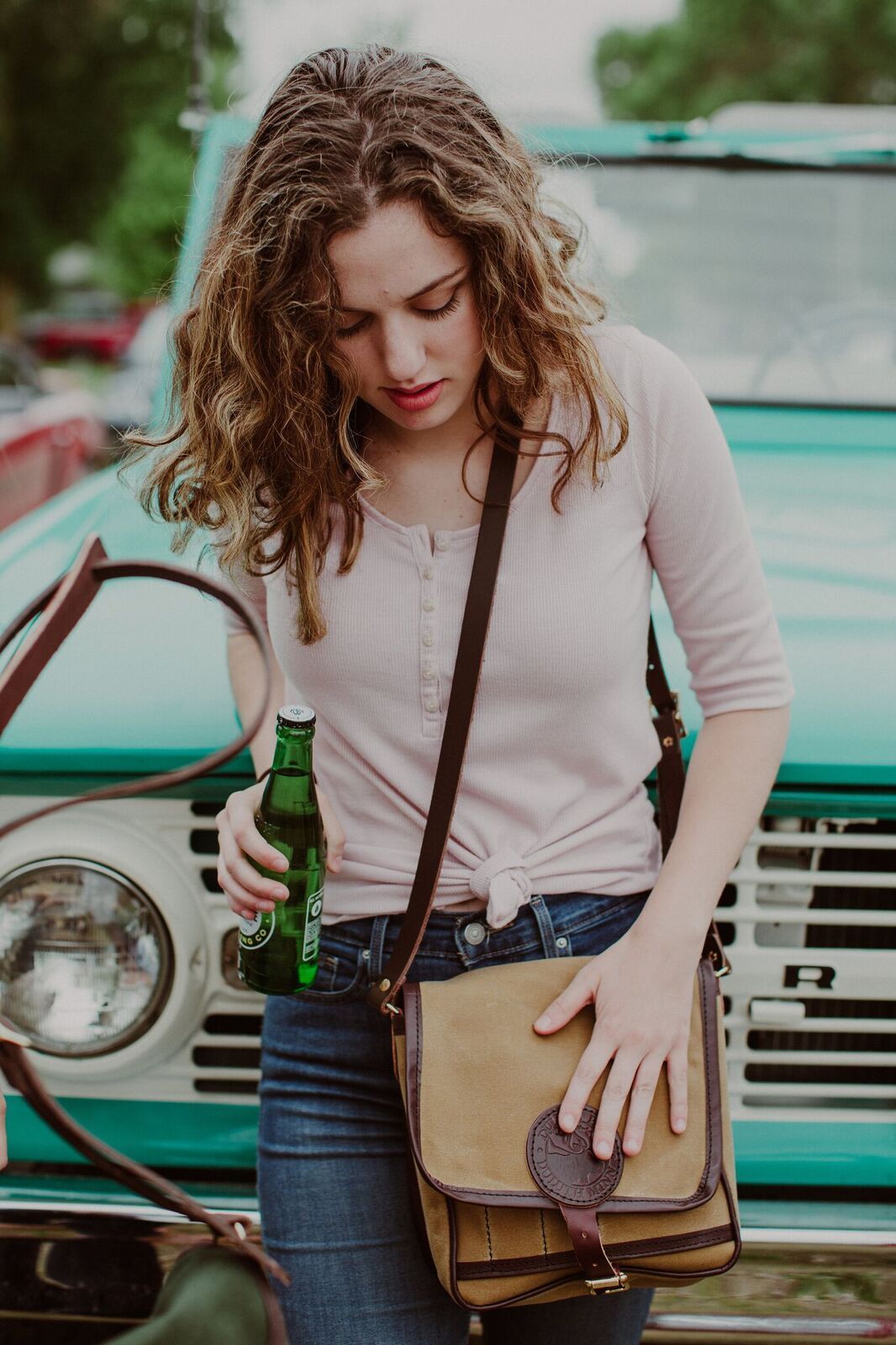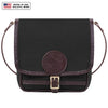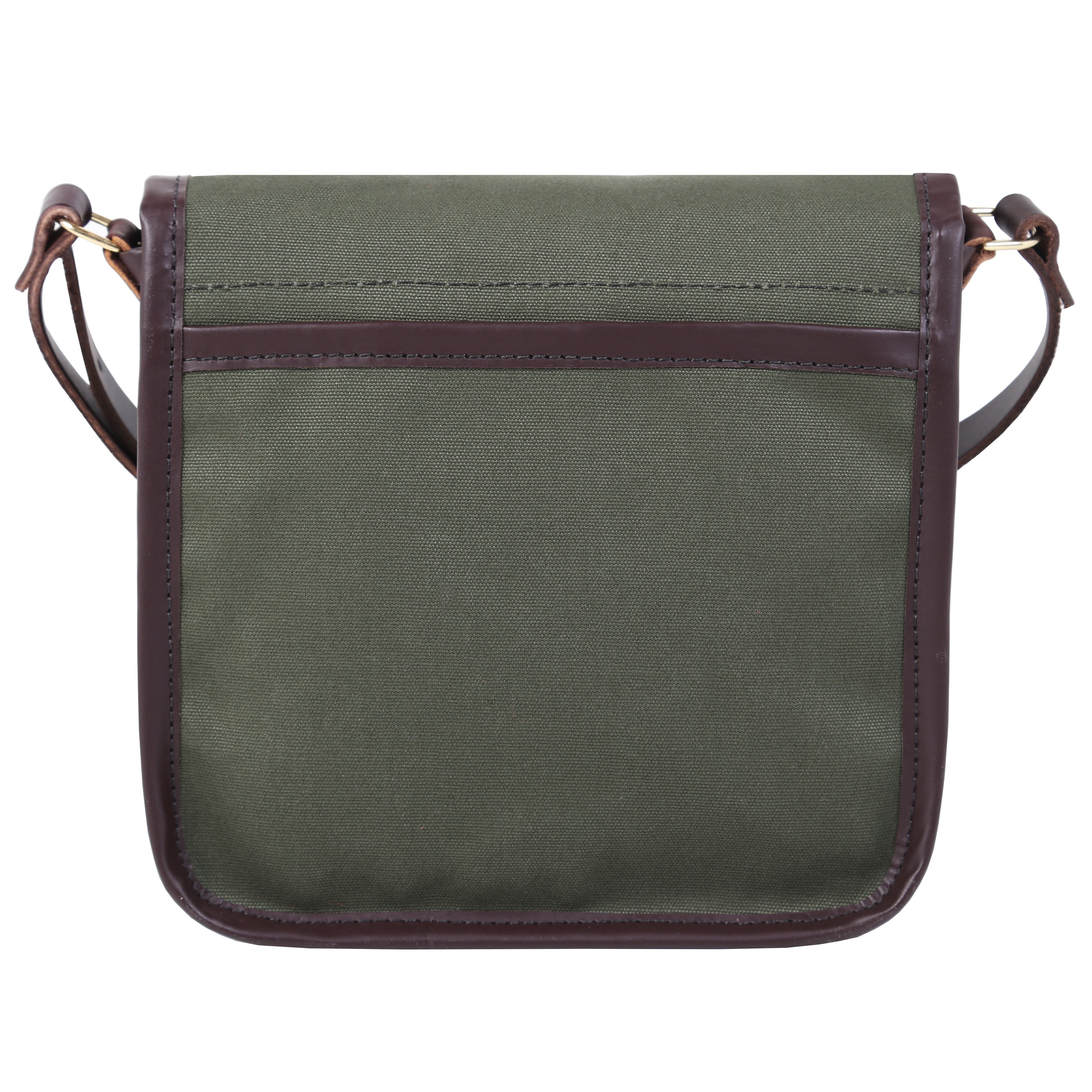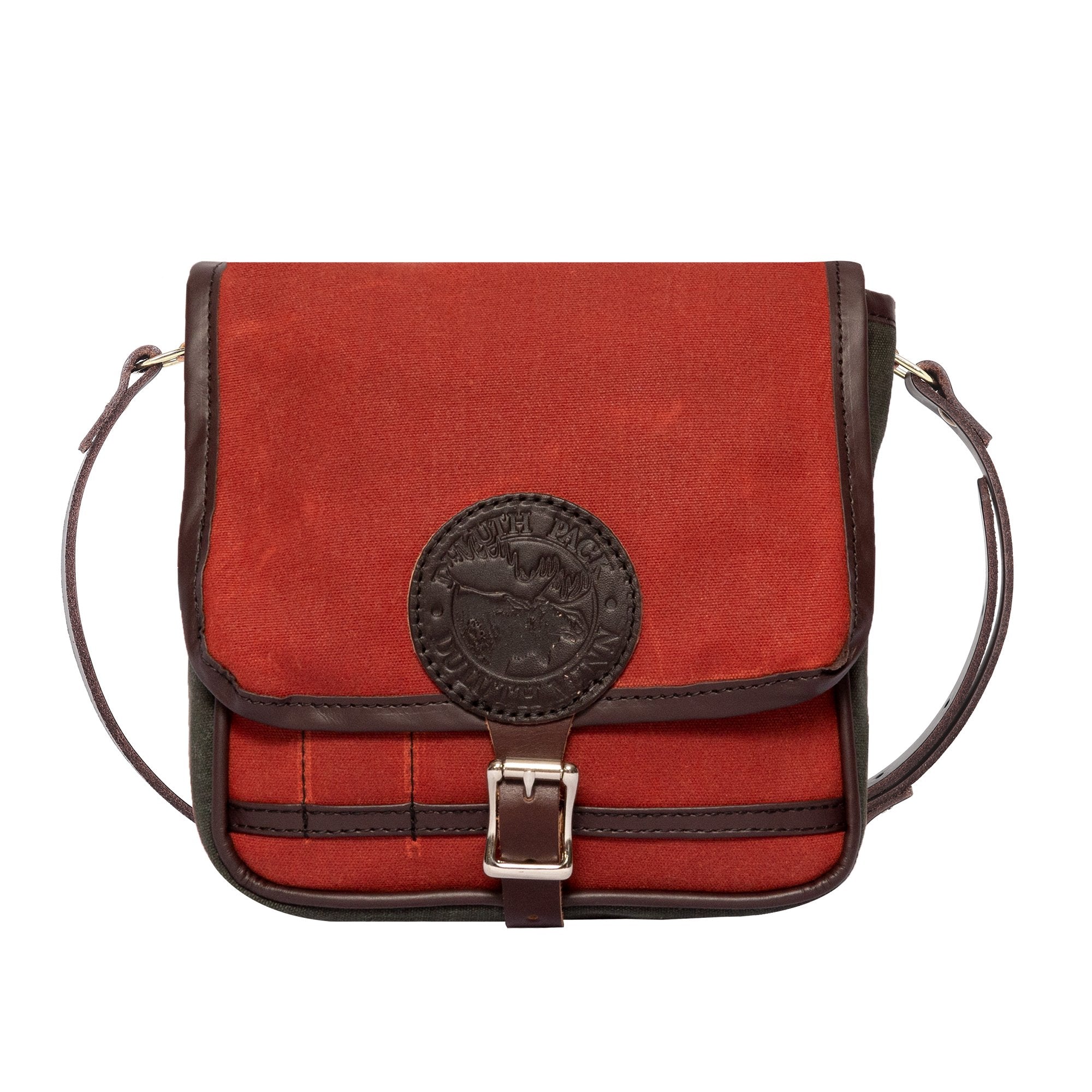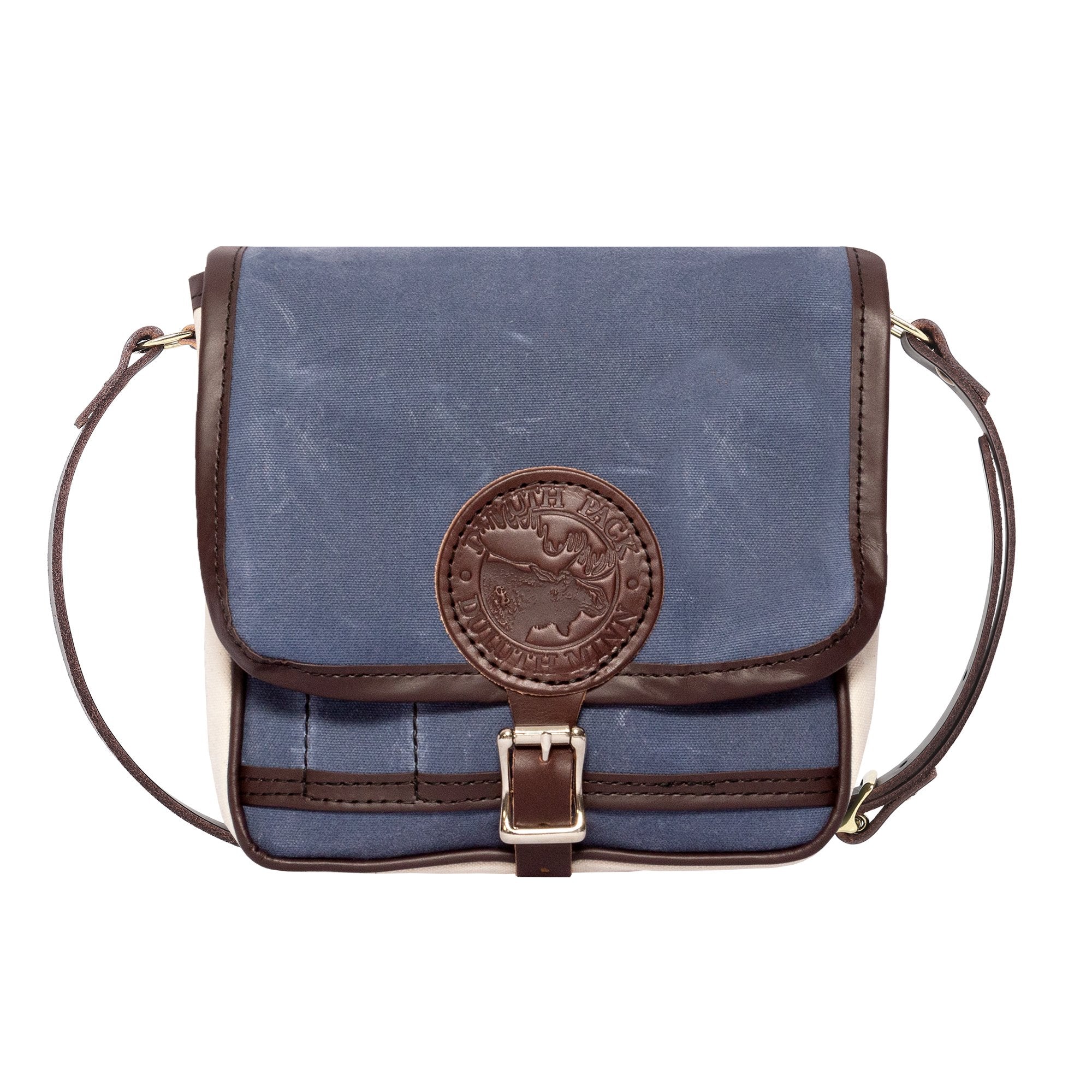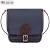 Premium leather flap strap with buckling closure Internal slip pockets and back slash pocket to keep you organized. Adjustable leather shoulder strap. Tough 15 ounce cotton canvas construction. Guaranteed for life. Made in the USA.