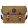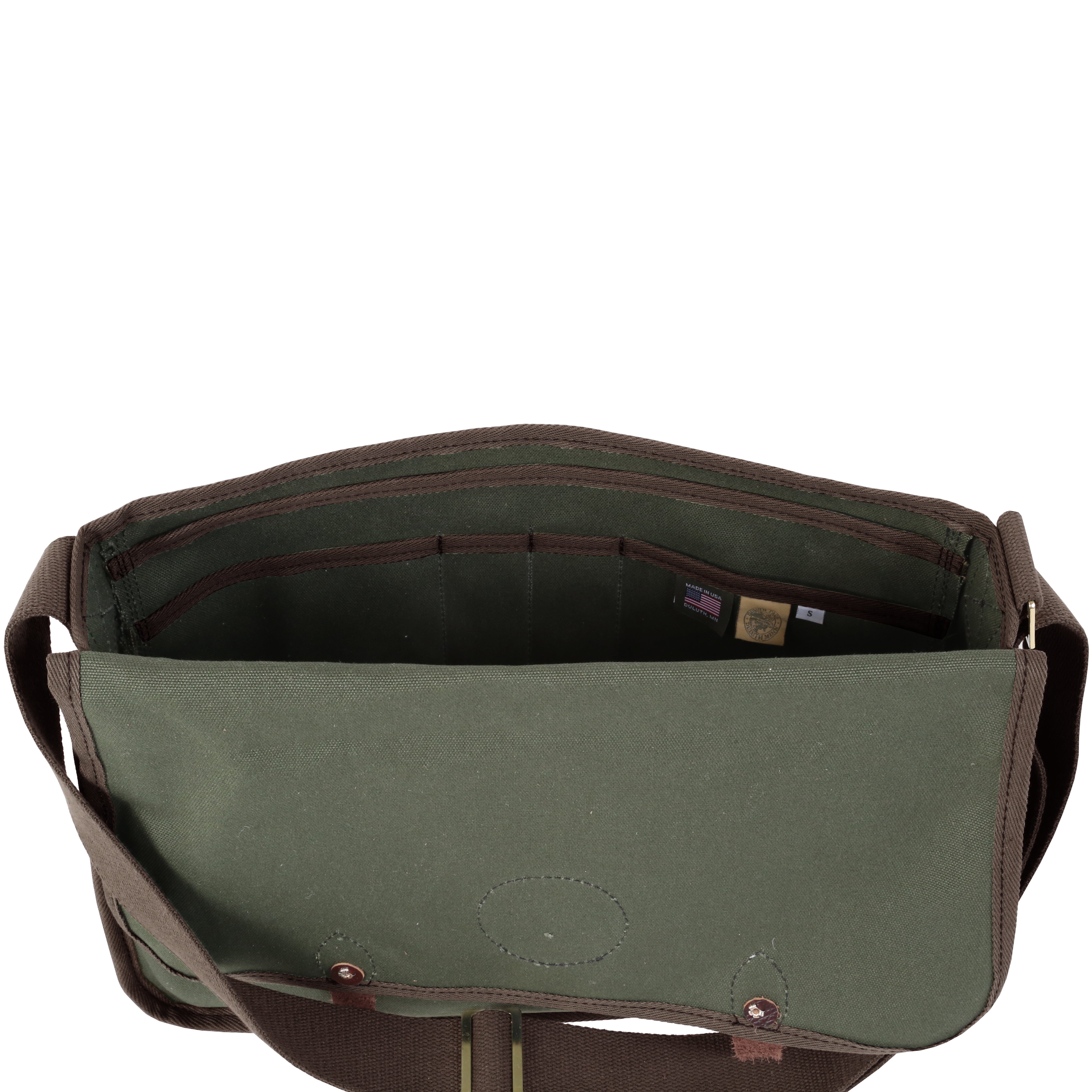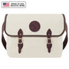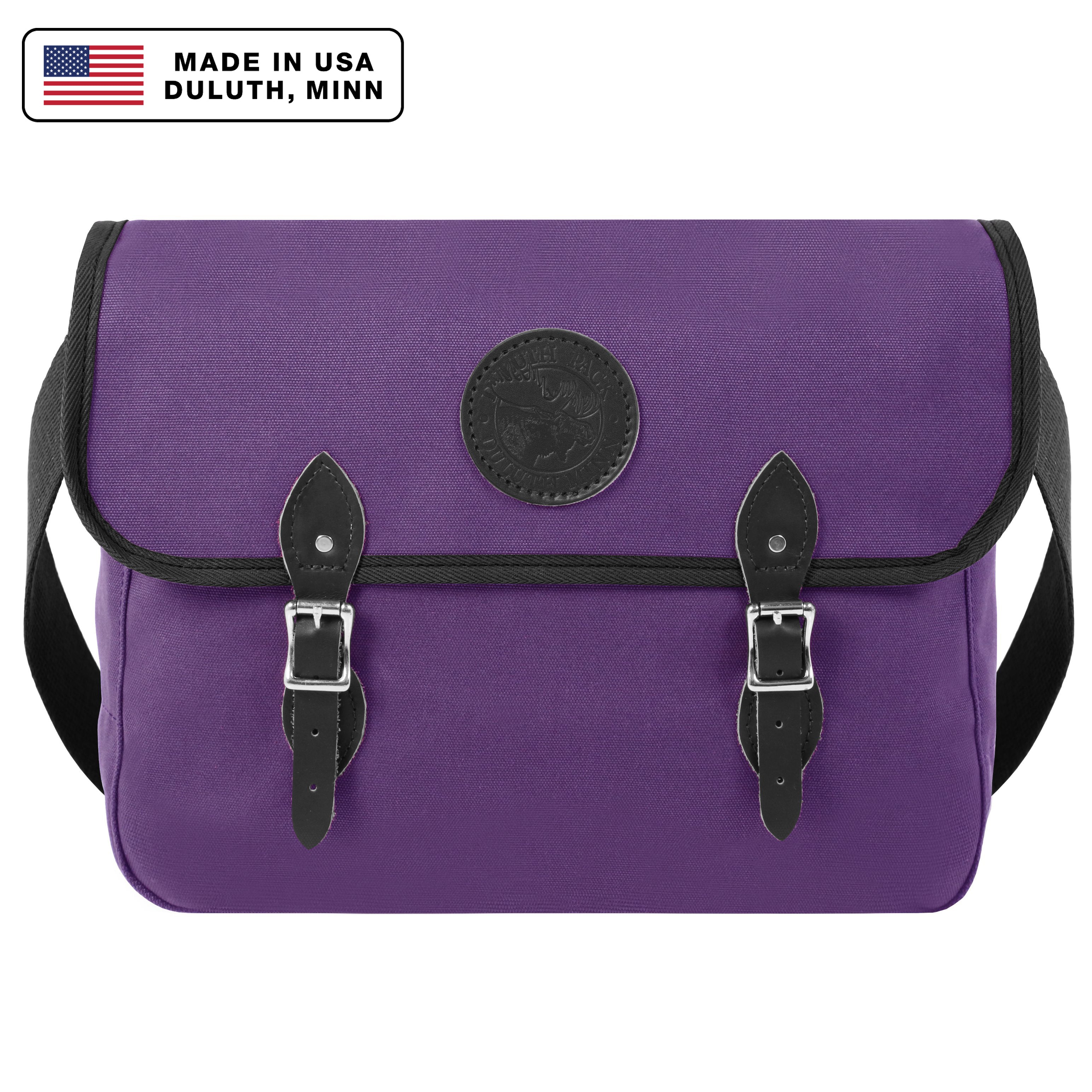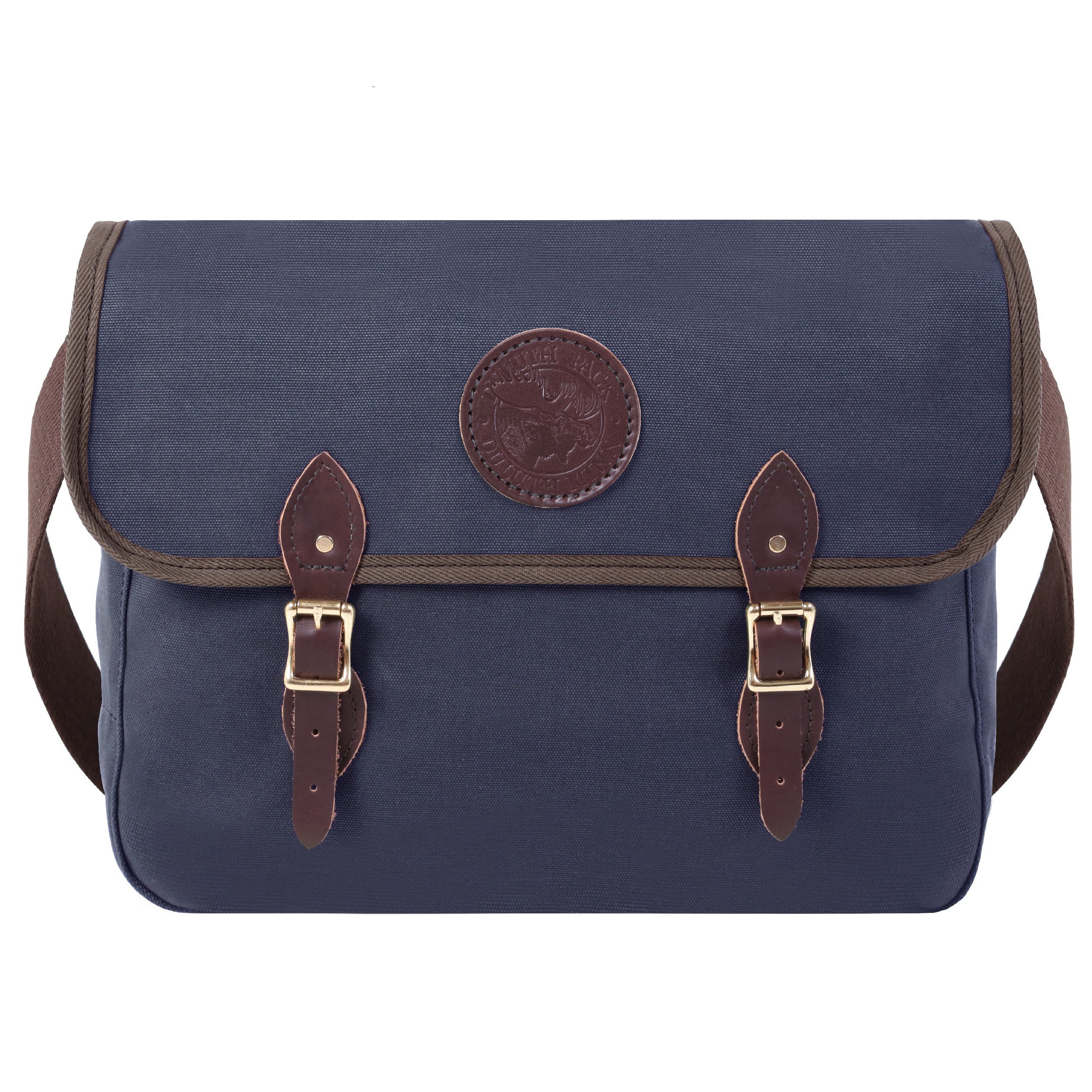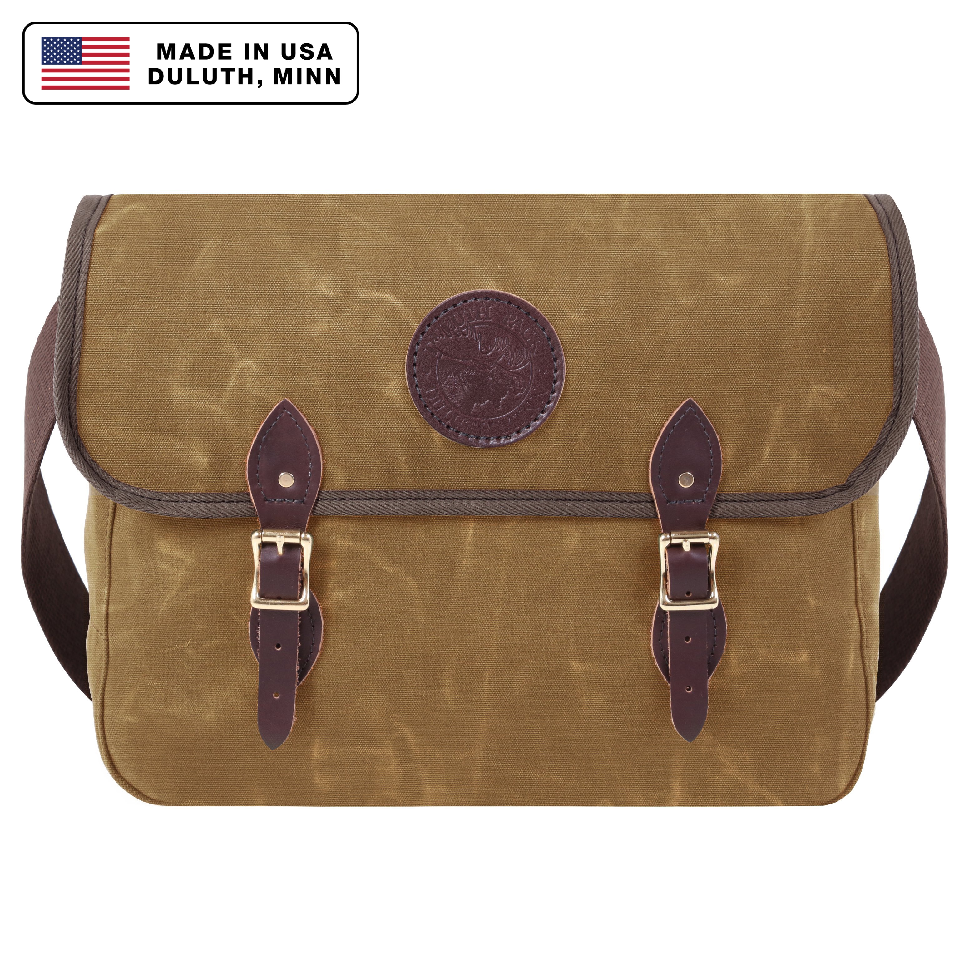- Leather straps and high-quality roller buckles secure fold-over flap.