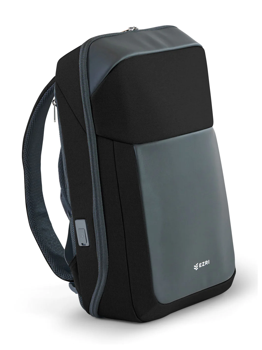 The EZRI Compact's slimmer, sleek interior combined with its wide range of functional pockets provides its users a place to fit all your work and travel needs while maintaining a professional style. With a laptop, tablet, and notebook pockets, this compact backpack will neatly carry all your items wherever you go.