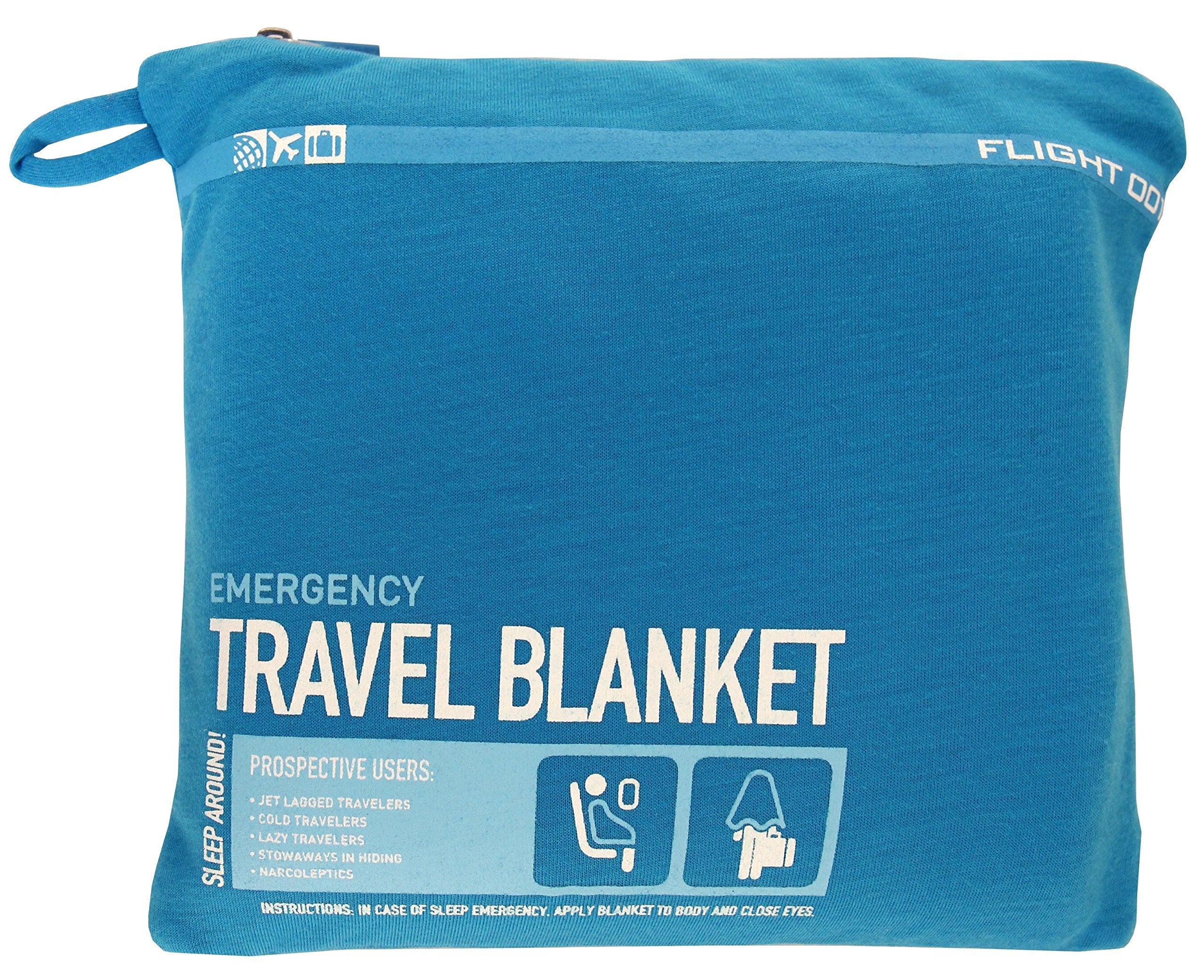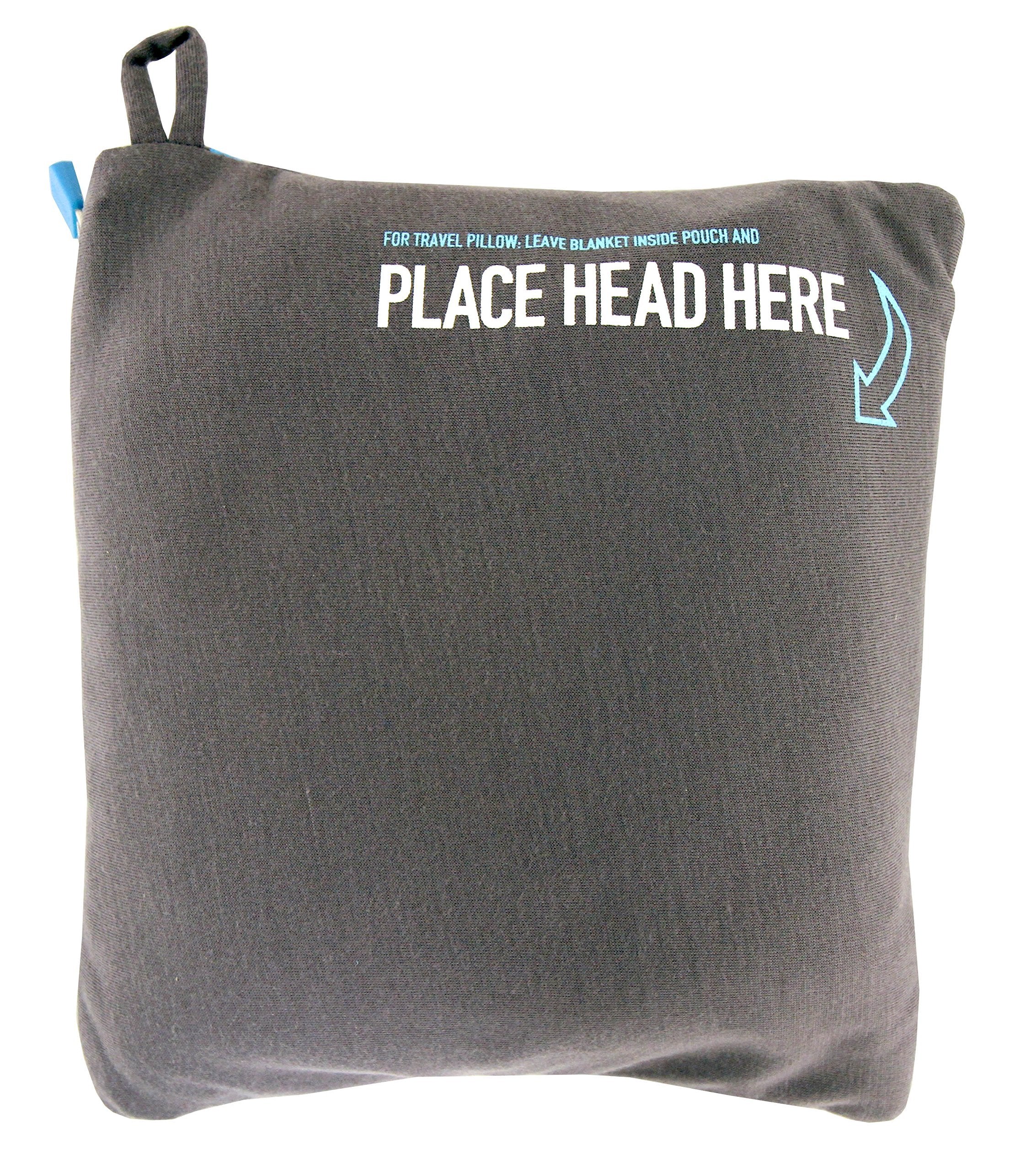 A packable Flight 001 travel blanket crafted of lightweight jersey. The zippouch becomes a pillowcase when the blanket is not in use. Graphics on thecorner.