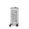 100% Aluminum, 4-wheeled Made in Italy suitcase. The wheels guarantees great stability and smoothness. The suitcase has a TSA lock incorporated combined with two maxi butterfly locks that ensures safety. The handles are in fine Italian leather. The interior of the suitcase include handcrafted leather belts. The lining is padded and removable. The interior organizer allows for optimum arrangement of contents. Ideal for 13/14-day journeys.