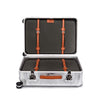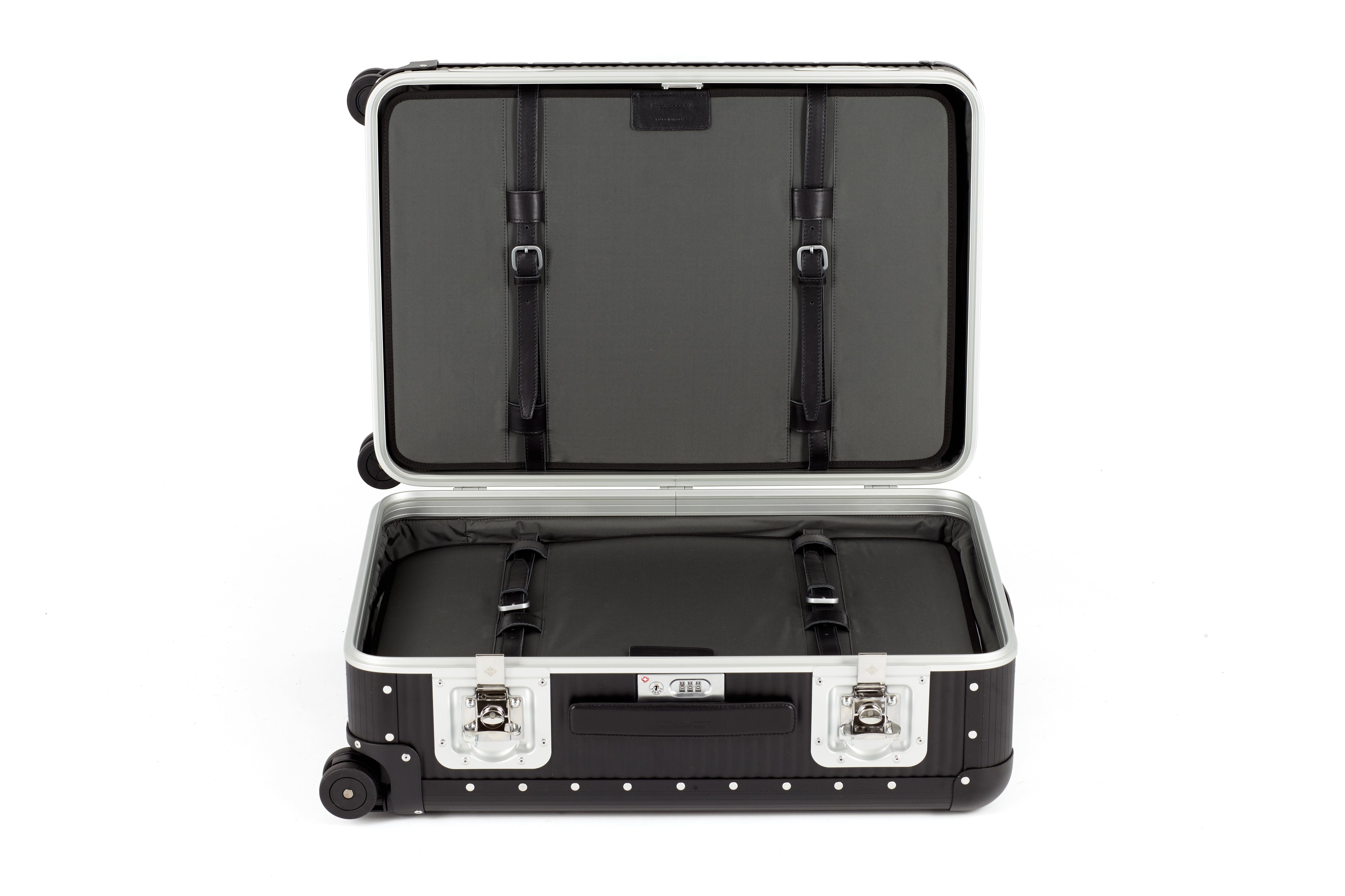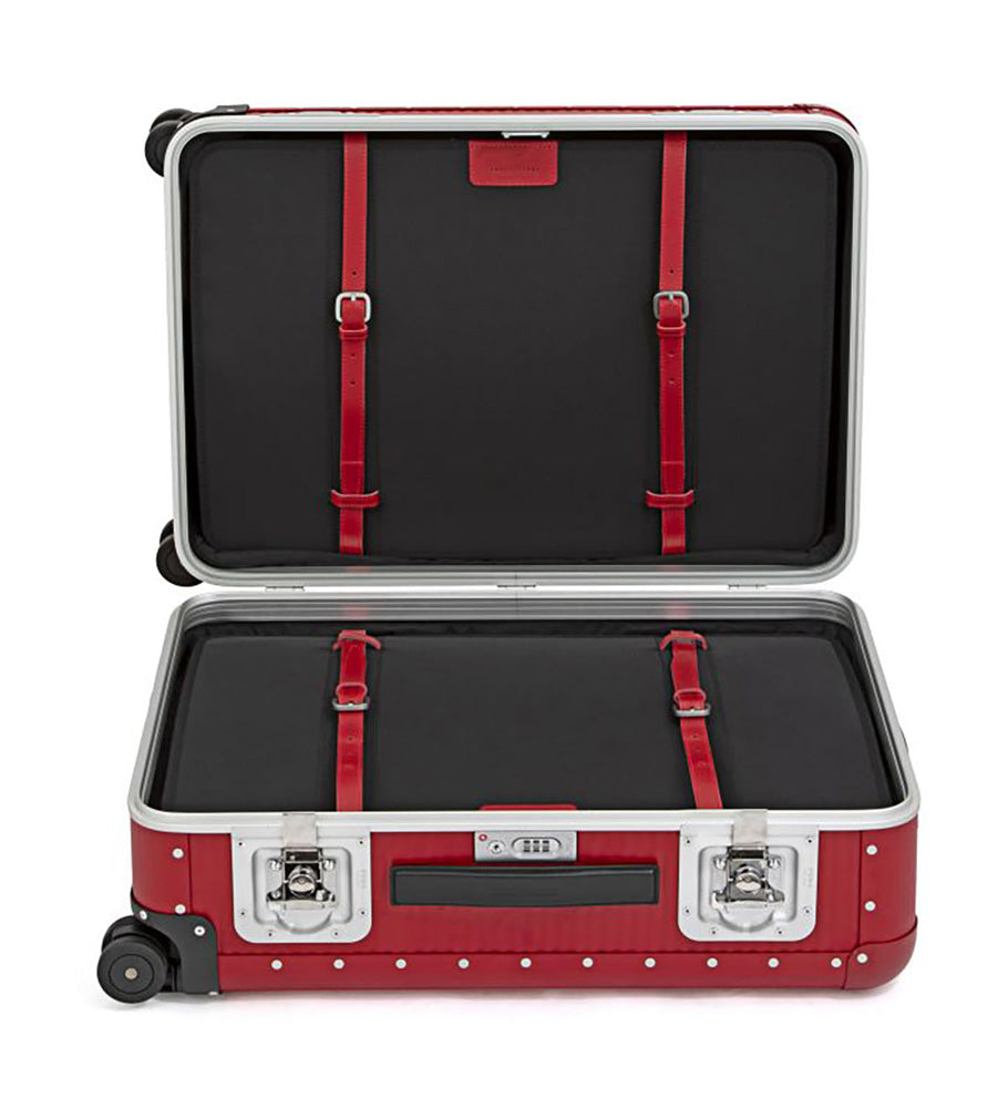 100% Aluminum, 4-wheeled Made in Italy suitcase. The wheels guarantees great stability and smoothness. The suitcase has a TSA lock incorporated combined with two maxi butterfly locks that ensures safety. The handles are in fine Italian leather. The interior of the suitcase include handcrafted leather belts. The lining is padded and removable. The interior organizer allows for optimum arrangement of contents. Ideal for 13/14-day journeys.