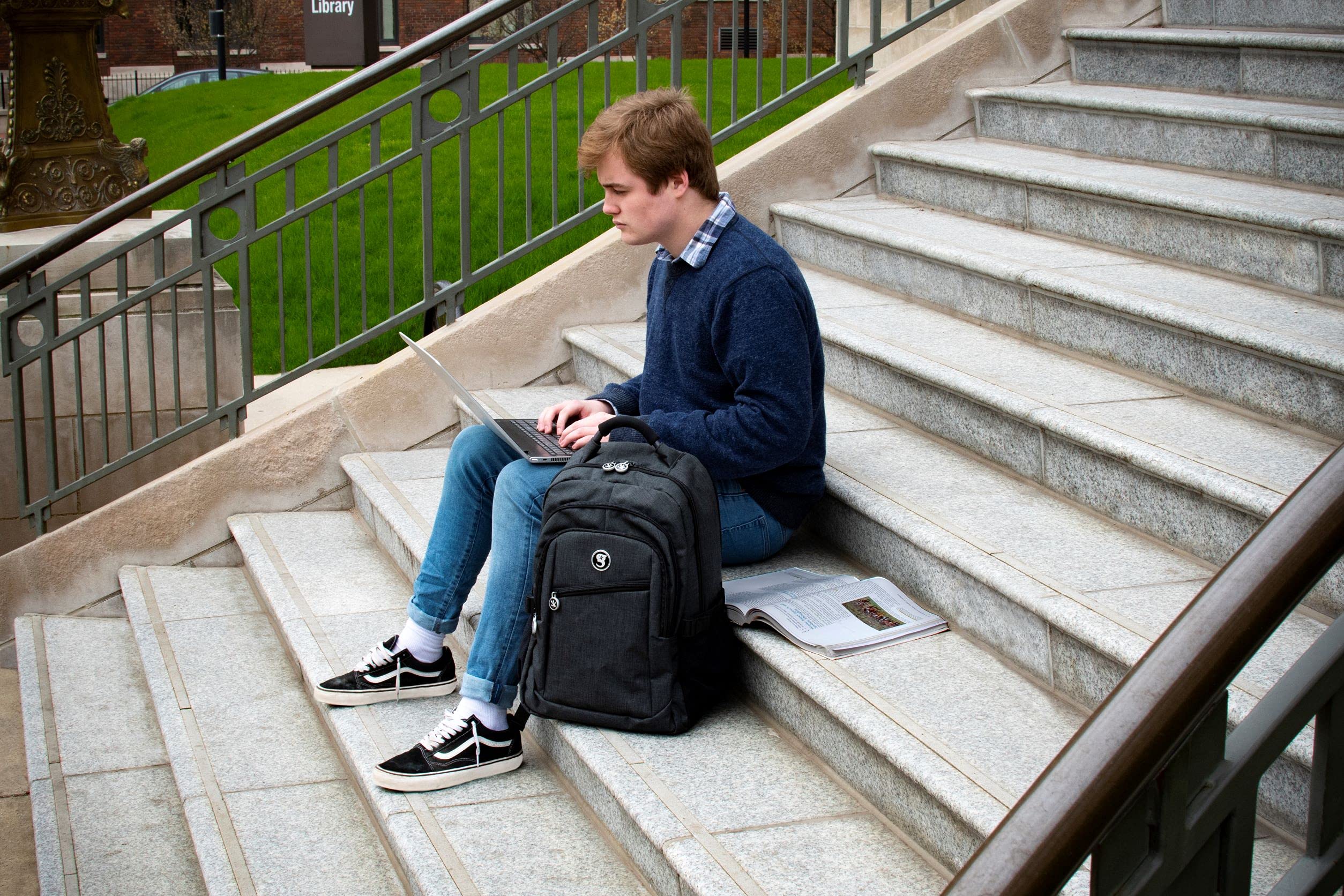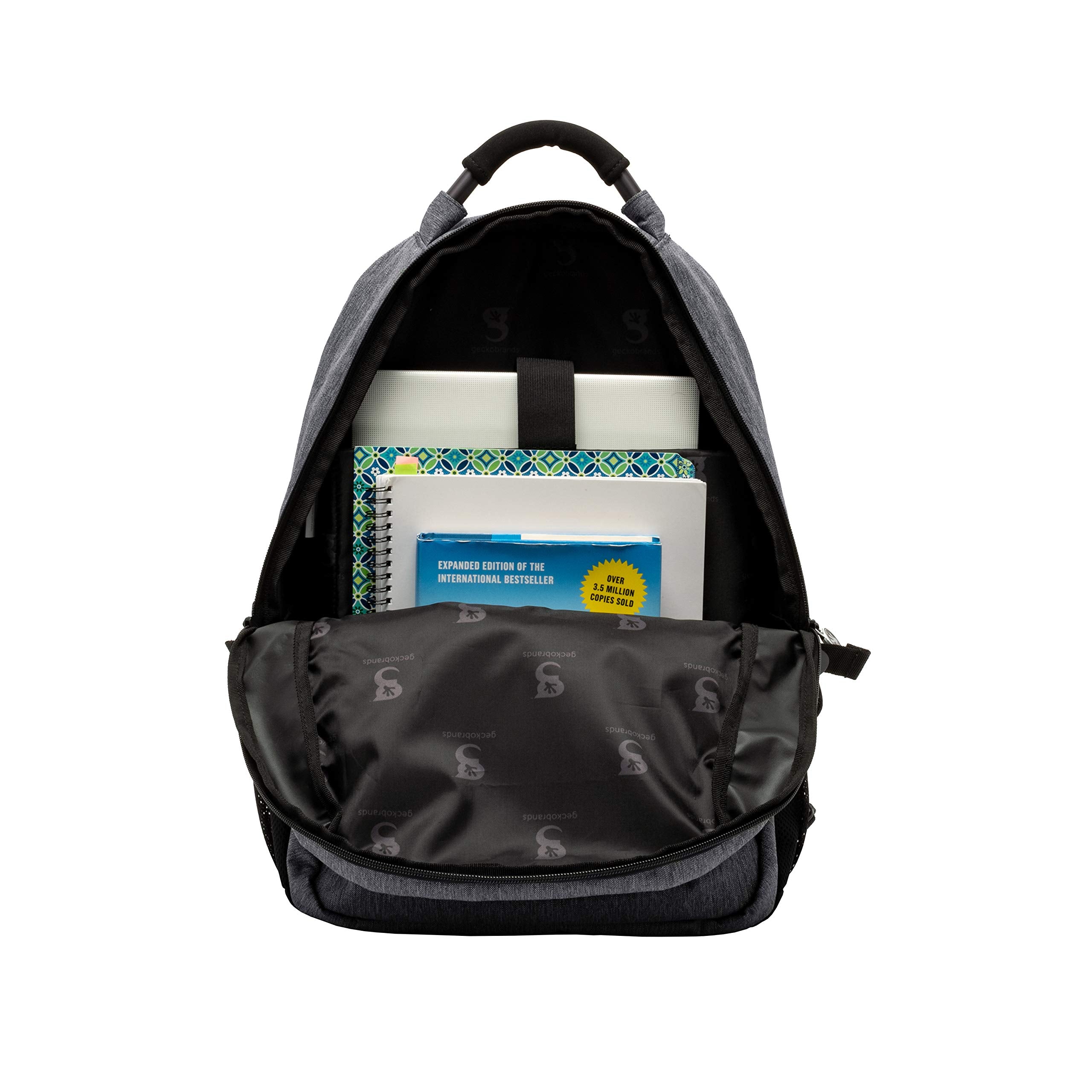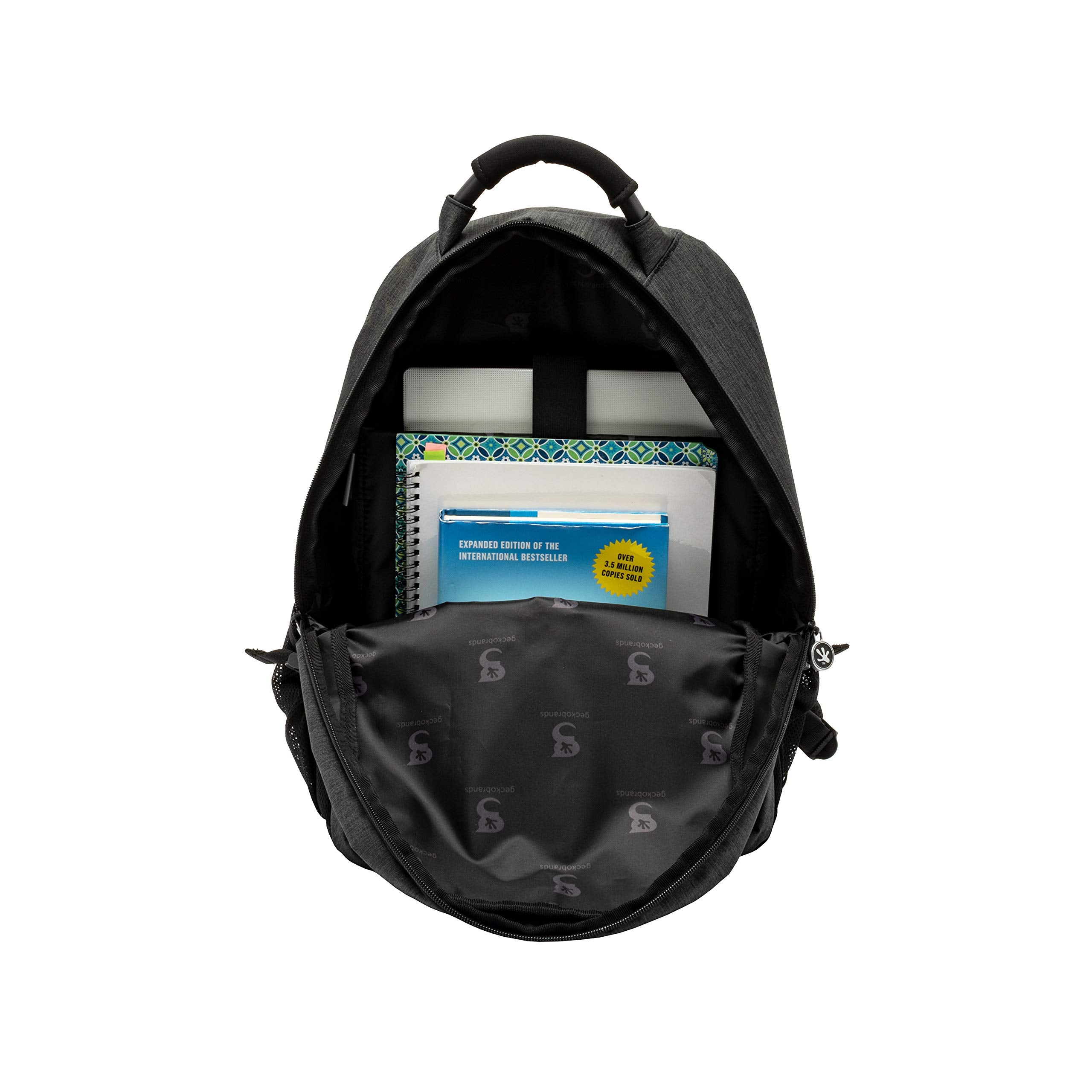 This backpack will elevate your day as it features our highest level of organization. The durability of this bag is unmatched with its reinforced top-handle and metal hardware.