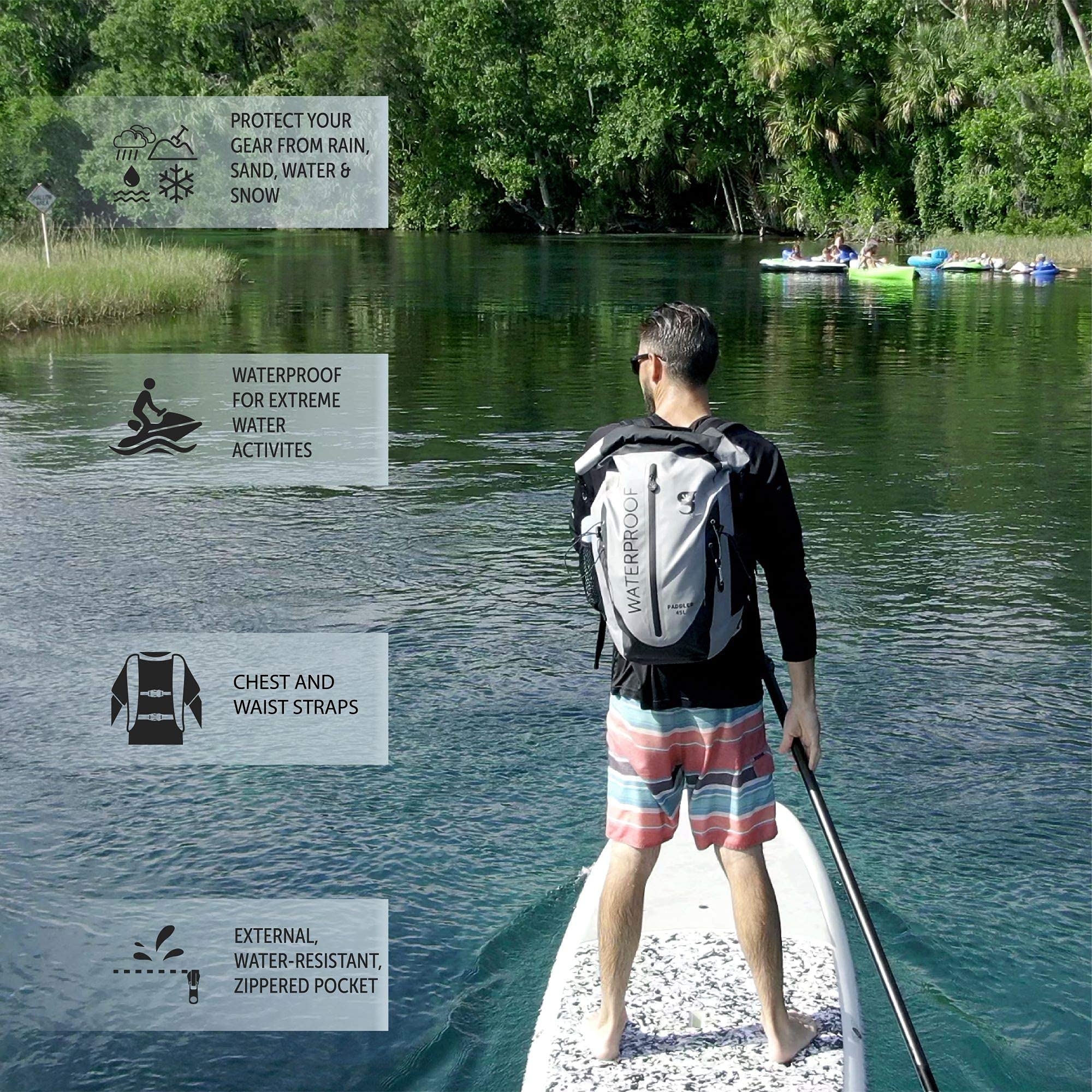 This backpack features a 30L capacity, durable pvc tarpaulin material and waist strap to take you on any adventures you throw at it.