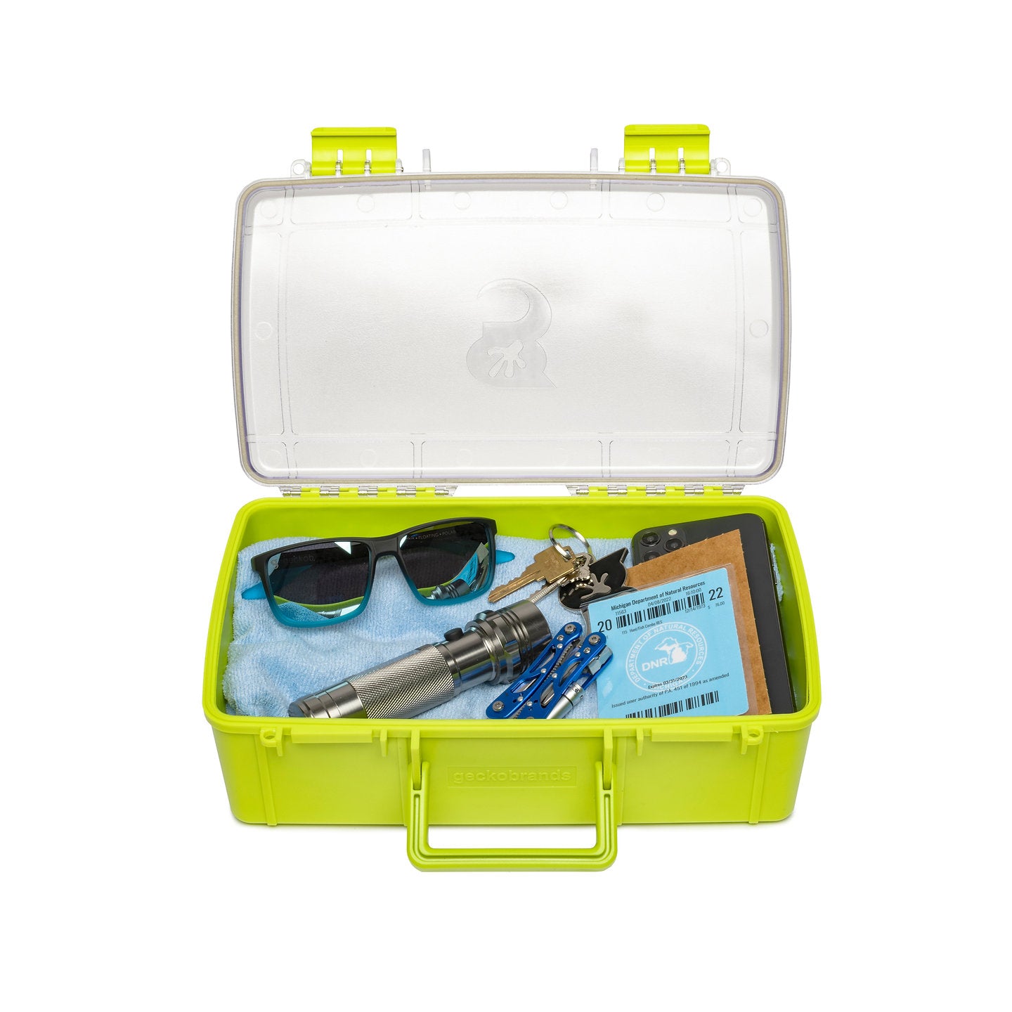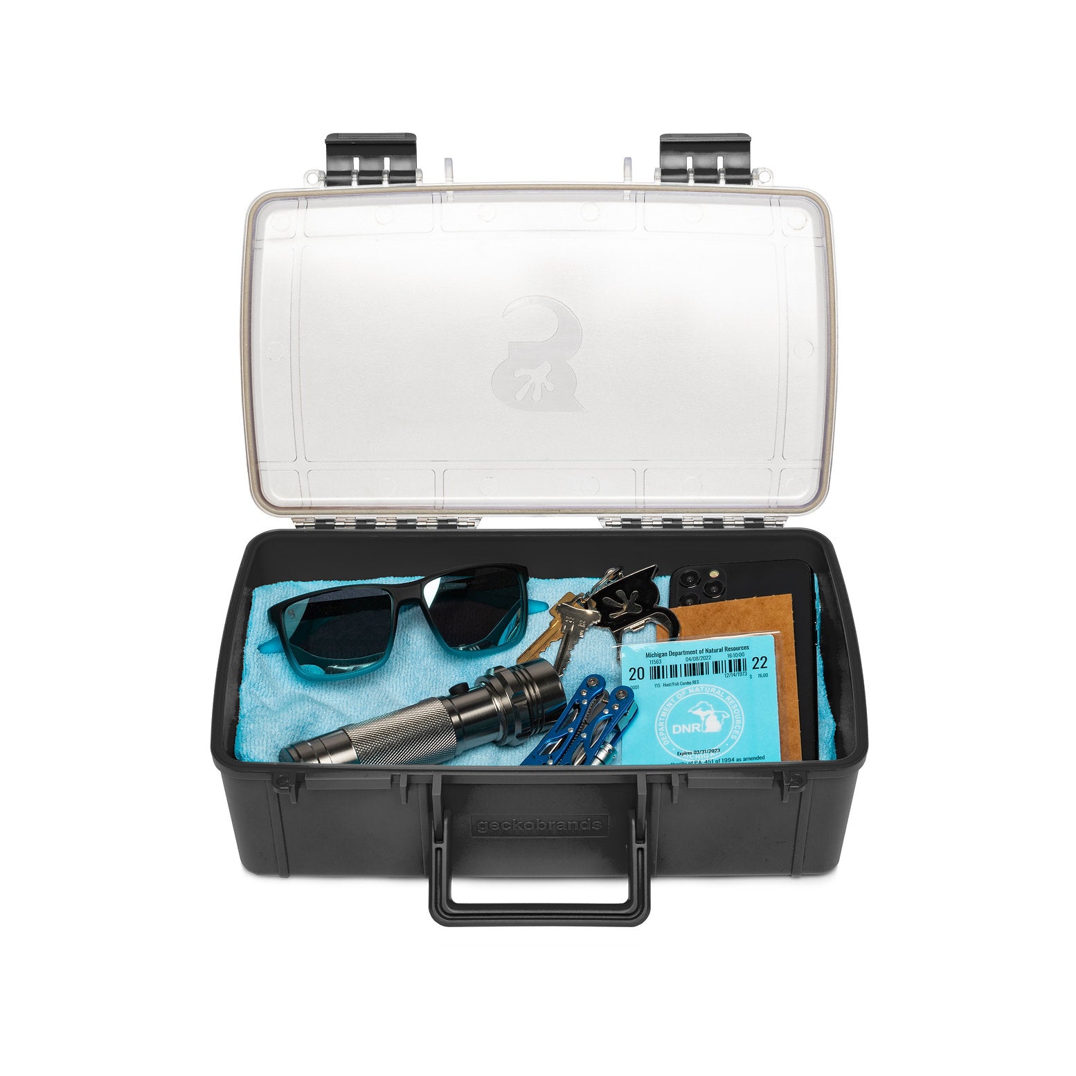 Protect your gear in the watertight, dustproof and crushproof box. The silicone liner offers additional care for your phone and the size is optimal for your keys, licenses and other small valuables. Includes a dual latch system to ensure a secure close.