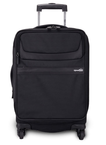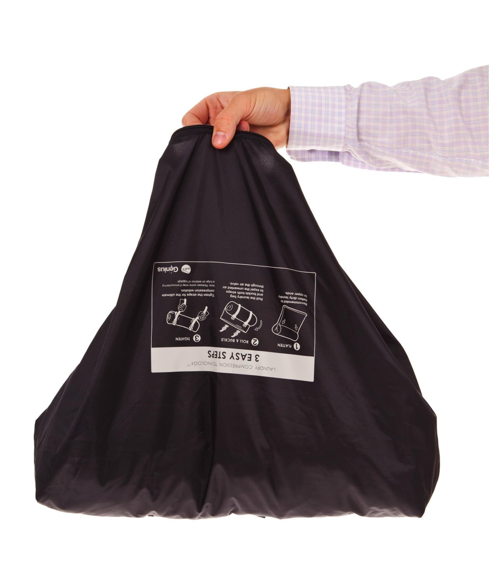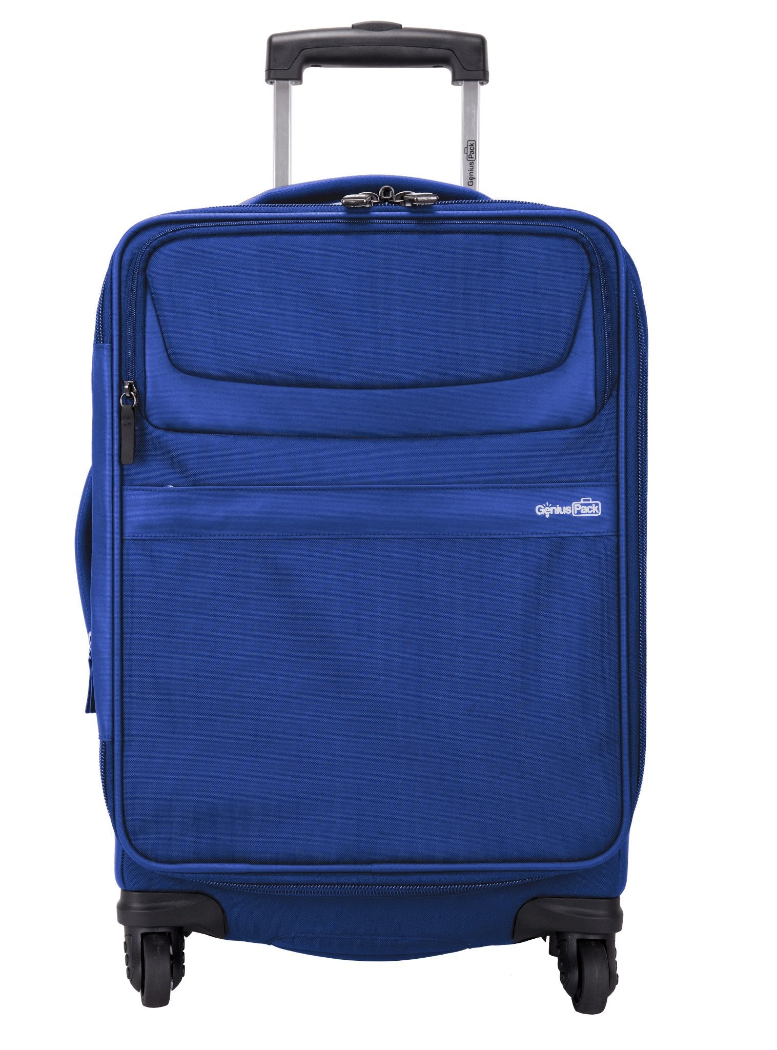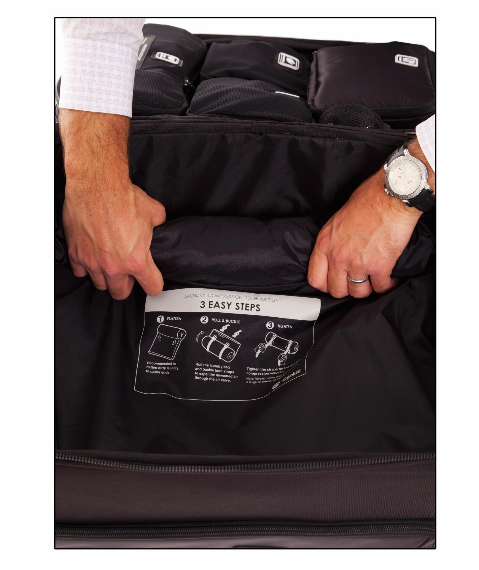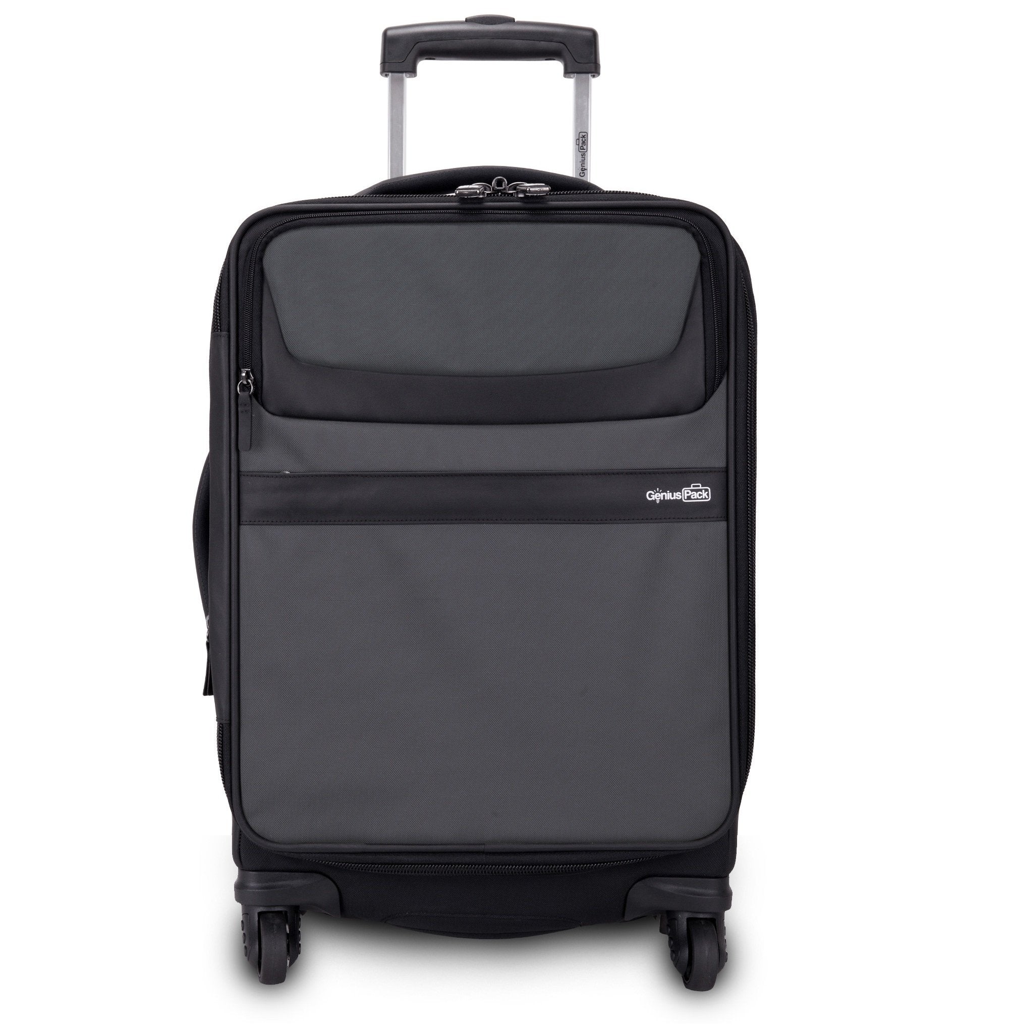 Titanium Meet the Carry On designed for extreme organization and convenience. Includes Genius Pack's patented Laundry Compression Technology, 360-degree frame-injected spinner wheels, internal category compartments- to name a few. The engineers behind this product made sure every step of the journey becomes hassle free. THE FEATURES Third generation model with numerous enhancements Voted best Carry On Bag by Travel & Leisure and Fodors Travel Patented Laundry Compression Technology keeps dirty clothes separate from clean Integrated air-valve expels air to condense clothing Laundry bag is removable. Just zip out and clean Designated compartments for Socks, Chargers, Undergarments Exterior pockets for water bottle, magazines, passport Integrate the GP Charger to recharge smartphone from bag (sold separately) Starts raining? Pop out the GP Micro Umbrella from top of case (sold separately) Permanently embedded checklist to ensure all essentials are packed Jacket wrap technology: Jacket straps onto bag while gliding in the airport Expandable: Zip to unleash 25% more packing space Includes add-a-bag strap to attach personal bag Retractable ID Card: Hides information. Pull tab to view or insert business card Maximum carry on allowance: Approved by major airlines. Never check another bag THE CRAFTSMANSHIP 360-degree frame-injected spinner wheels for a smooth roll High strength 840 denier ballistic nylon with polyurethane coated trims Durable honeycomb frame acts tough against mishandling 100% aluminum telescoping handle with 2 lock positions Memory foam-filled top and side handles for extra comfort Easy-grab bottom handle for overhead bin access Abrasion, UV & Water resistant 22 x 14 x 9 in. including wheels and handles / Capacity: 44 L / Extremely light. Just 7.8 lbs