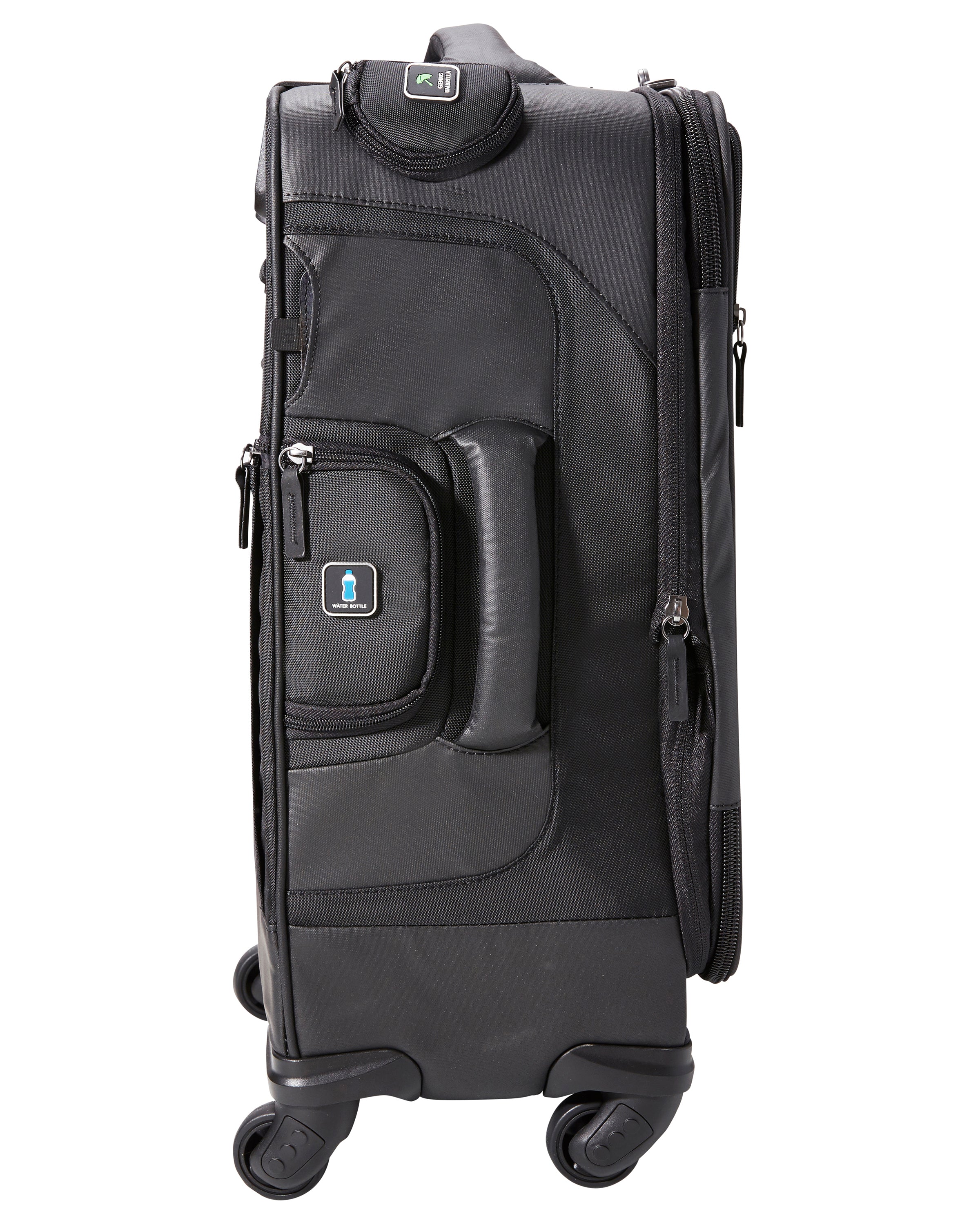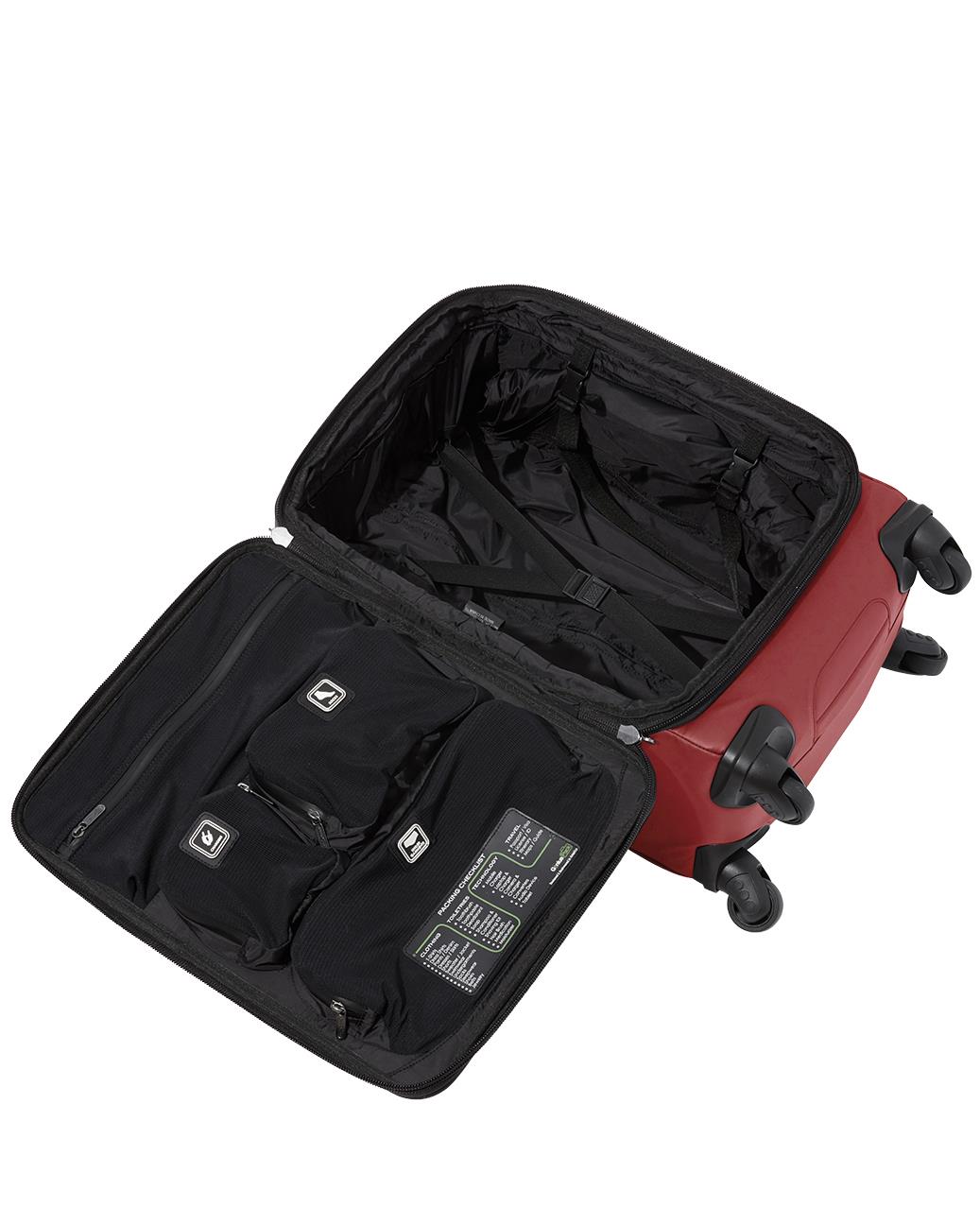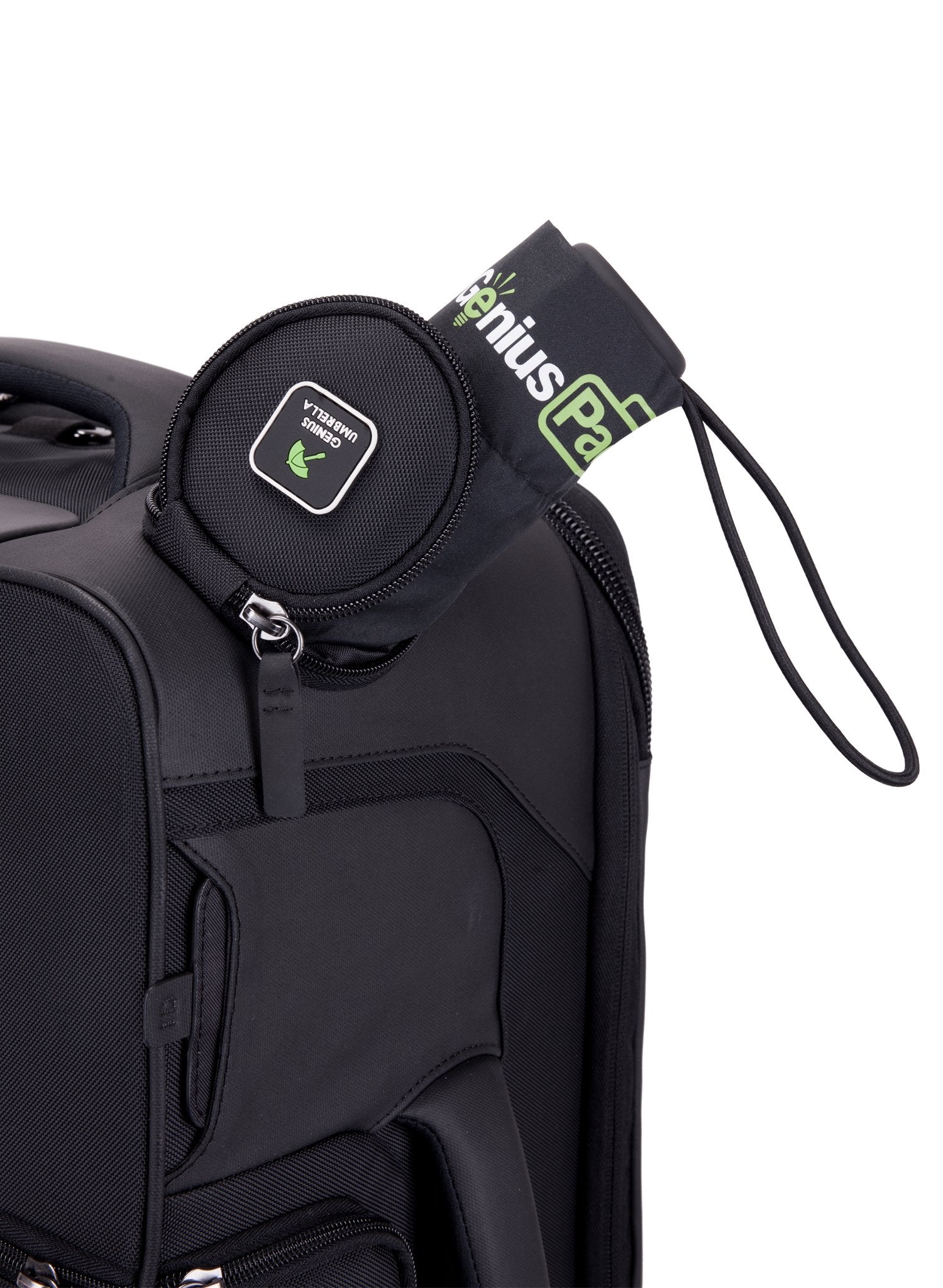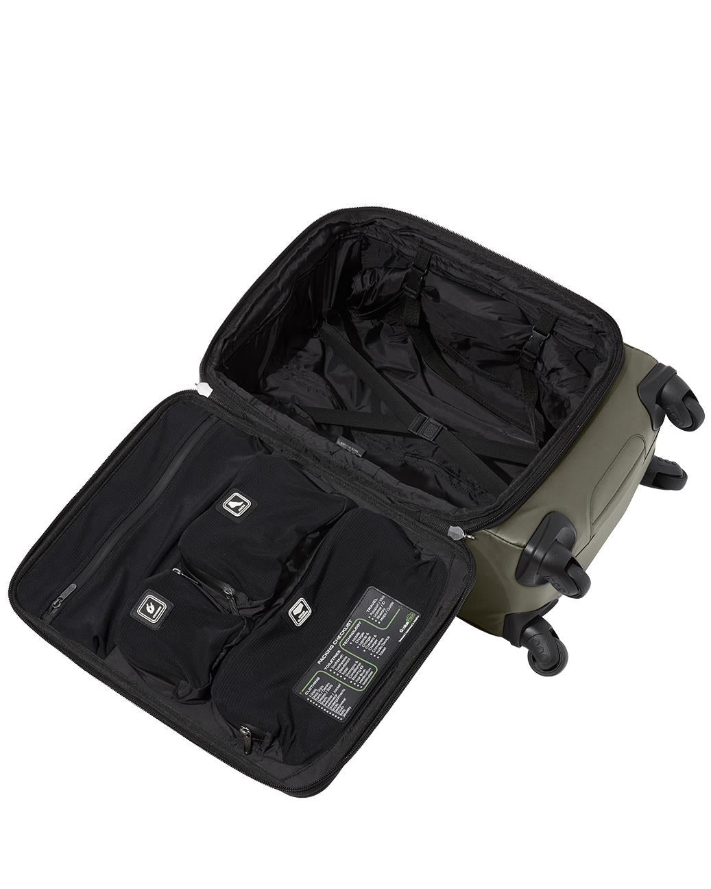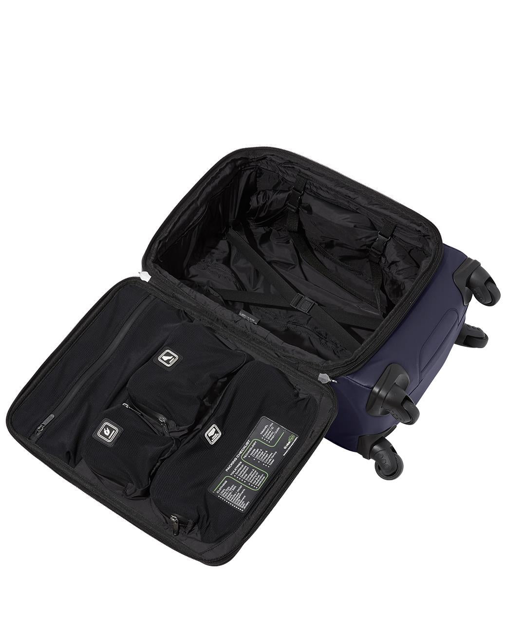 Titanium Meet the Carry On designed for extreme organization and convenience. Includes Genius Pack's patented Laundry Compression Technology, 360-degree frame-injected spinner wheels, internal category compartments- to name a few. The engineers behind this product made sure every step of the journey becomes hassle free. THE FEATURES Third generation model with numerous enhancements Voted best Carry On Bag by Travel & Leisure and Fodors Travel Patented Laundry Compression Technology keeps dirty clothes separate from clean Integrated air-valve expels air to condense clothing Laundry bag is removable. Just zip out and clean Designated compartments for Socks, Chargers, Undergarments Exterior pockets for water bottle, magazines, passport Integrate the GP Charger to recharge smartphone from bag (sold separately) Starts raining? Pop out the GP Micro Umbrella from top of case (sold separately) Permanently embedded checklist to ensure all essentials are packed Jacket wrap technology: Jacket straps onto bag while gliding in the airport Expandable: Zip to unleash 25% more packing space Includes add-a-bag strap to attach personal bag Retractable ID Card: Hides information. Pull tab to view or insert business card Maximum carry on allowance: Approved by major airlines. Never check another bag THE CRAFTSMANSHIP 360-degree frame-injected spinner wheels for a smooth roll High strength 840 denier ballistic nylon with polyurethane coated trims Durable honeycomb frame acts tough against mishandling 100% aluminum telescoping handle with 2 lock positions Memory foam-filled top and side handles for extra comfort Easy-grab bottom handle for overhead bin access Abrasion, UV & Water resistant 22 x 14 x 9 in. including wheels and handles / Capacity: 44 L / Extremely light. Just 7.8 lbs