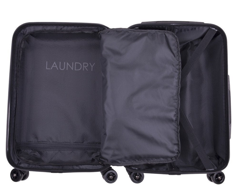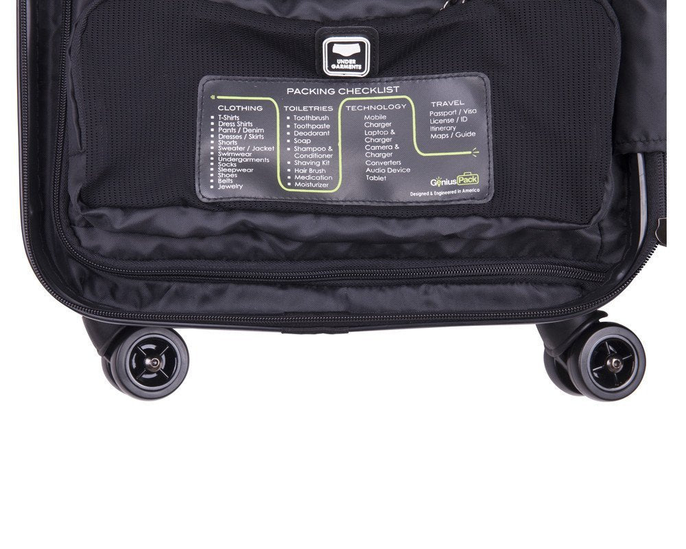 We designed this crush-proof luggage to infuse hardside design with our signature "genius" features. We're proud to release the first hardside luggage with an interior organizational panel. Extremely lightweight & durable. Roll 360 degrees with 8 silent-gliding spinner wheels. Click in the zipper pullers to the integrated combination lock. Interior panel engineered with designated category compartments, permanent packing checklist to ensure you packed it all, and secluded laundry compartment to keep your unclean clothes secluded. Relax & let your luggage do the work with this innovative hassle-free solution! If you're packing it- there's a spot for it.