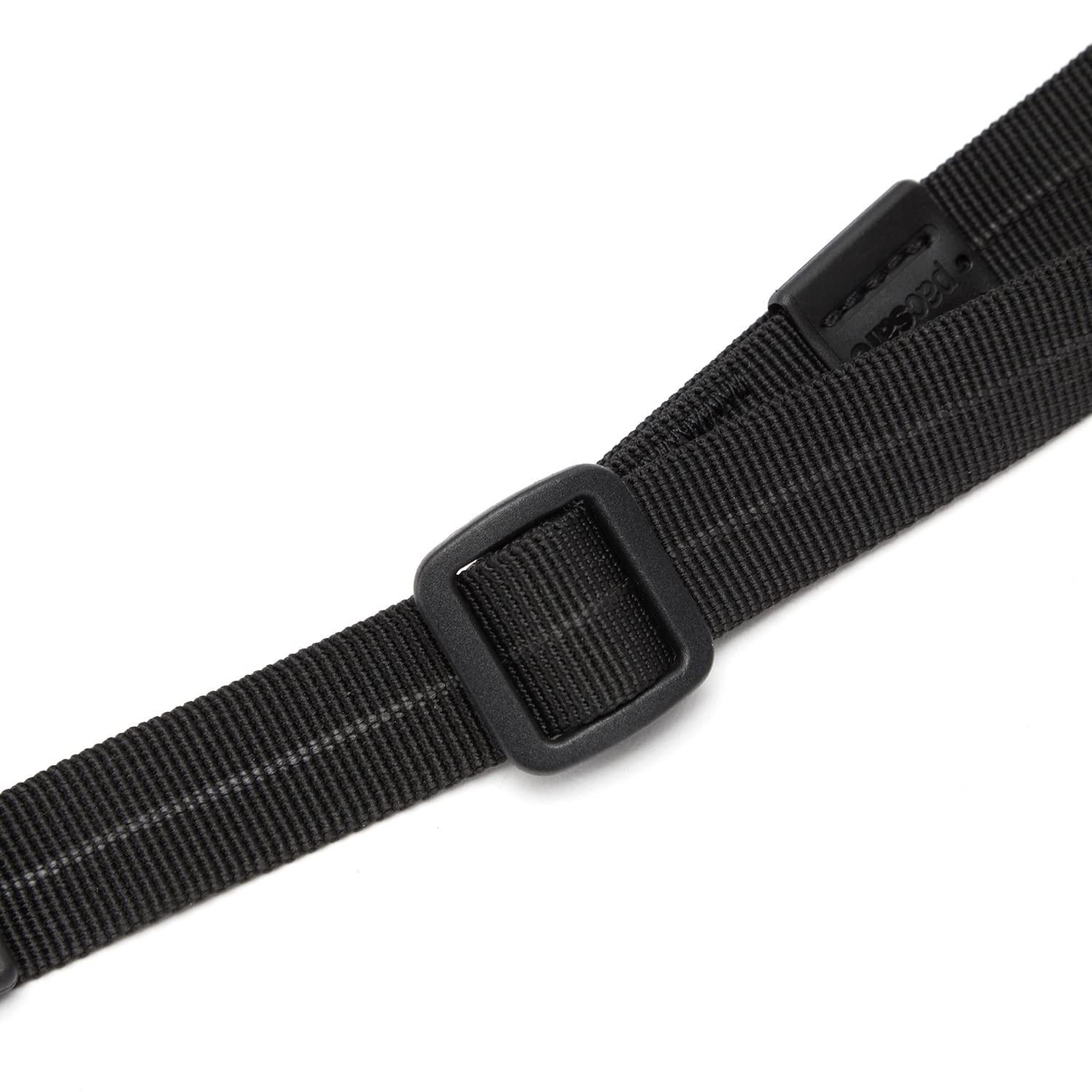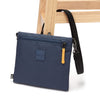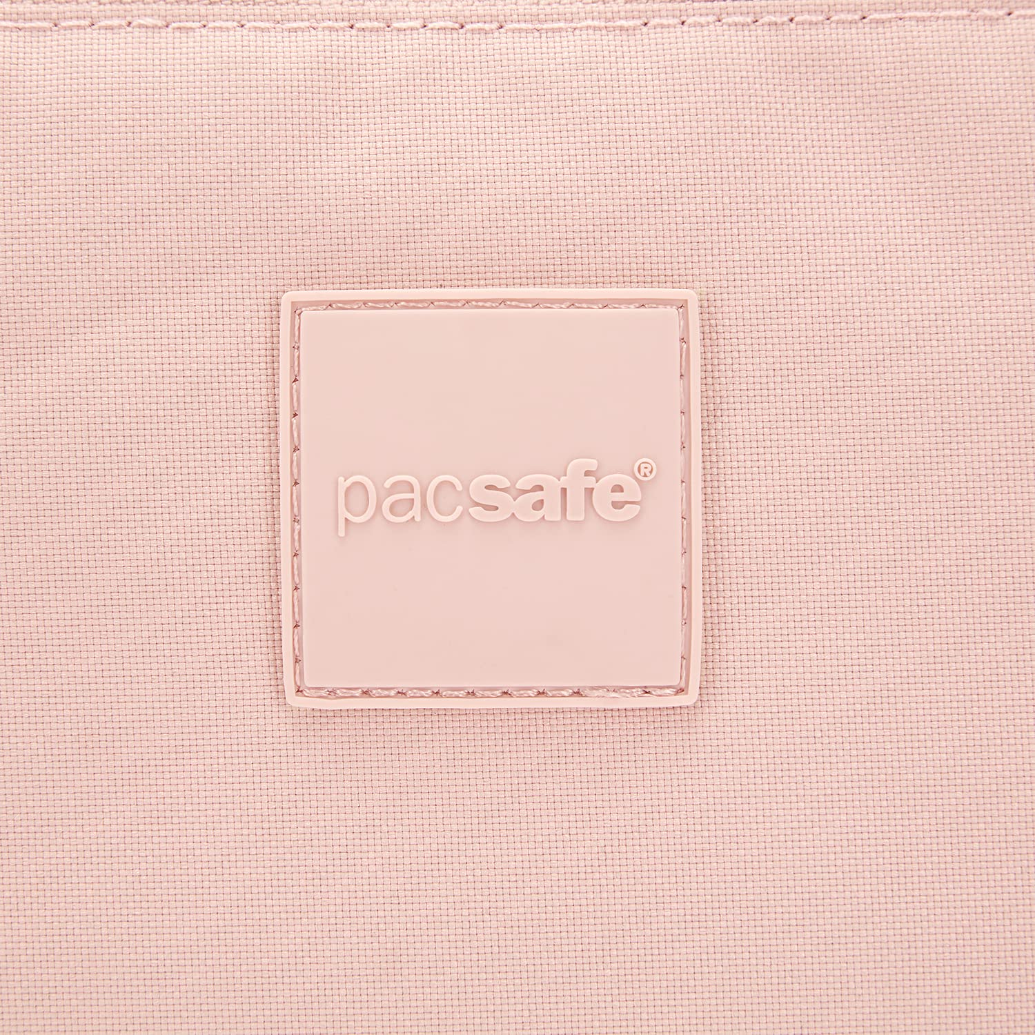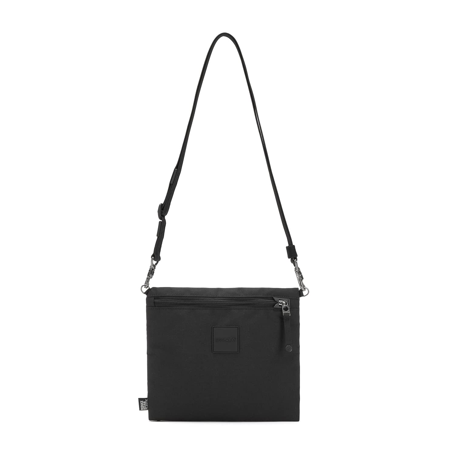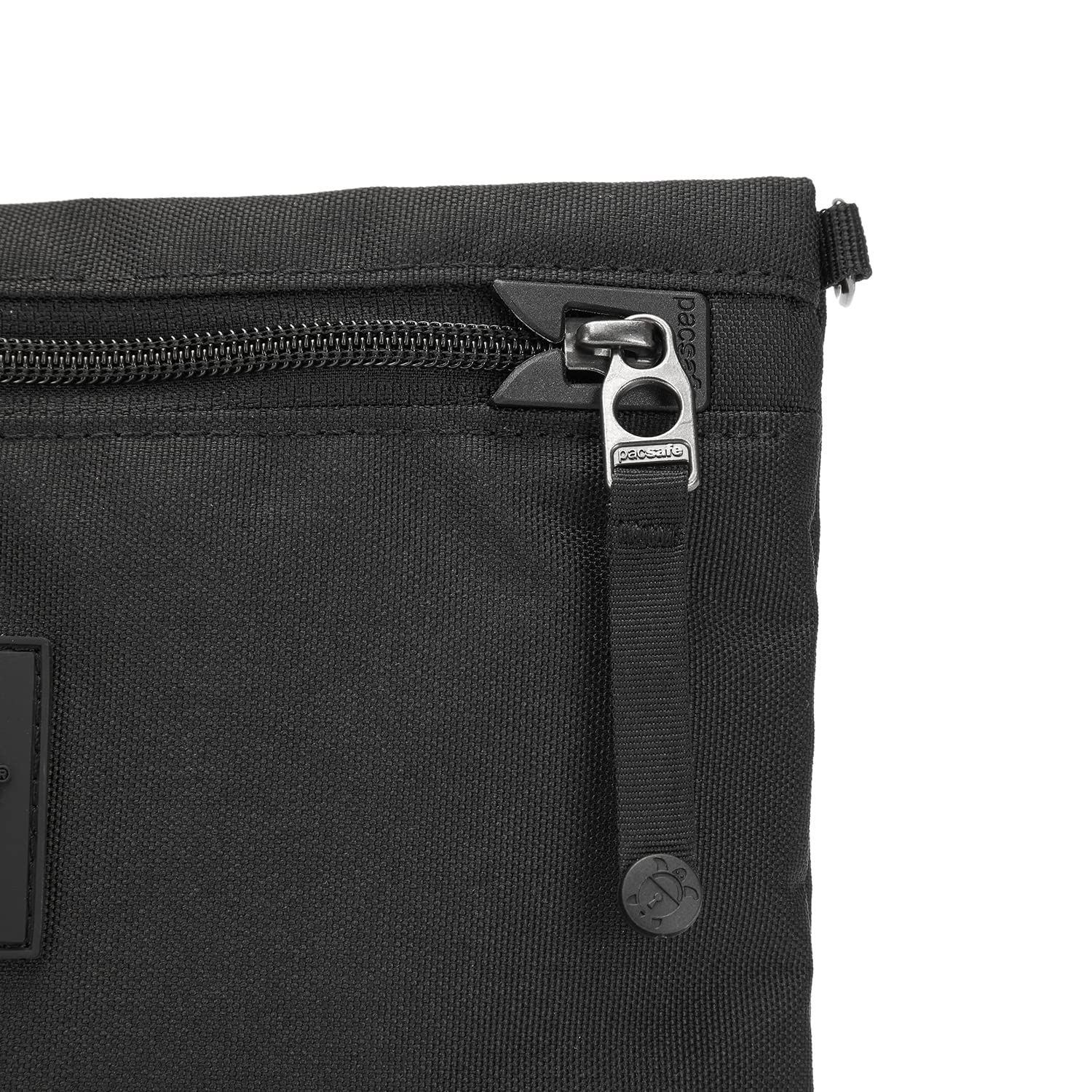• DIMENSIONS, MATERIAL & WARRANTY - 8.3"H x 9.5"W x .4"D Weight: .37 lbs. Made of soft, durable, water resistant & easy to wipe clean recycled Polyester to ensure secure & longlasting usage everyday & during weekends. Comes with a 5-year Pacsafe warranty.