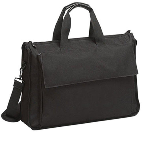 4302 Features: -600d Poly lightweight and compact. -Full organizer beneath thefront flap, with space for a memory stick, phone, PDA. -Design gives this bagmodern style and functionality. -Main compartment is padded and lined, with anadjustable strap to secure your laptop. -Exterior has a removable, adjustableshoulder strap, dual carry handles. -Strap on the back that allows that bag tofit over the pull-out handle of your luggage. Product Type: -Briefcase. Color:-Black. Primary Material: -Fabric. Top Loading: -Yes. Laptop Compatible: -Yes.Closure Type: -Flap closure. Gender: -Men's. Maximum Laptop Size: -17".Removable Shoulder Strap: -Yes. Dimensions: Overall Height - Top to Bottom:-12.5". Overall Width - Side to Side: -17". Overall Depth - Front to Back:-3.5". Strap Length: -50". Overall Product Weight: -3 lbs.