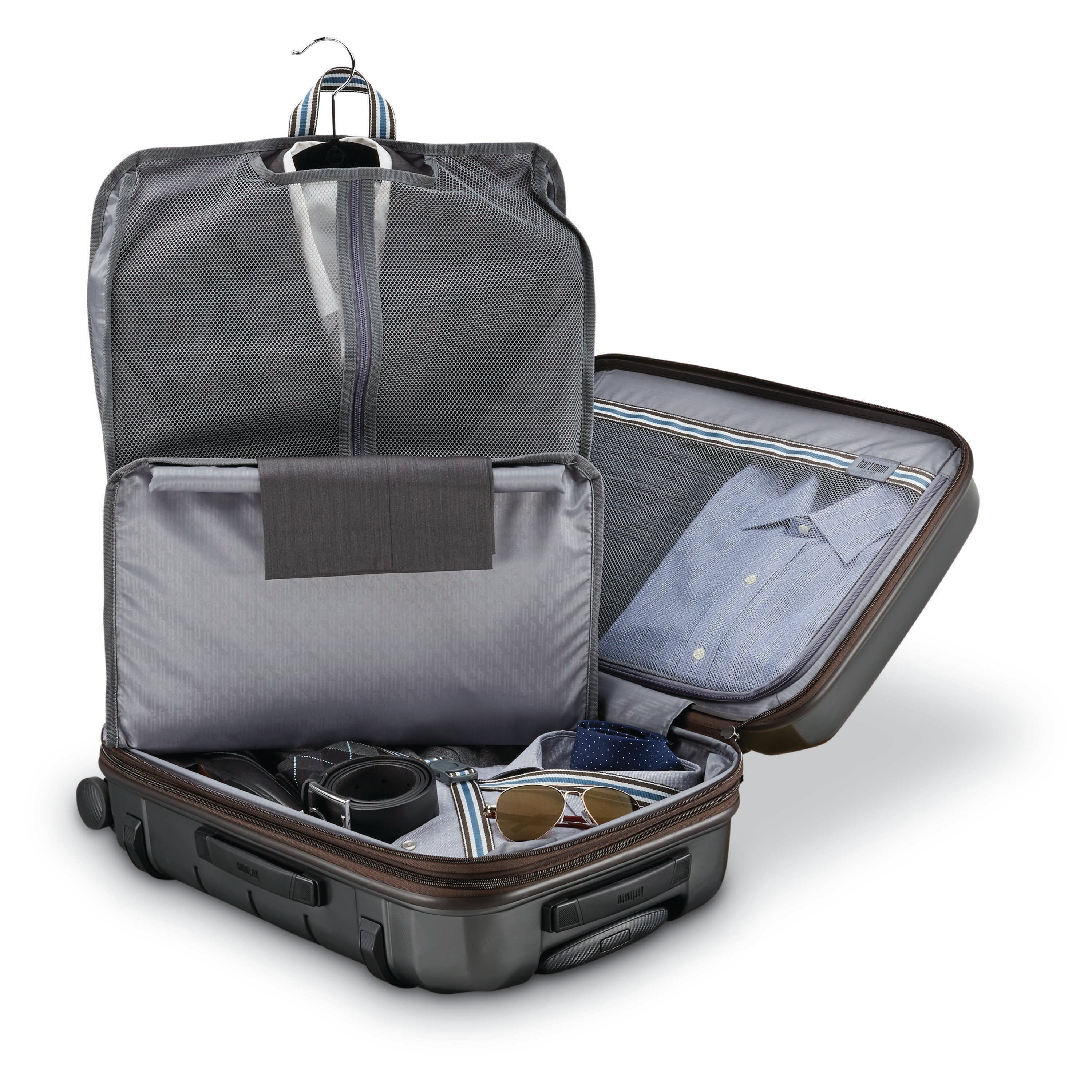 The Century Hardside Carry-On Expandable Spinner is a generously-sized wheeled carry-on, perfect for domestic travel and short trips of a day or two. Because your carry-on is your most frequently-used piece of luggage, you deserve a piece that reflects your sophisticated style, with a level of quality that responds seamlessly to your touch every time. A removable trifold suiter makes it easy to transport hanging clothes from home to plane to hotel closet, wrinkle-free. Classic Ducord striping, lustrous interior lining, and a TSA-approved integrated lock complete the array of features you expect from quality high-end luggage. Because you deserve a packing and travel experience that feels like luxury, no matter where your travels take you.