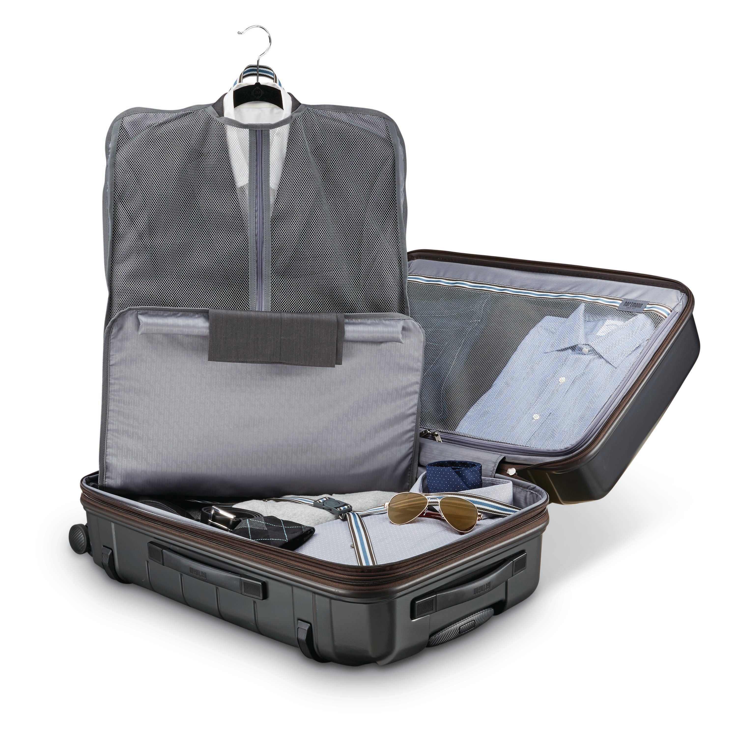 The Century Hardside Carry-On Expandable Spinner is a generously-sized wheeled carry-on, perfect for domestic travel and short trips of a day or two. Because your carry-on is your most frequently-used piece of luggage, you deserve a piece that reflects your sophisticated style, with a level of quality that responds seamlessly to your touch every time. A removable trifold suiter makes it easy to transport hanging clothes from home to plane to hotel closet, wrinkle-free. Classic Ducord striping, lustrous interior lining, and a TSA-approved integrated lock complete the array of features you expect from quality high-end luggage. Because you deserve a packing and travel experience that feels like luxury, no matter where your travels take you.