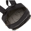 - Padded and adjustable shoulder straps with leather trim. Top carry handle. One external slip pocket, three external zip pockets, and one zip pouch. Nylon lining. Internal organization includes a zip pocket. Flat bottom base. Imported. Measurements: Bottom Width: 9 12 in Depth: 5 in Height: 12 12 in Strap Length: 24 12 in Strap Drop: 10 in Handle Length: 7 in Handle Drop: 2 12 in Weight: 14 oz