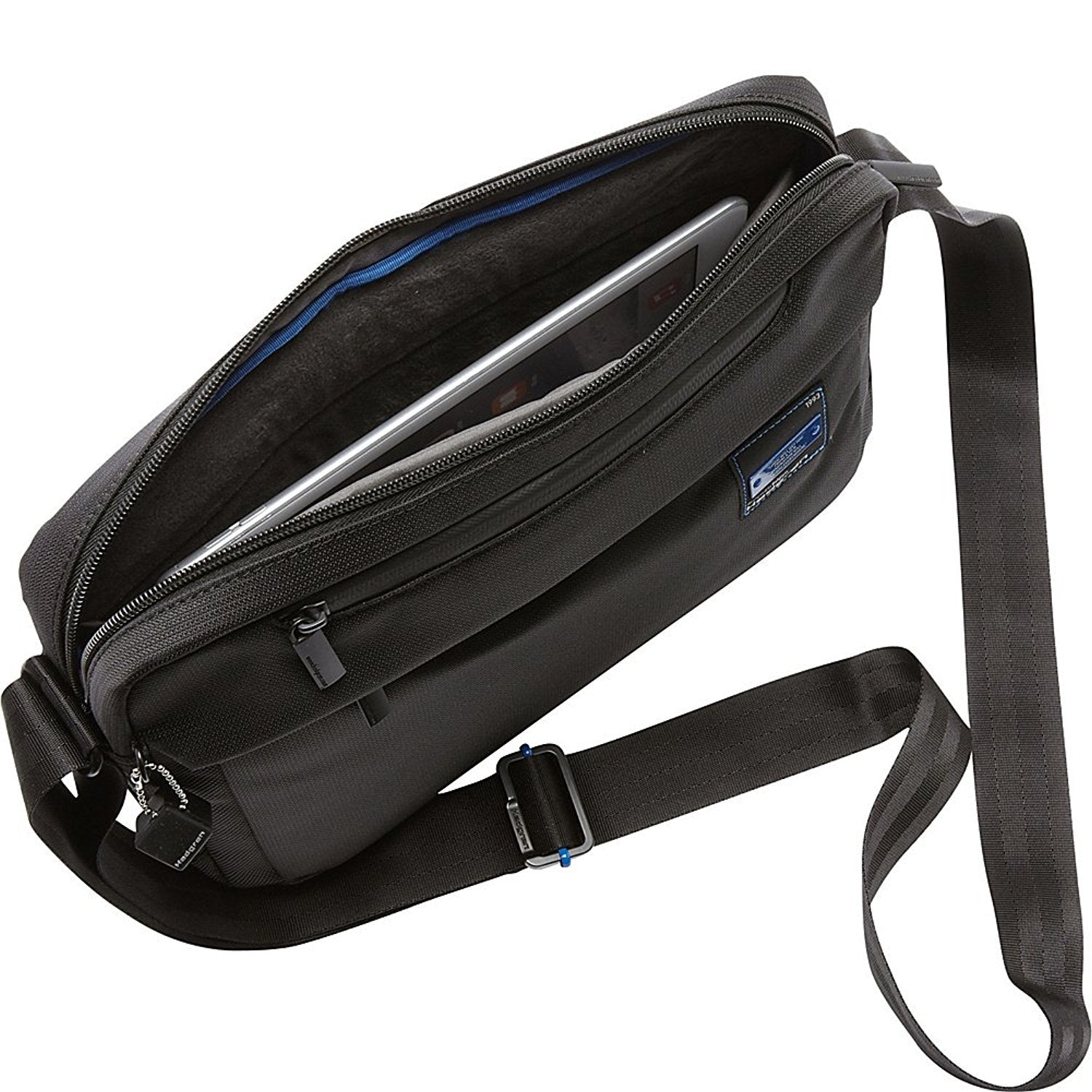 The Fulton horizontal shoulder bag makes it easy to carry your essentials. It has adjustable shoulder straps, 3 zipper pockets and fits a tablet