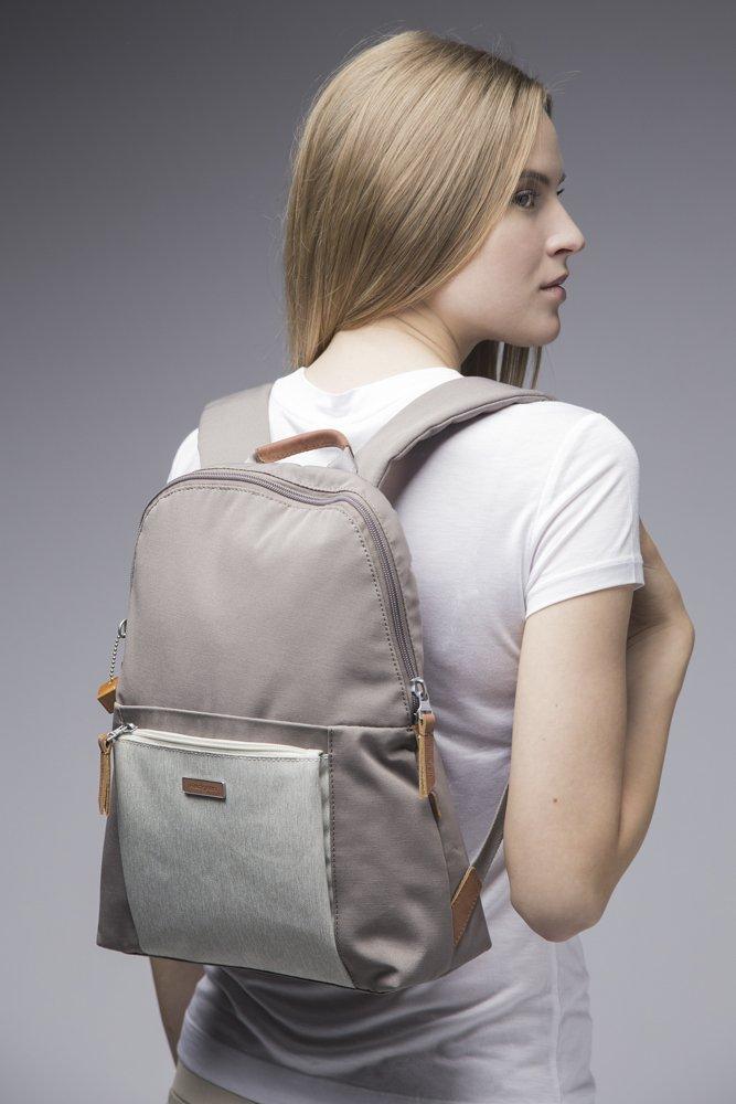 Color:Periscope Stylish backpack with leather accents lots of pockets