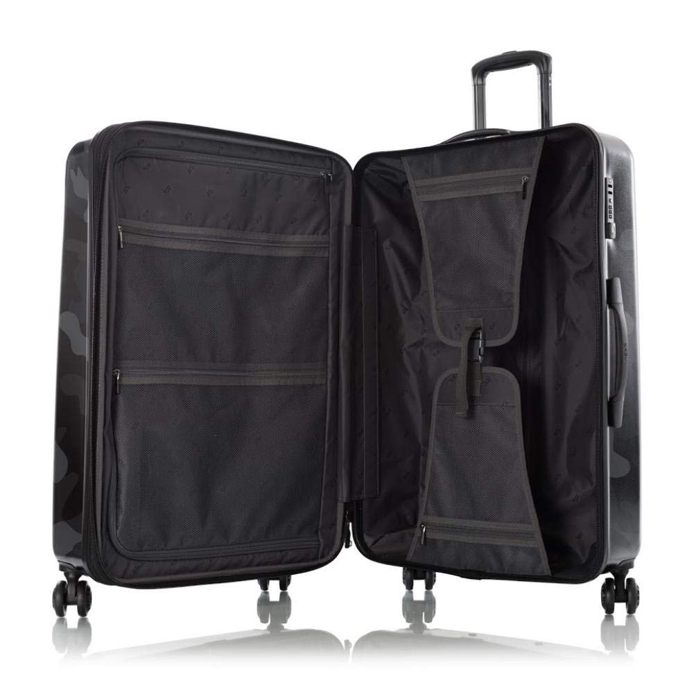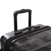 Color:Black The Black Camo luggage is lightweight, durable, and scratchresistant. The luggage has a fully lined interior with multiple zipperedpockets for easy organization. The Black Camo luggage features a gel cushionedtop and side handles as well as 360-degree spinner wheels for easymaneuverability.