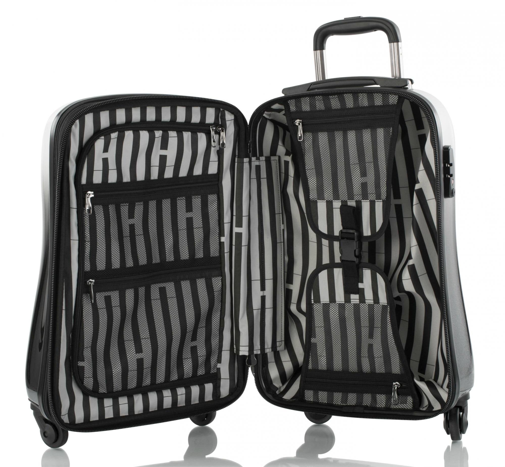 Be a fashionable globetrotter with the Heys new Fashion Spinners? with print designs that reflect the latest runway trends. This sophisticated new style is the next generation of Heys popular ?Fashion Spinners?? luggage ? it?s been completely redesigned from the ground up with all-new features!