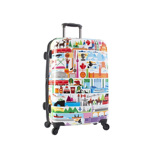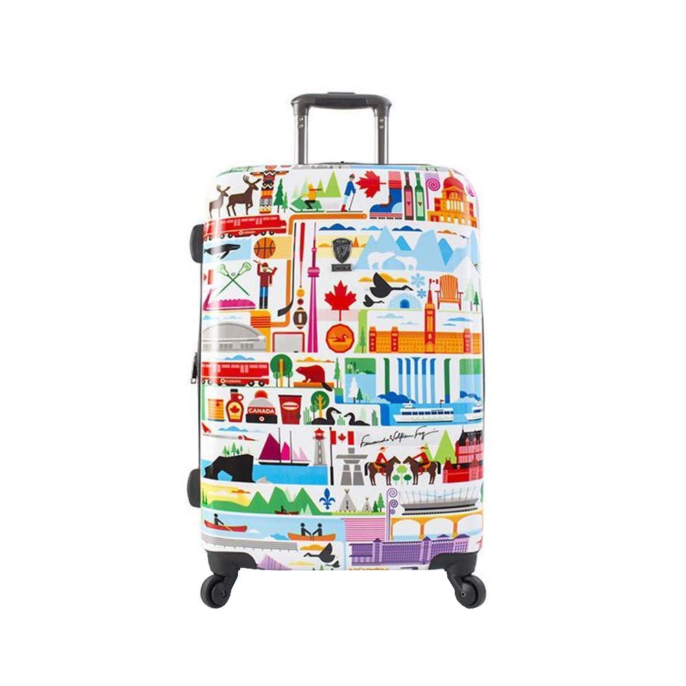 The FVT - Canada Spinners are part of a Limited Edition Series of luggage created by renowned digital artist Fernando Volken Togni. Fernando is a Brazilian-born illustrator who currently lives and works in London. His intricate compositions and bold use of colour are influenced by the observation of details and daily life. Through vivid colours and sharp shapes Fernando forms an eye catching organized chaos. Inspired by icons and landmarks unique to Canada, the FVT ? Canada Spinners adds a flair of Canadian pride to your luggage and will not go unnoticed. Take Canada with you wherever you go, the artwork has been uniquely designed to represent and celebrate Canada as a nation. The vibrant luggage prints are protected by a layer of clear coat which also gives it a beautiful glossy shine.