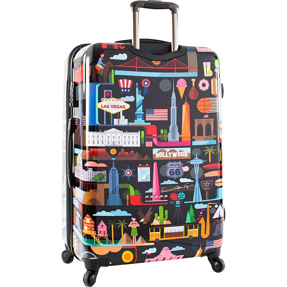 The FVT - Canada Spinners are part of a Limited Edition Series of luggage created by renowned digital artist Fernando Volken Togni. Fernando is a Brazilian-born illustrator who currently lives and works in London. His intricate compositions and bold use of colour are influenced by the observation of details and daily life. Through vivid colours and sharp shapes Fernando forms an eye catching organized chaos. Inspired by icons and landmarks unique to Canada, the FVT ? Canada Spinners adds a flair of Canadian pride to your luggage and will not go unnoticed. Take Canada with you wherever you go, the artwork has been uniquely designed to represent and celebrate Canada as a nation. The vibrant luggage prints are protected by a layer of clear coat which also gives it a beautiful glossy shine.