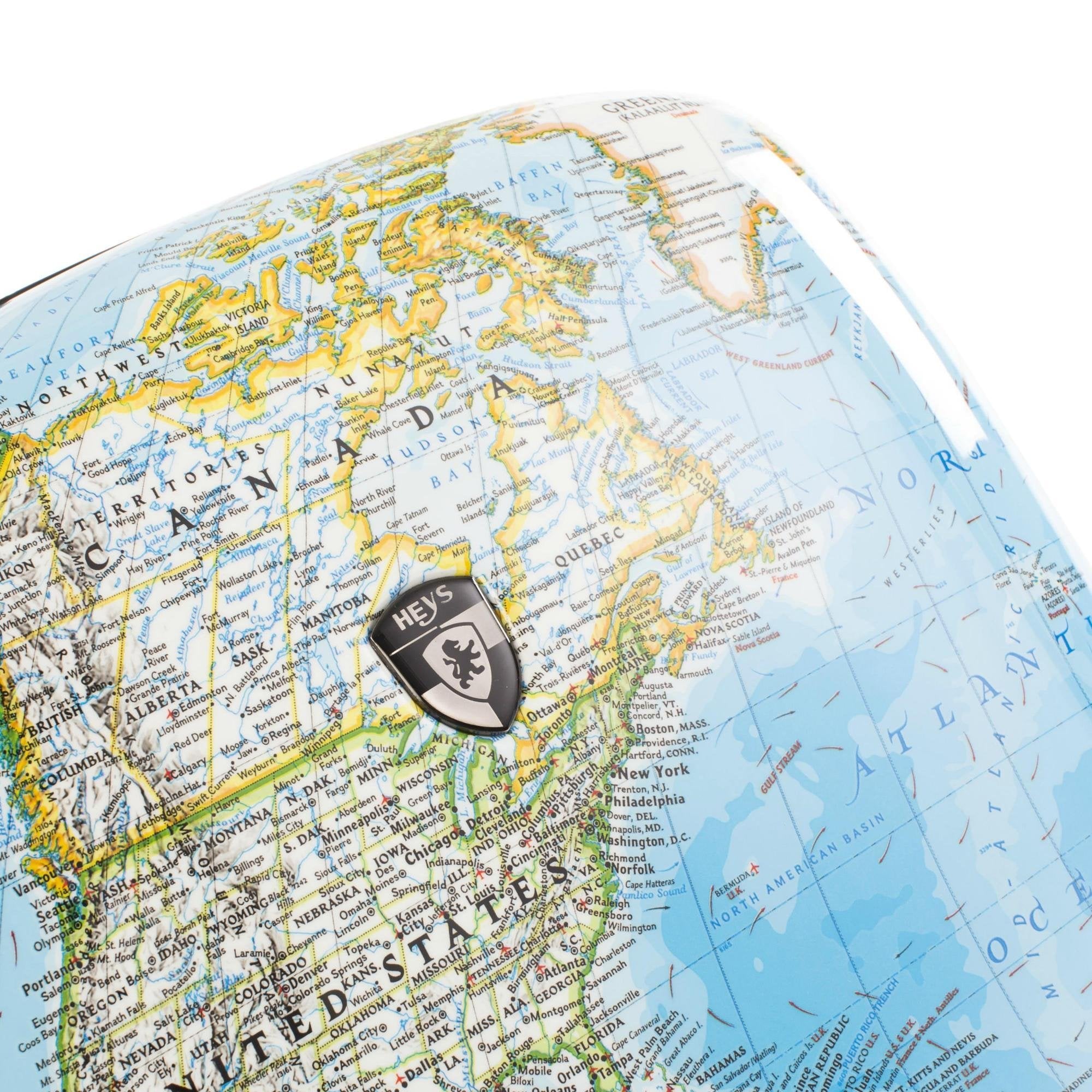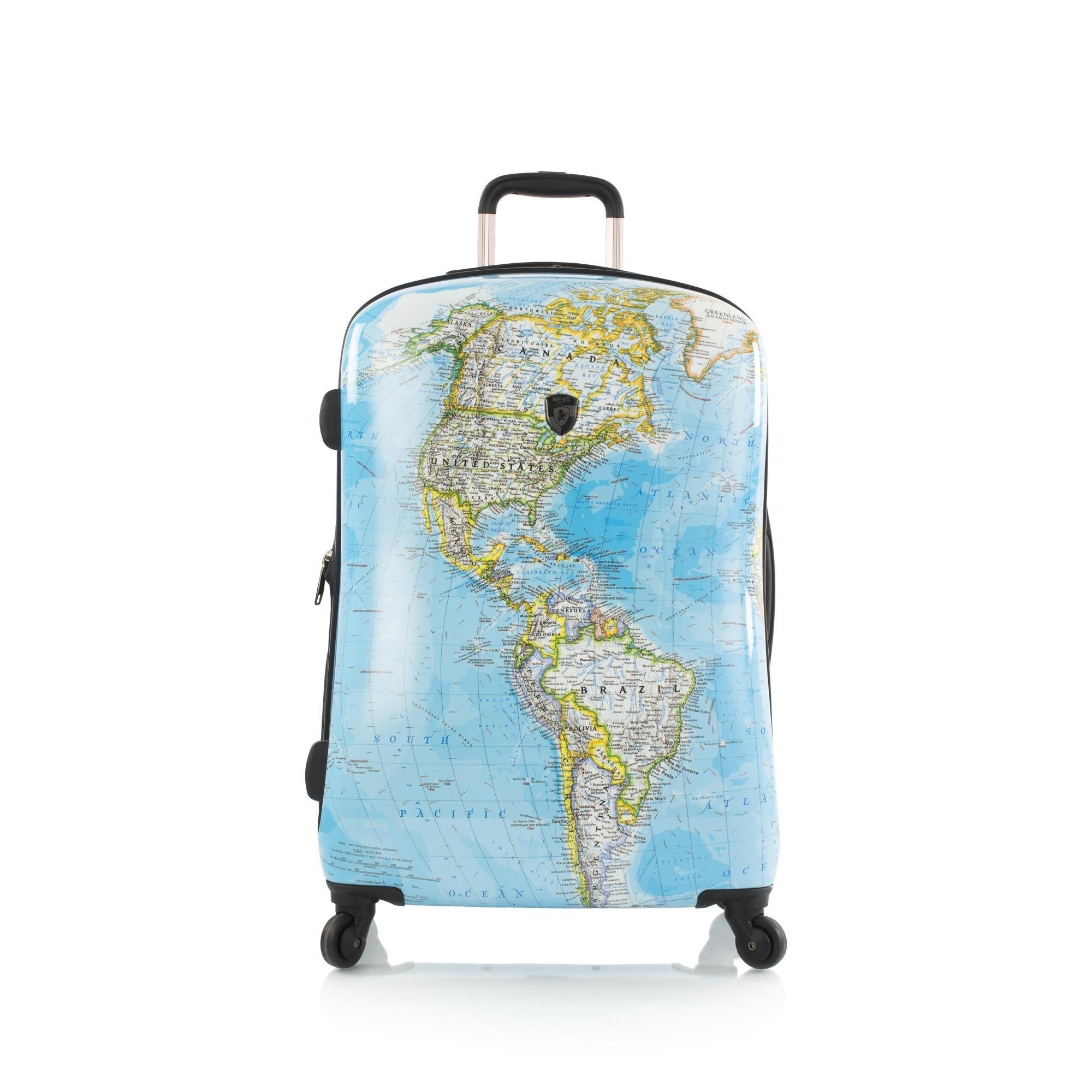 The world is our oyster, travel in confidence with the Heys America Journey21" Spinner at your side. Crafted with durable polycarbonate composite. Eachof the three sizes have been designed to showcase different parts of the worldand when put side by side, the entire set combines to form the entire worldmap. This print is protected by a layer of glossy clear coat which gives itits brilliant shine as well as improved scratch and scuff protection. Toprovide more protection, a travel bag is included to keep it looking like newfor many more journeys to come. Internal handle system made from lightweightaluminum. Top and side carry handles allows you to easily move your luggage,or hand carry. Interior features a compression strap, two mesh zipcompartments, and a zip divide. Zipper expansion for extra room. Built-in TSAlocks. 360 degree spinner wheels. Imported. Dimensions: 21" x 13.5" x9"Weight: 6.2 lbs Measurements: Width: 13 in Depth: 8 in Height: 21 in Weight:10 lbs 12.8 oz