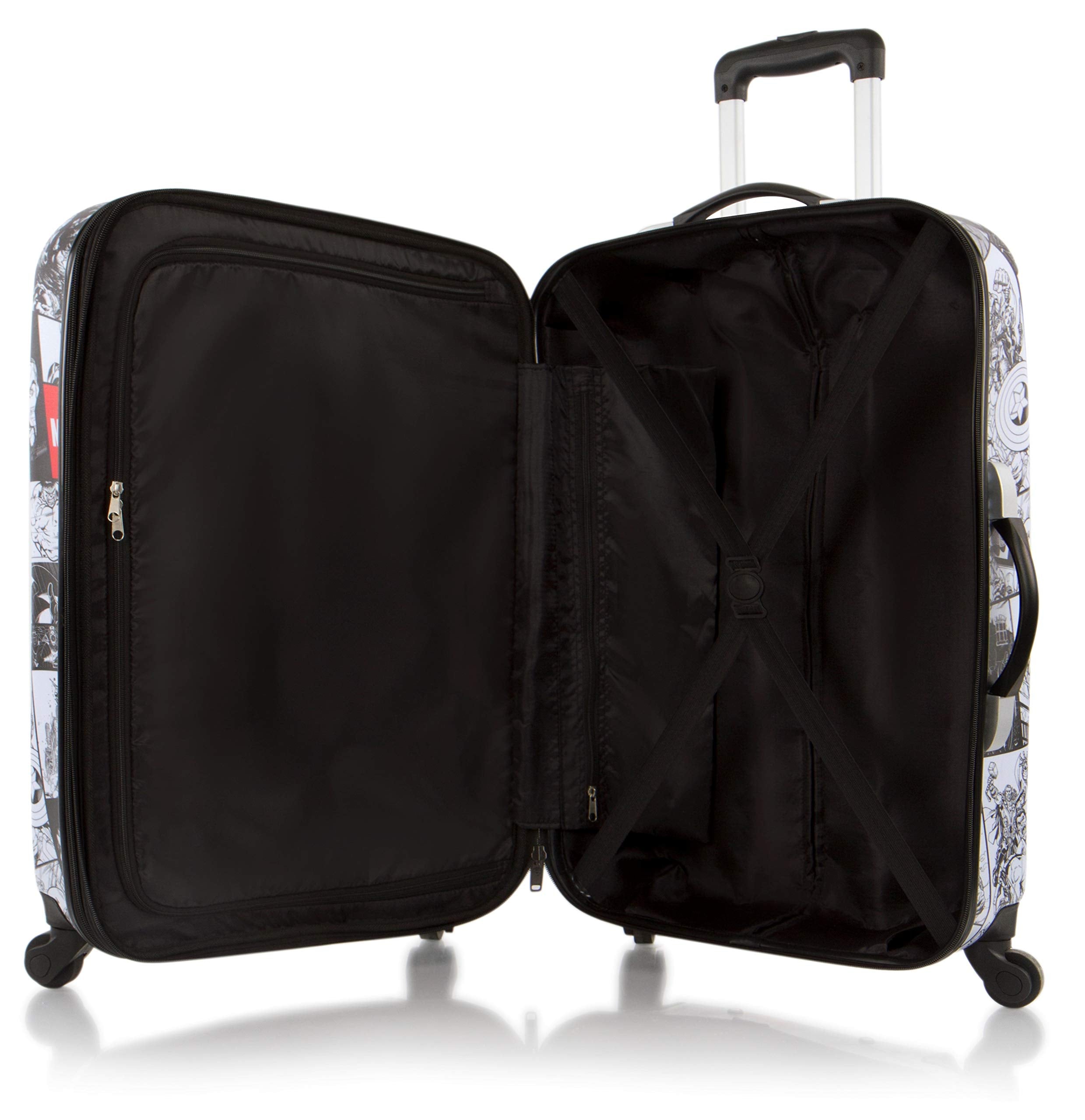 The Heys Captain America 21" Spinner aims to strike a balance between style,function and endurance. Traveling can be that much cooler with a reliablecompanion in hand. The case features a zipper release expansion system thatincreases up to 20% more packing space. Incredibly lightweight with ultrasmooth 360ƒ spinner wheels, these designs are stylish without sacrificingfunction.