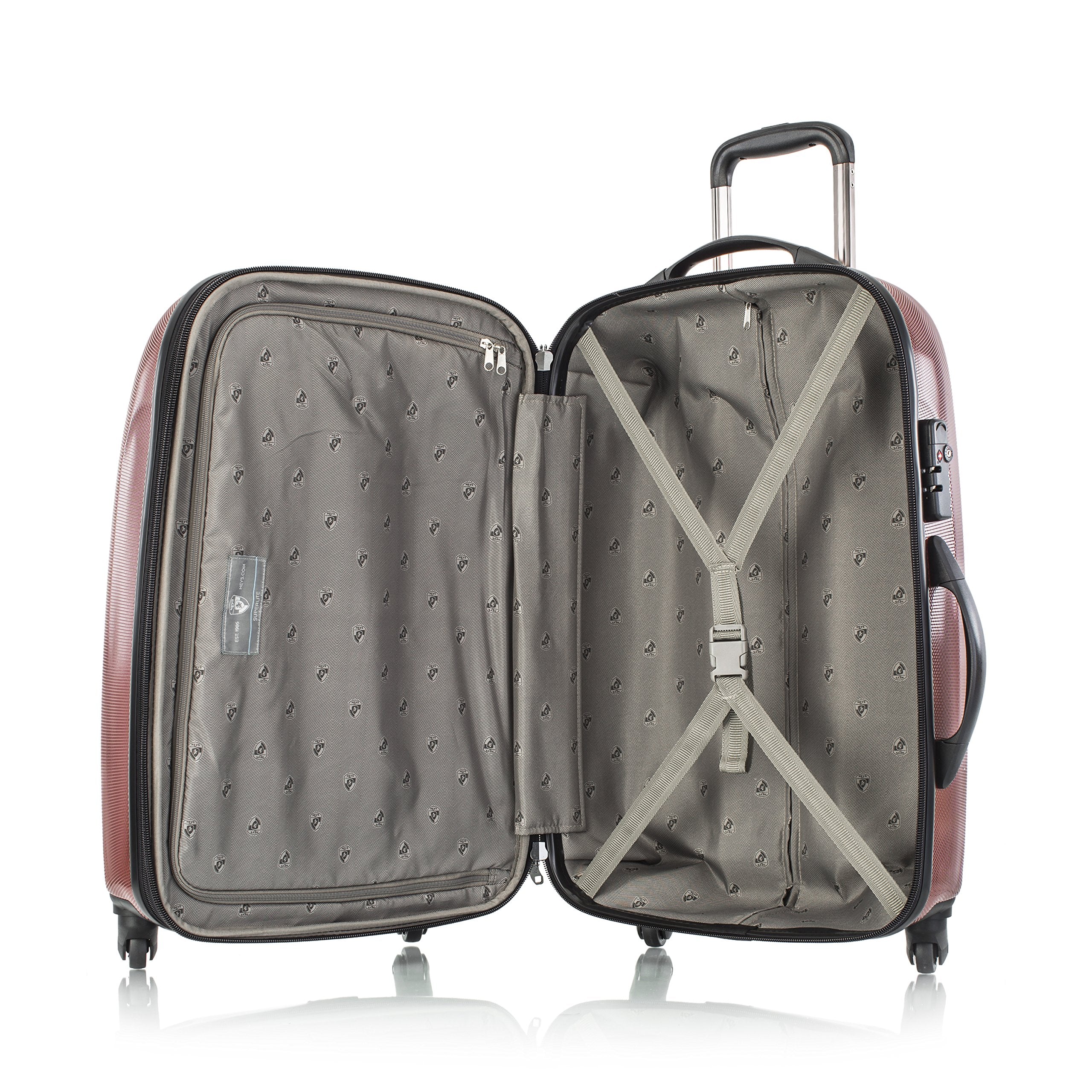 Size:One Size | Color:Burgundy The SuperLite embodies one of our lightesthardside luggage sets ever! With the innovative combination of 100%Polycarbonate and lightweight components, Heys has once again created anincredibly lightweight design with uncompromising durability andfunctionality. Polycarbonate has been specifically designed for use in luggagedue to its high impact resistance and exceptional strength properties. It isstrong and rigid enough to withstand severe impacts, but agile enough to flexand maintain its structural integrity. To help prevent surface scratches andscuff marks, a new cubic emboss texture has been applied to the SuperLite'sexterior giving it unique surface finish. The SuperLite's spinner wheelsspread the load weight evenly while allowing for effortless motion indifferent terrains. The fully lined interior features a buckled compressionstrap as well as a zippered divider to help keep you organized whiletravelling. It has a push-button telescopic handle system with multi-stagelocking heights, and comes with a zippered expansion system allowing for anextra 20% in packing capacity. The SuperLite offers incredible strength,durability, functionality and lightweight properties altogether. Available ina 3 pc set.