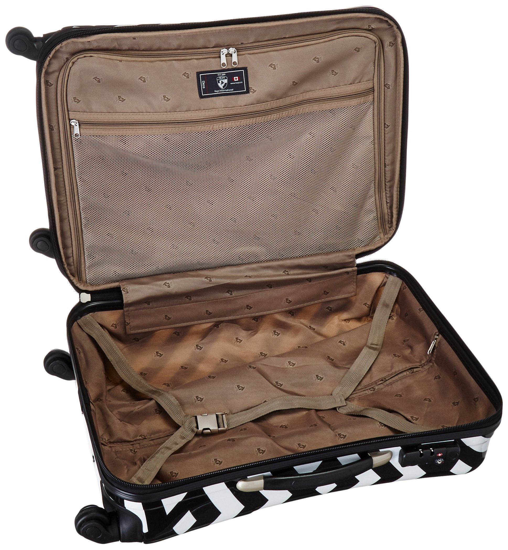 Top and side carry handles allows you to lift the case with ease. Built-in TSALock. Expansion zipper option allows for 20% more space. Zip closure. Fully-lined interior features a compression strap, one large mesh zip compartments,and a zip divide. Four wheel 360 spinner system spreads the weight for even,effortless rolling.
