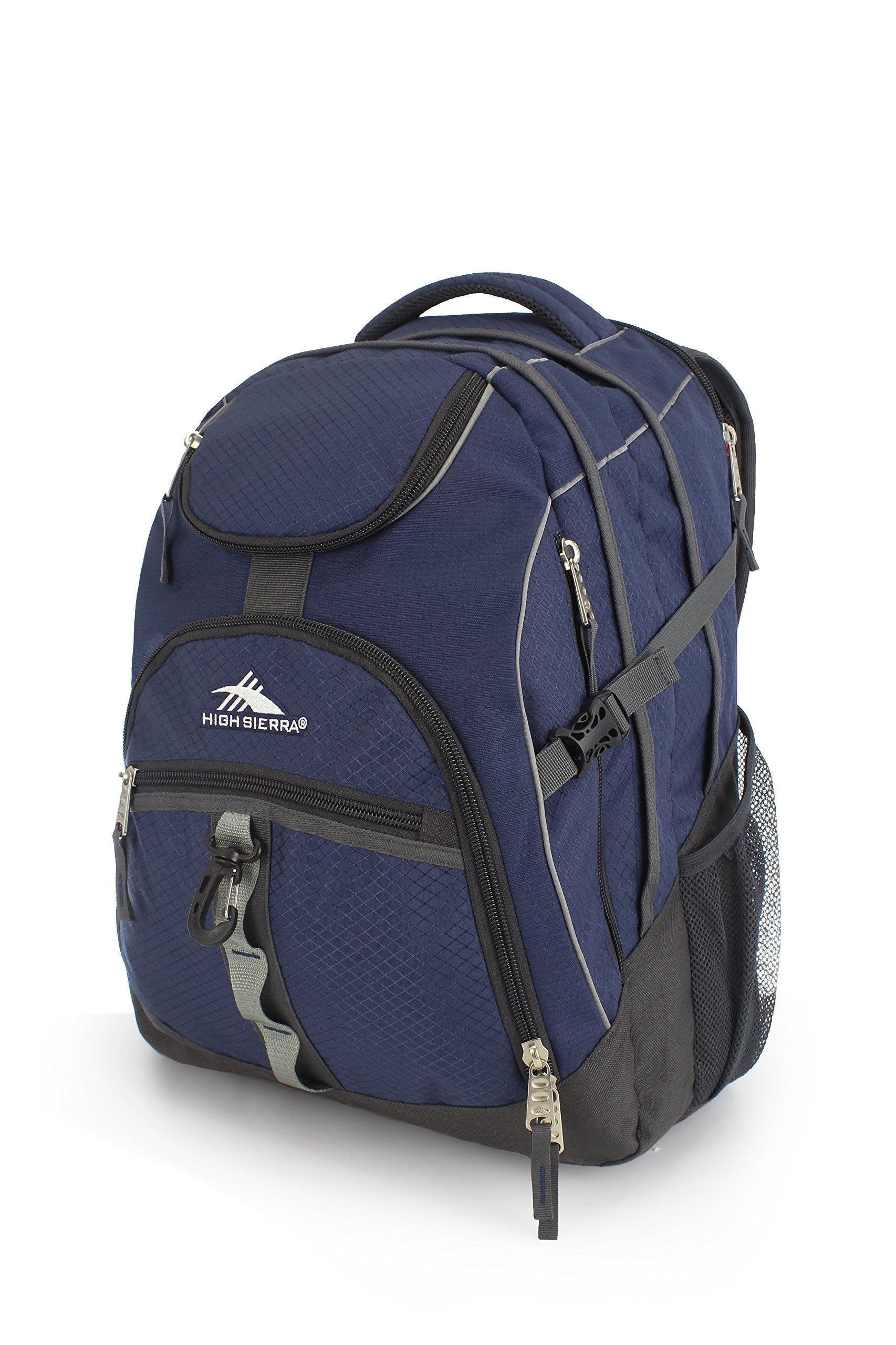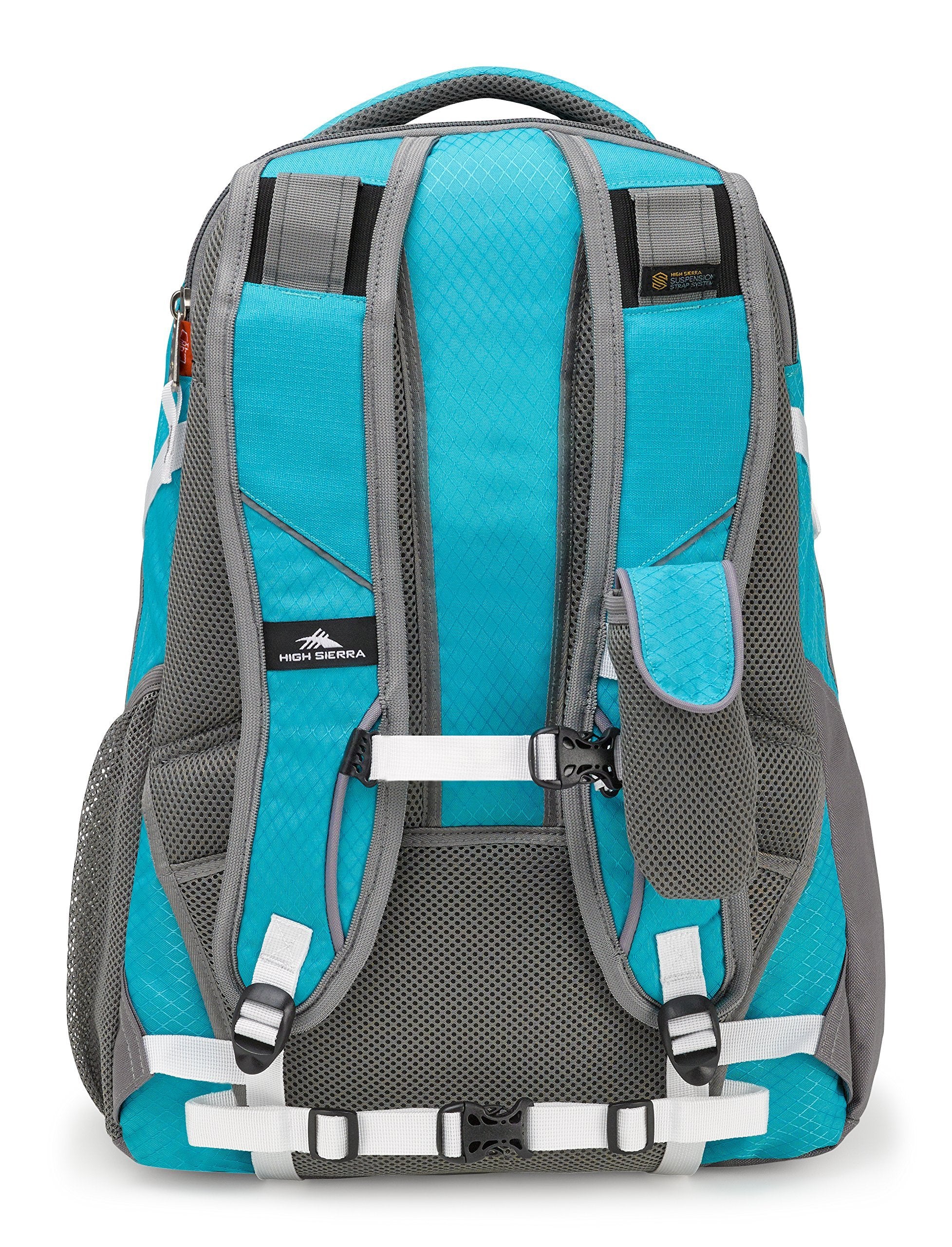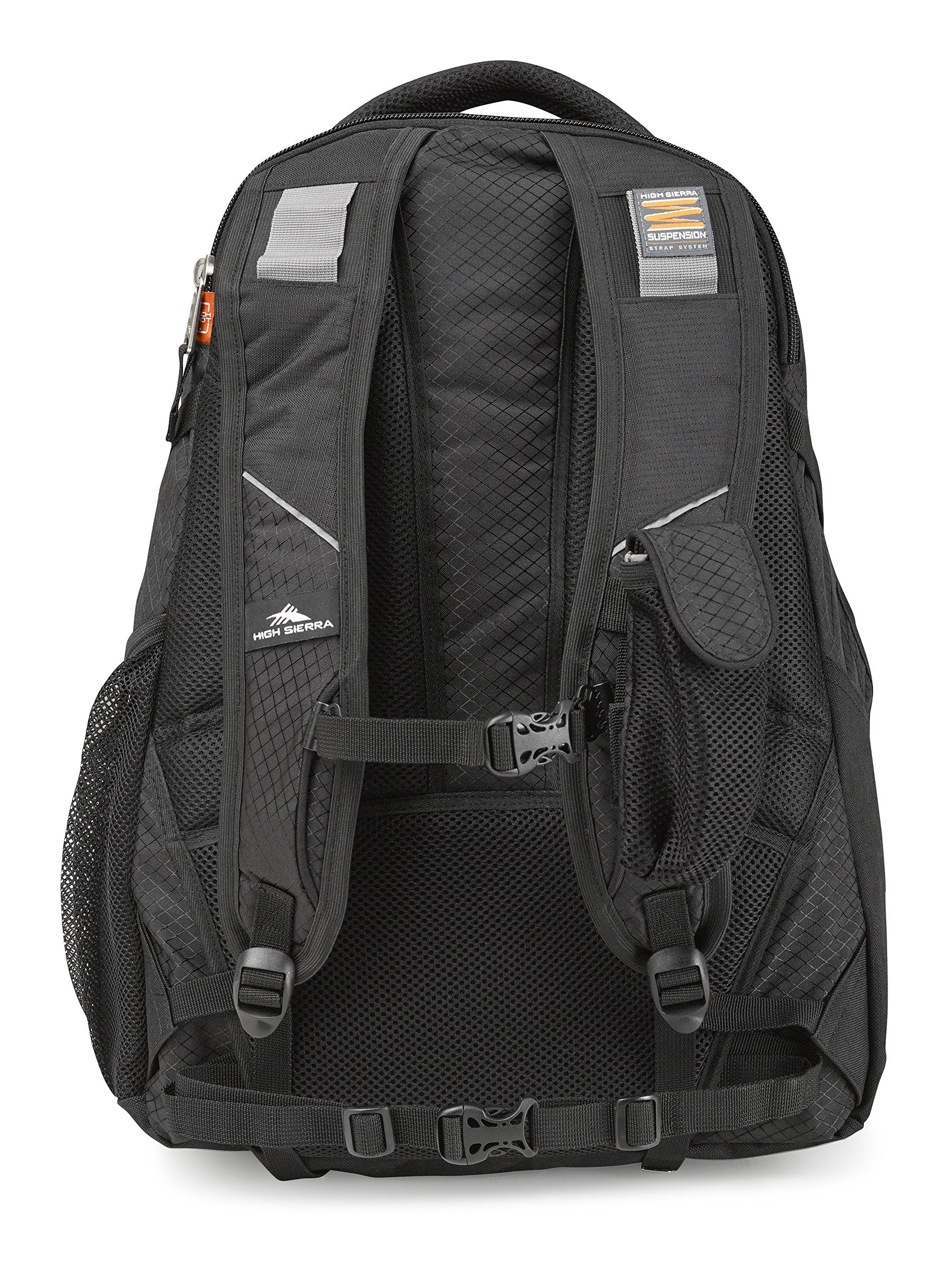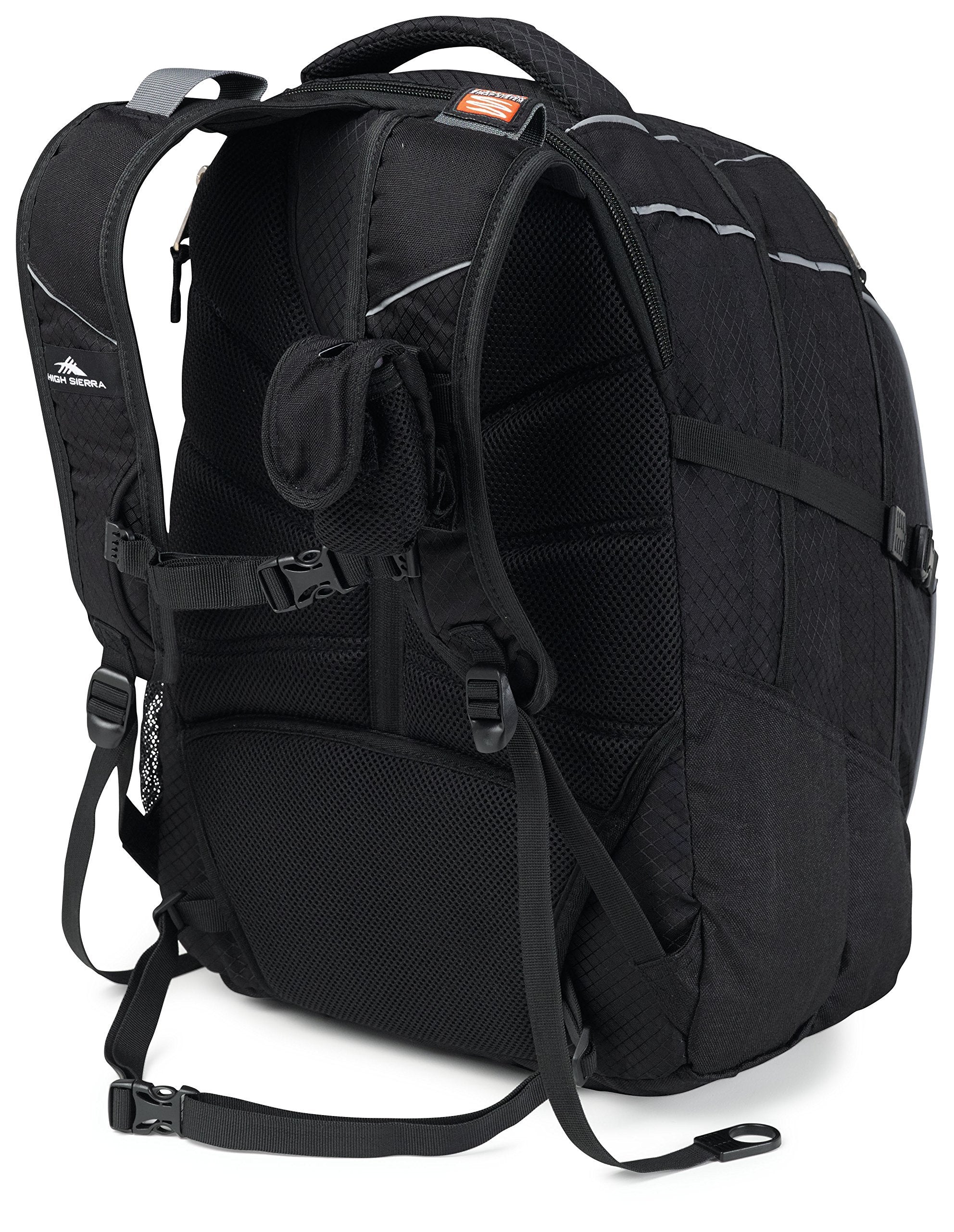 The High Sierra Access laptop backpack is the perfect blend of functionalityand durability. Its VAPEL mesh AIRFLOW padded straps and a sternum strap letyou travel comfortably. You can enjoy music on the go, as this travel laptopbackpack features a CD pocket with a headphone port. This water resistantlaptop backpack features multiple compartments and front pockets to help youstore your belongings neatly. It has an exterior daisy chain webbing to attachaccessories for a personalized look. During hiking, you can also keep thebackpack stable with the tuck-away waist belt on the back panel.