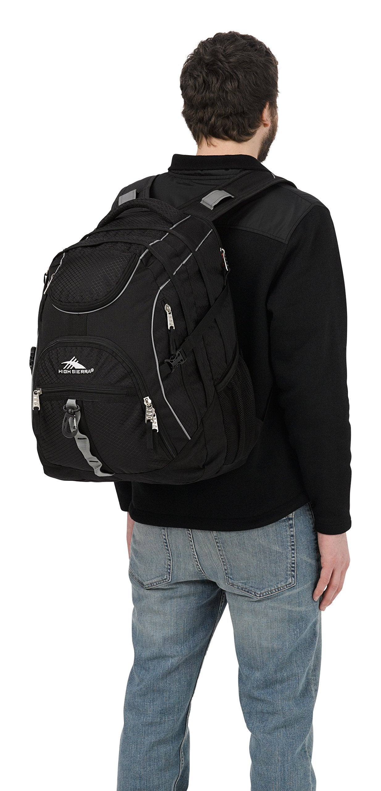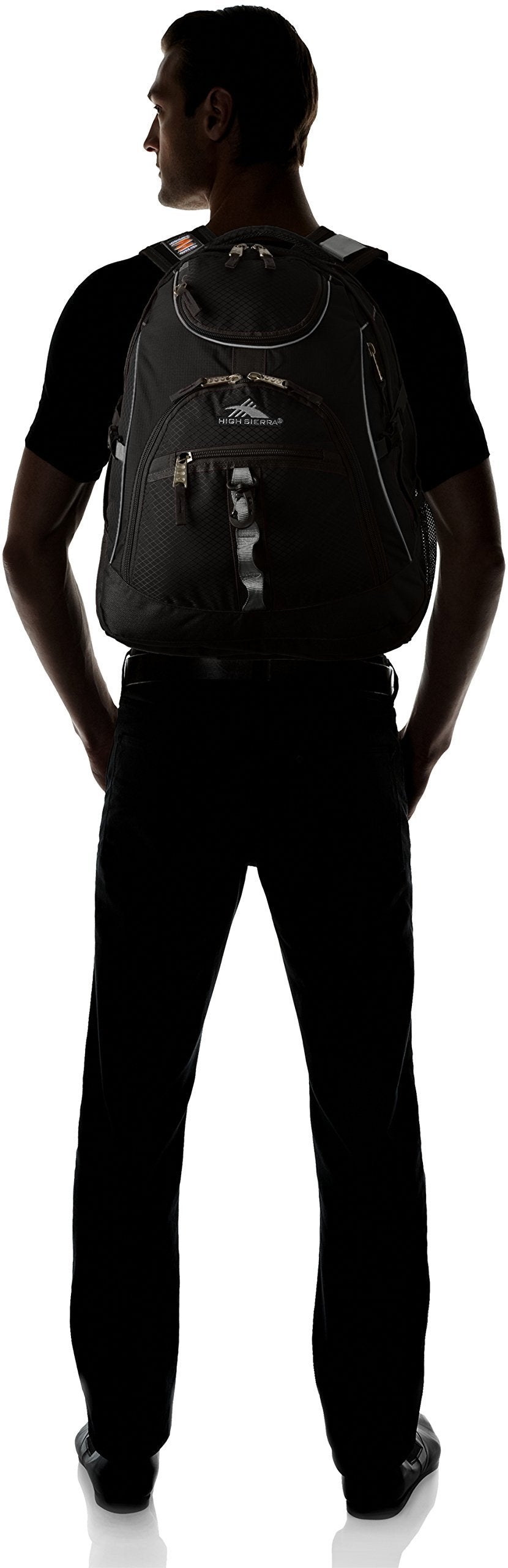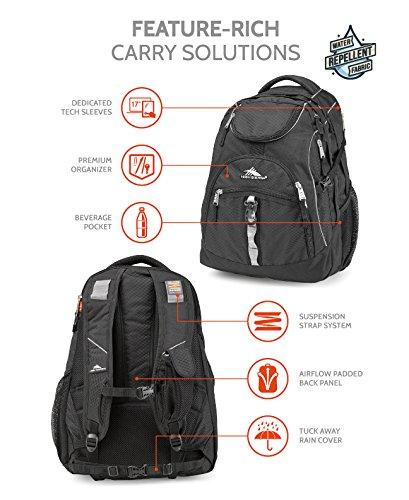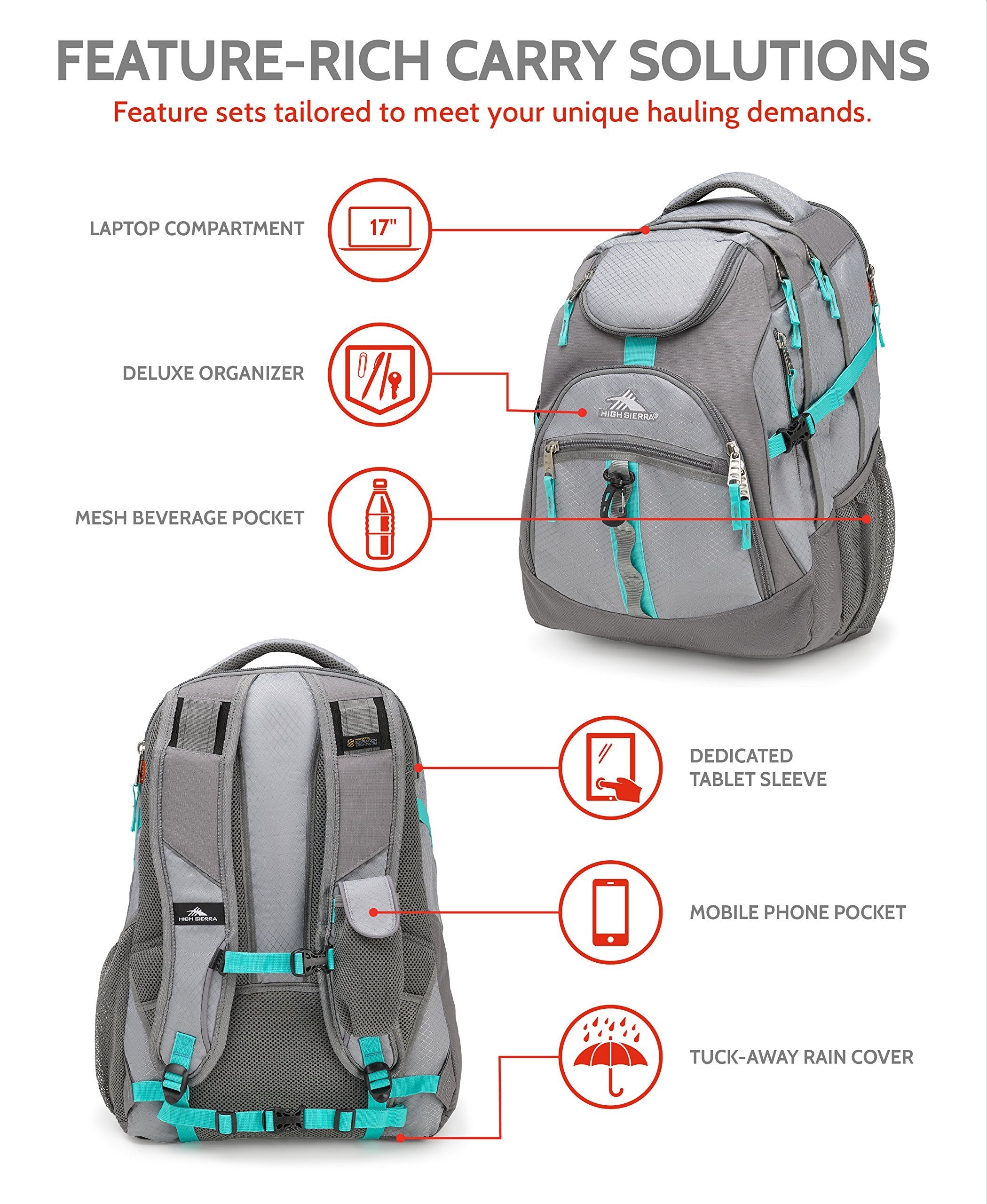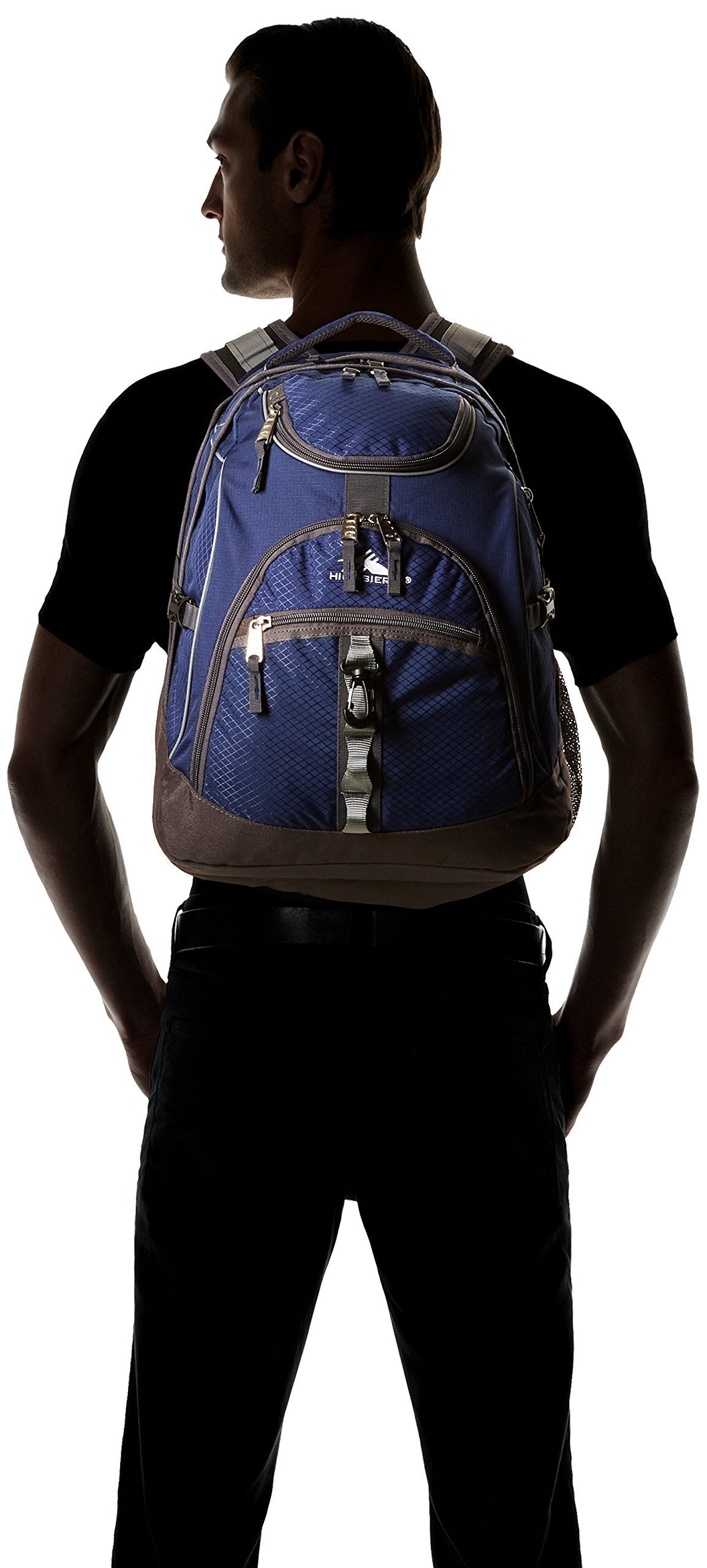 The High Sierra Access laptop backpack is the perfect blend of functionalityand durability. Its VAPEL mesh AIRFLOW padded straps and a sternum strap letyou travel comfortably. You can enjoy music on the go, as this travel laptopbackpack features a CD pocket with a headphone port. This water resistantlaptop backpack features multiple compartments and front pockets to help youstore your belongings neatly. It has an exterior daisy chain webbing to attachaccessories for a personalized look. During hiking, you can also keep thebackpack stable with the tuck-away waist belt on the back panel.