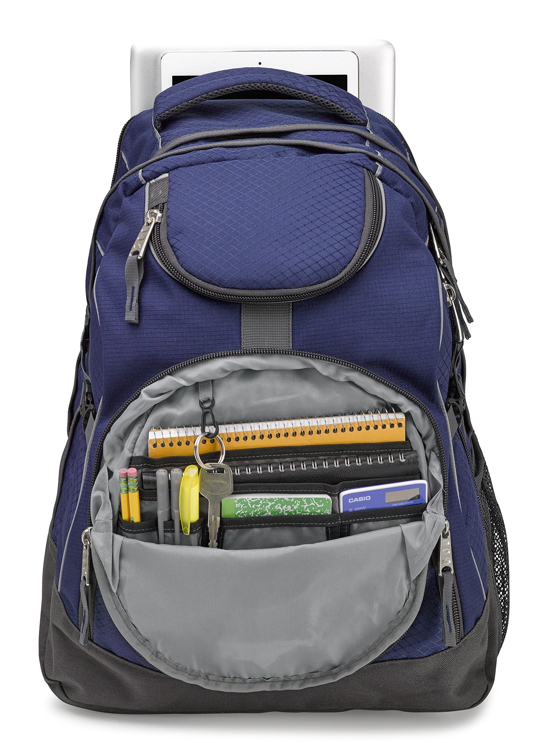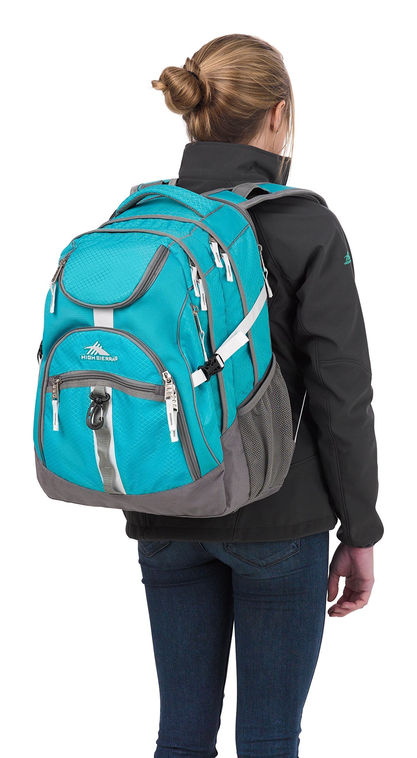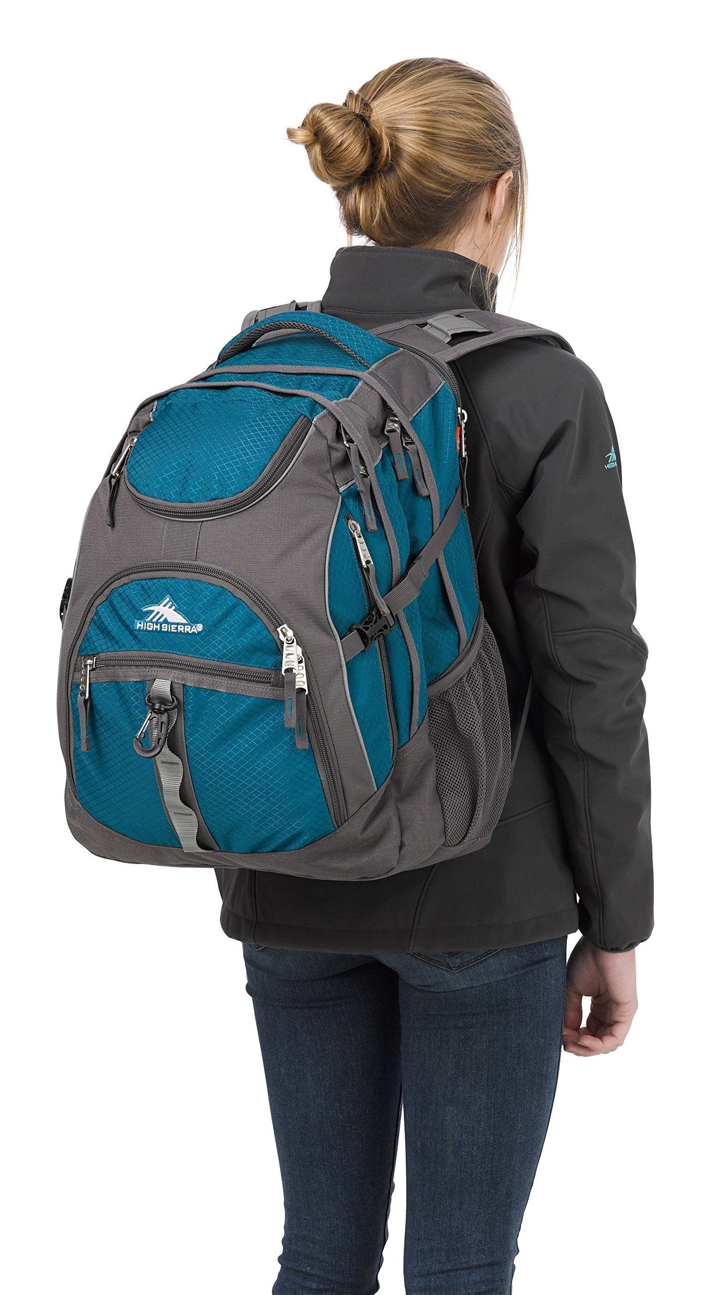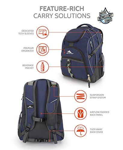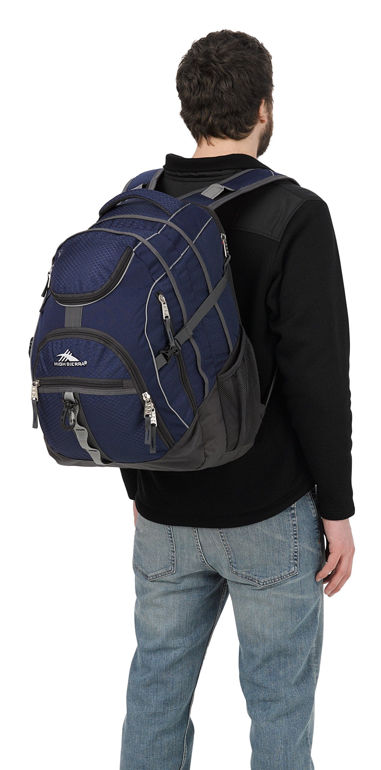 The High Sierra Access laptop backpack is the perfect blend of functionalityand durability. Its VAPEL mesh AIRFLOW padded straps and a sternum strap letyou travel comfortably. You can enjoy music on the go, as this travel laptopbackpack features a CD pocket with a headphone port. This water resistantlaptop backpack features multiple compartments and front pockets to help youstore your belongings neatly. It has an exterior daisy chain webbing to attachaccessories for a personalized look. During hiking, you can also keep thebackpack stable with the tuck-away waist belt on the back panel.