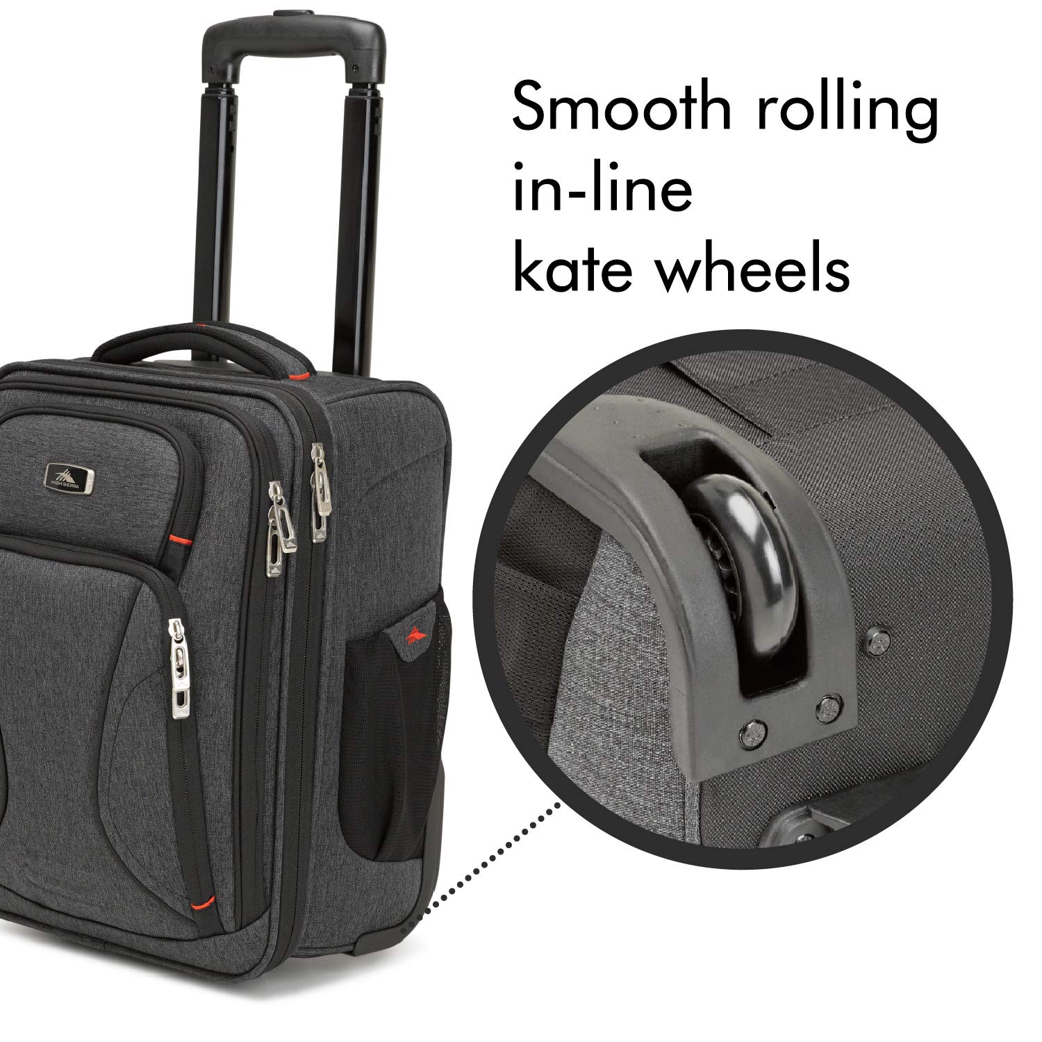 Read more We are the brand that supports you through yourmoments of firsts: first day of school, first camp-out, first trip abroad.This is lifes real journey; the transitions from one life phase to the next,and were right there with you. This is our brand mission. This is how werally our tribe. HIGH SIERRA “ Curious by Nature ENDEAVOR WHEELED UNDERSEATCARRY-ON Body Dimensions: 17.25" x 12.0" x 7.75" Weight: 6.1 lbs. Designed tofit under an airplane seat Fully-padded computer compartment that fits most15" laptops Dedicated tablet sleeve Molded front pockets add protection forvaluables Expandable zippered side shoe pocket, doubles as interior dividerpanel Internal zippered mesh pocket Premium organizer with multiple pocketsand key fob Smooth rolling in-line skate wheels and extendable, push buttonlocking handle Read more FITS UNDER AIRPLANE SEATS This underseat carry onluggage with wheels is designed to fit under an airplane seat or in mostairlines overhead compartments DEDICATED LAPTOP COMPARTMENT This underseatwheeled bag has a built-in fully padded compartment designed to carry yourlaptop computer and help protect it from shock EXTENDABLE, PUSH BUTTON LOCKINGHANDLE SMOOTH ROLLING IN-LINE SKATE WHEELS Read more Read more